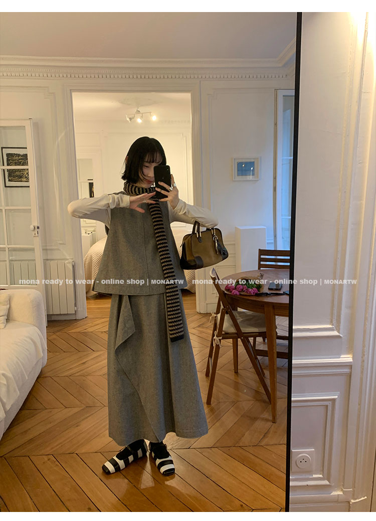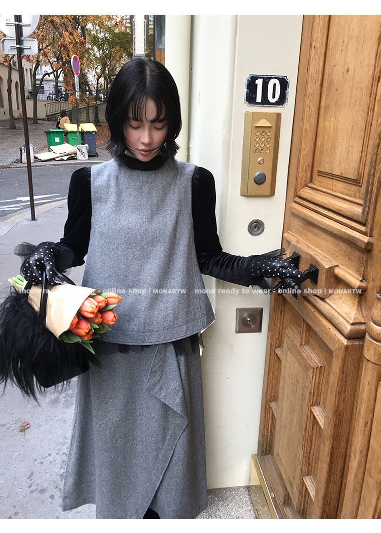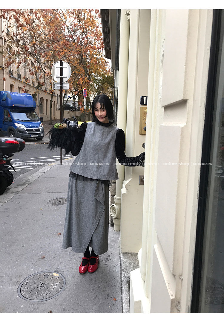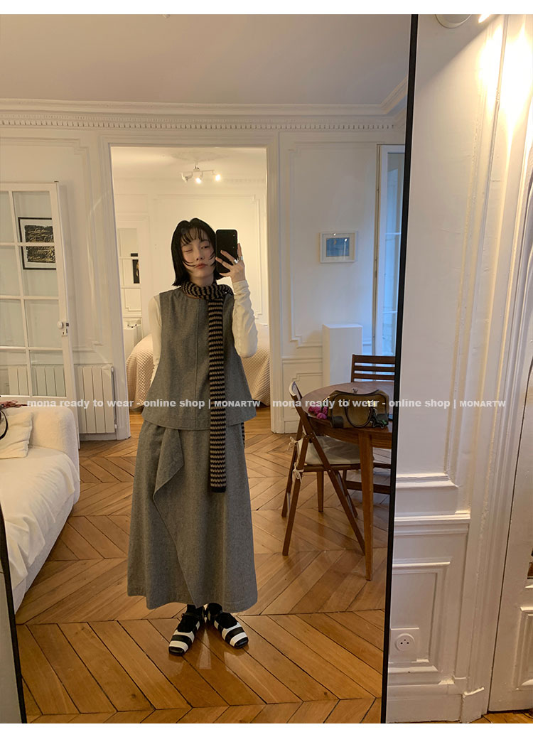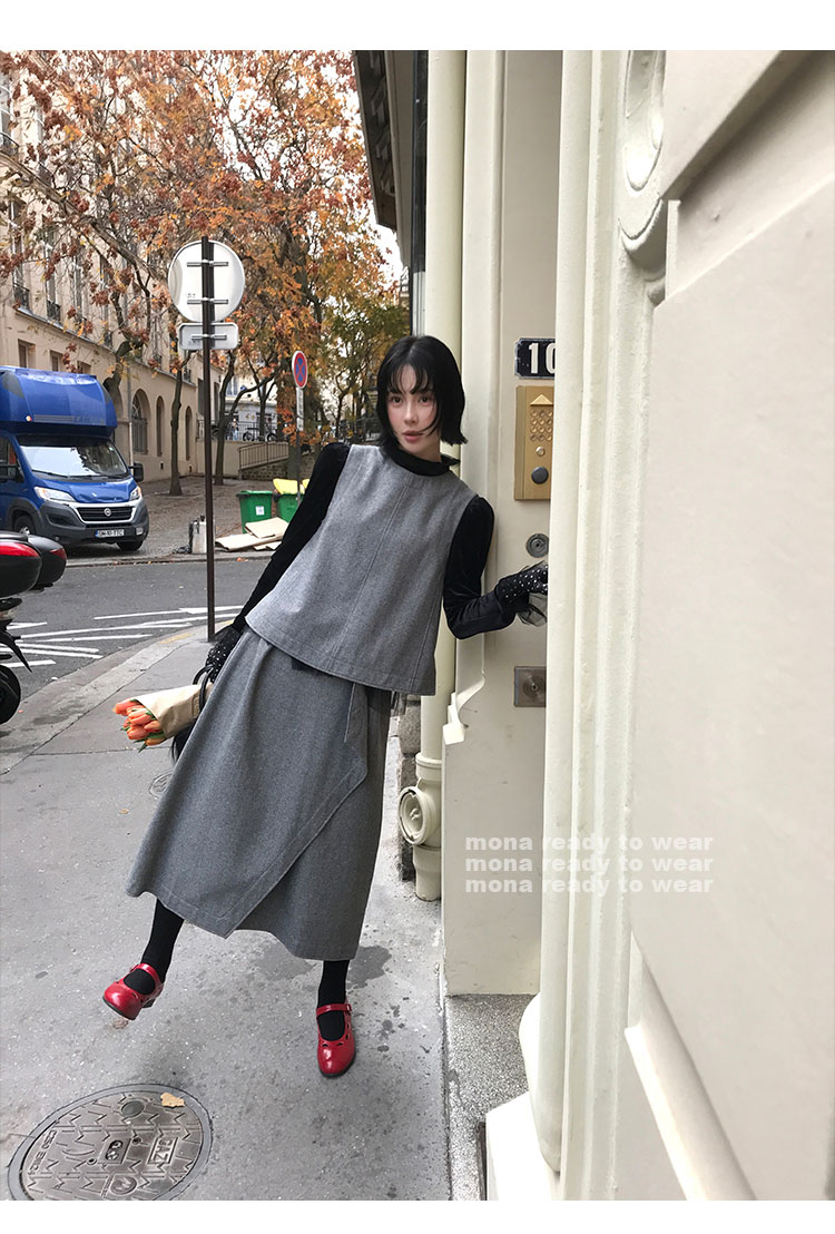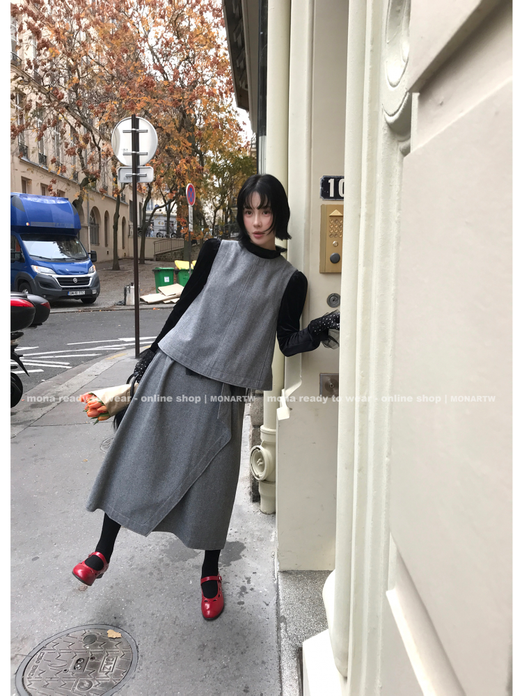 MONARTW Wool Tank Top High-Waisted Half Skirt