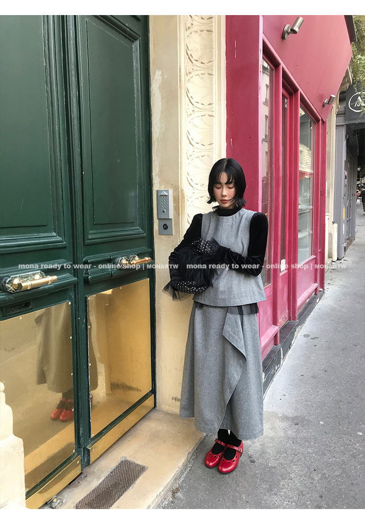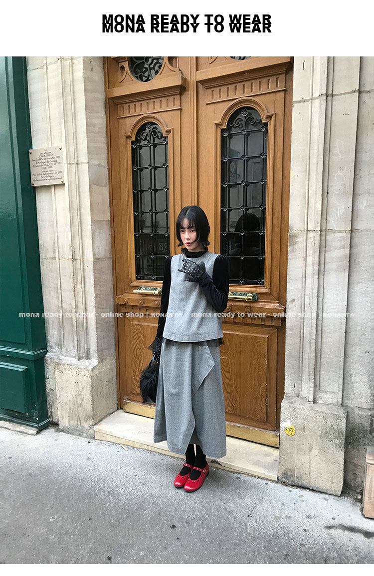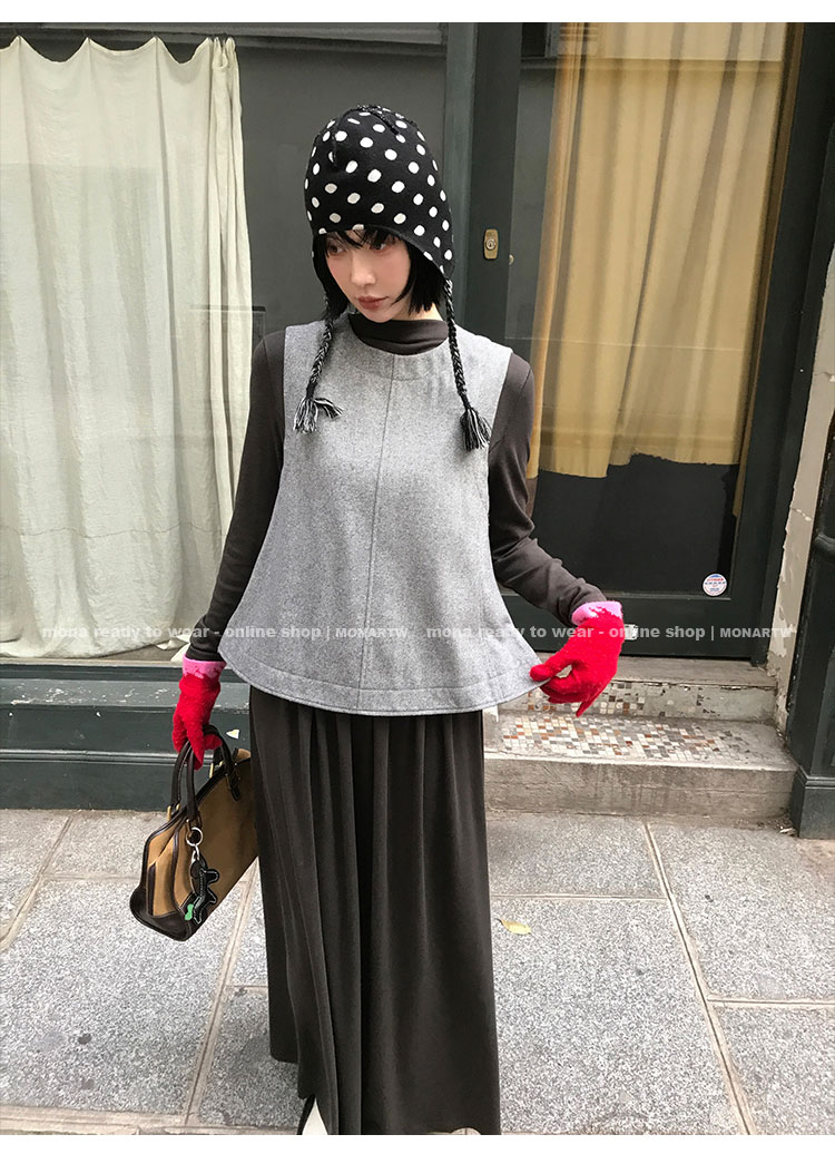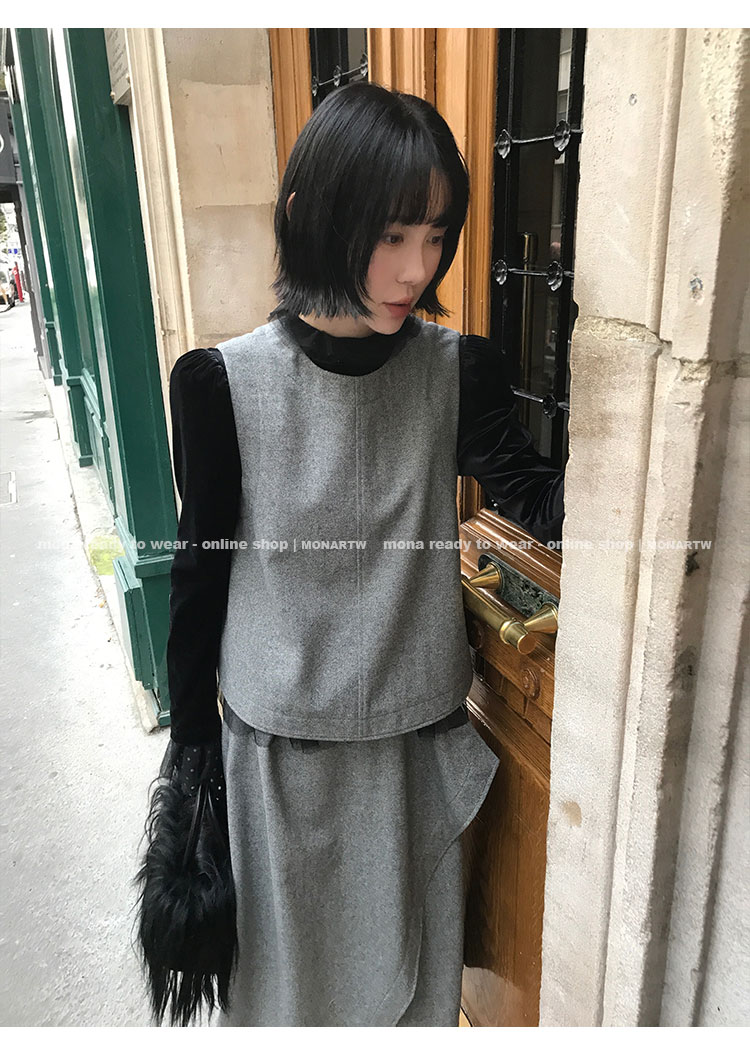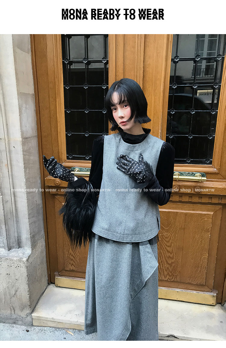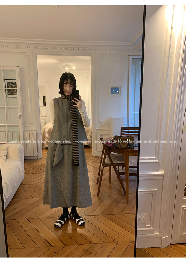 MONARTW Wool Tank Top High-Waisted Half Skirt