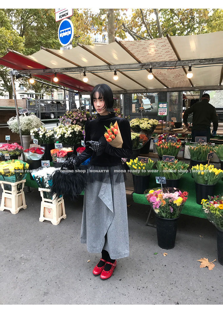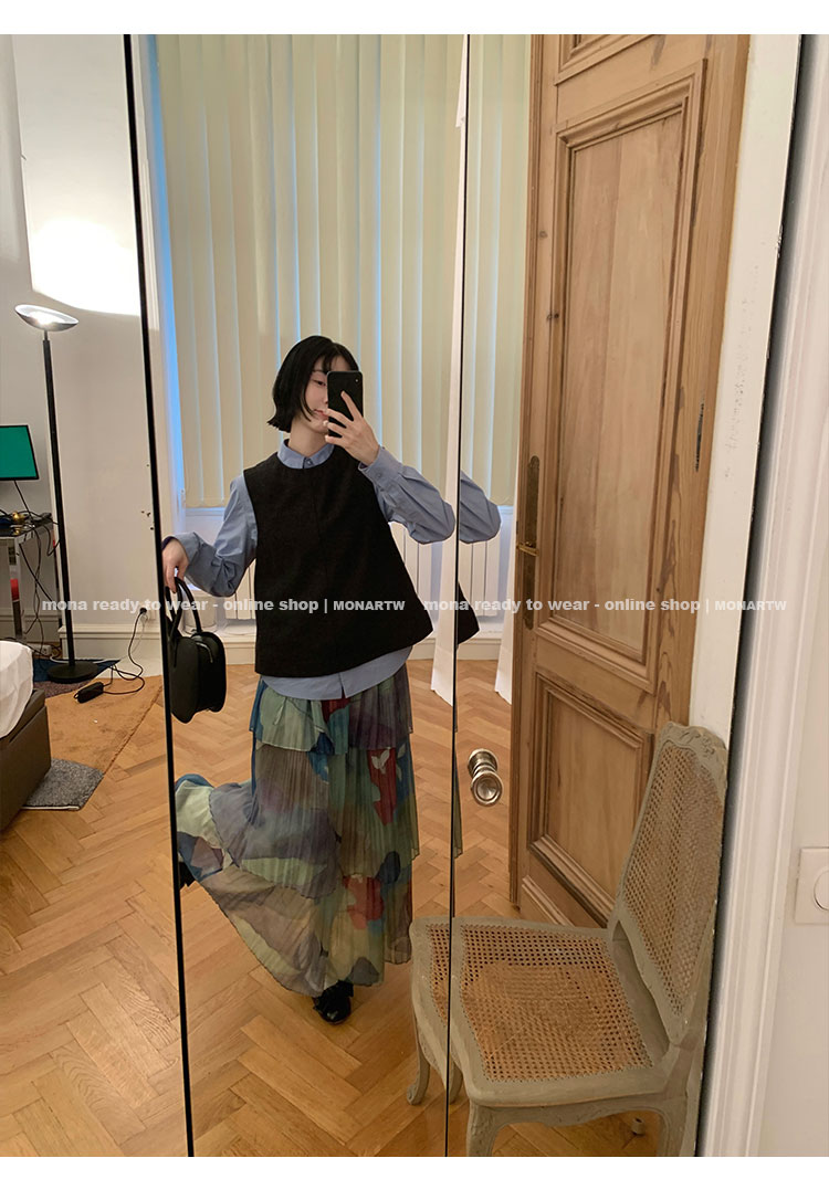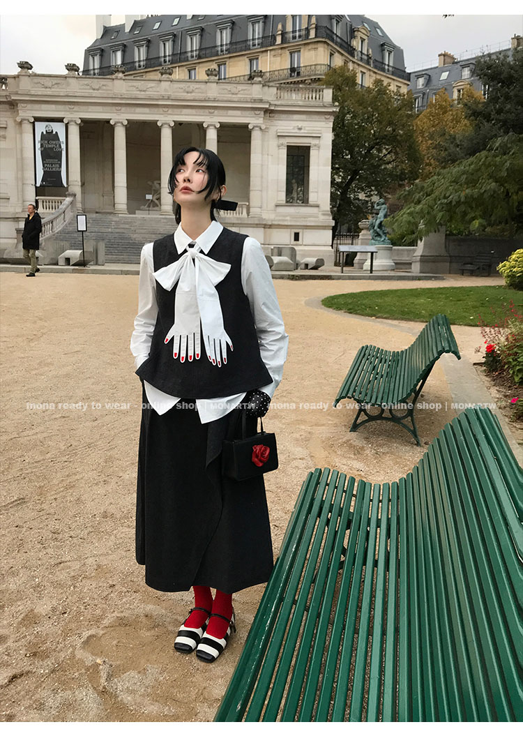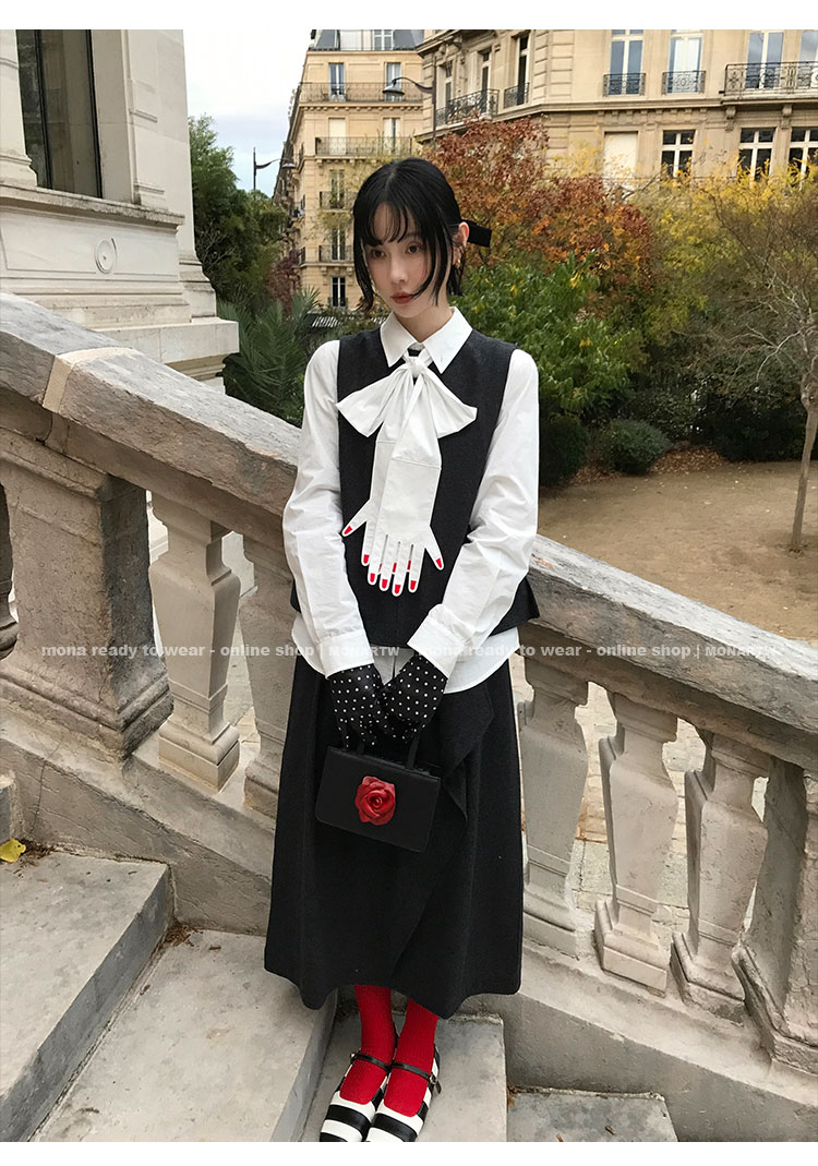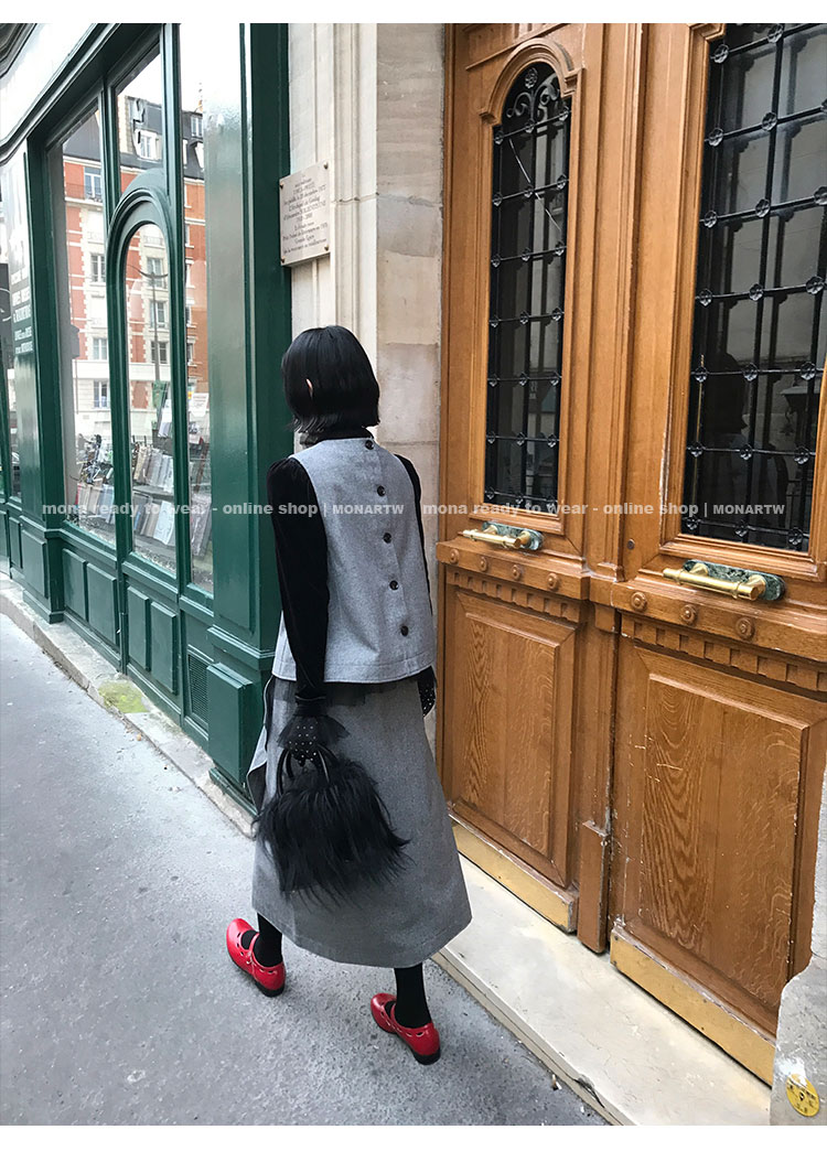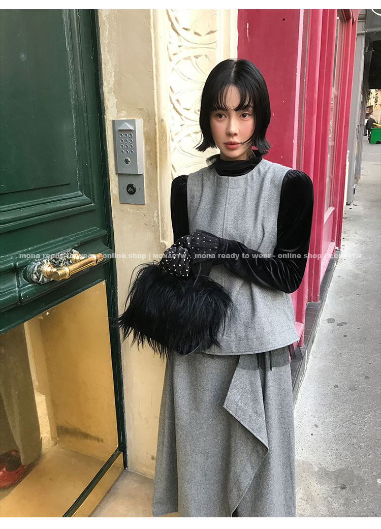 MONARTW Wool Tank Top High-Waisted Half Skirt