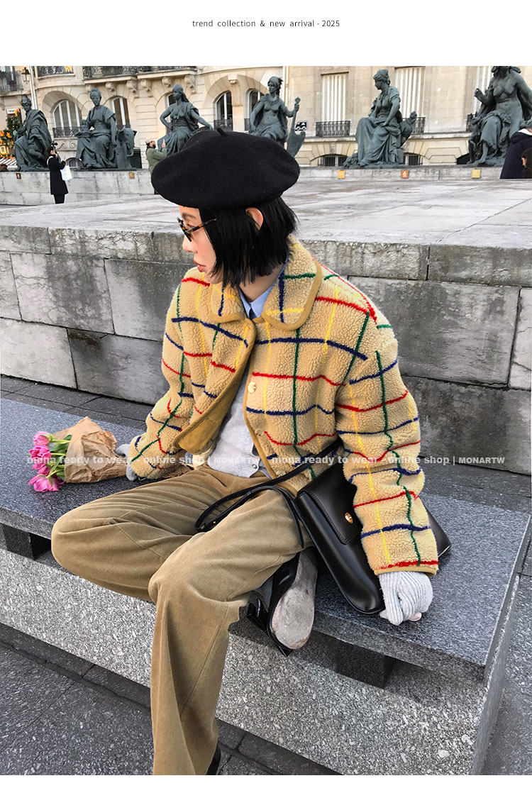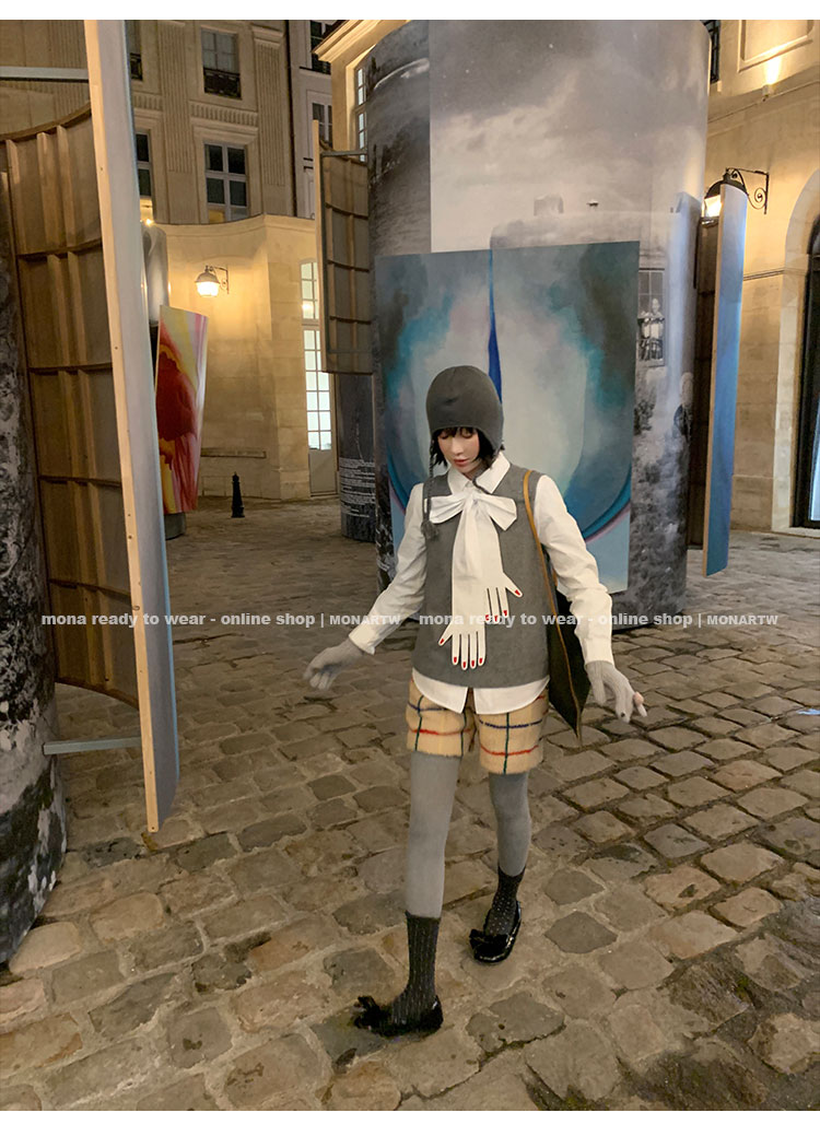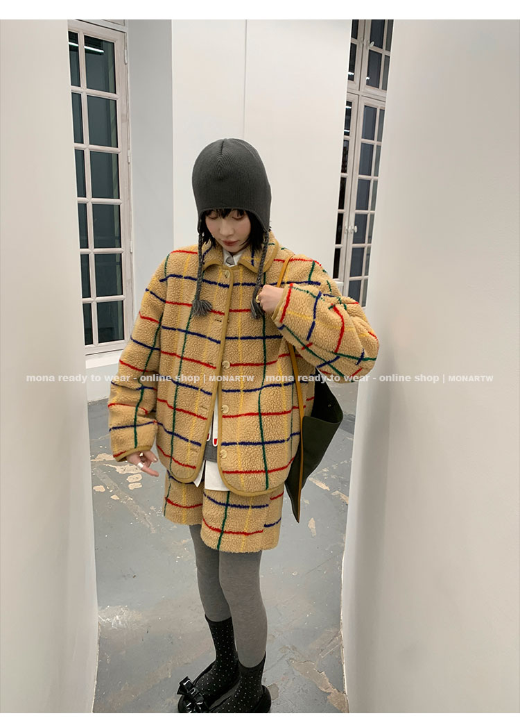 MONARTW Plaid Relaxed Jacket Mid-Waisted Shorts
