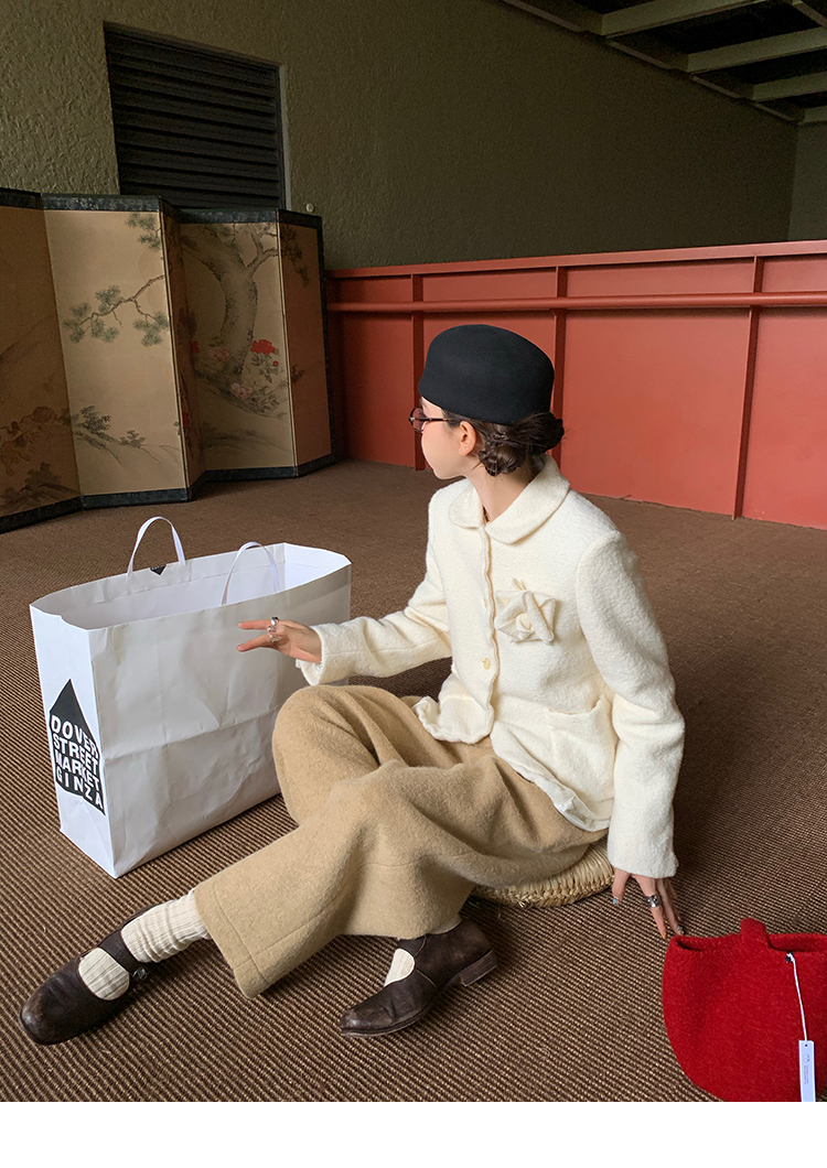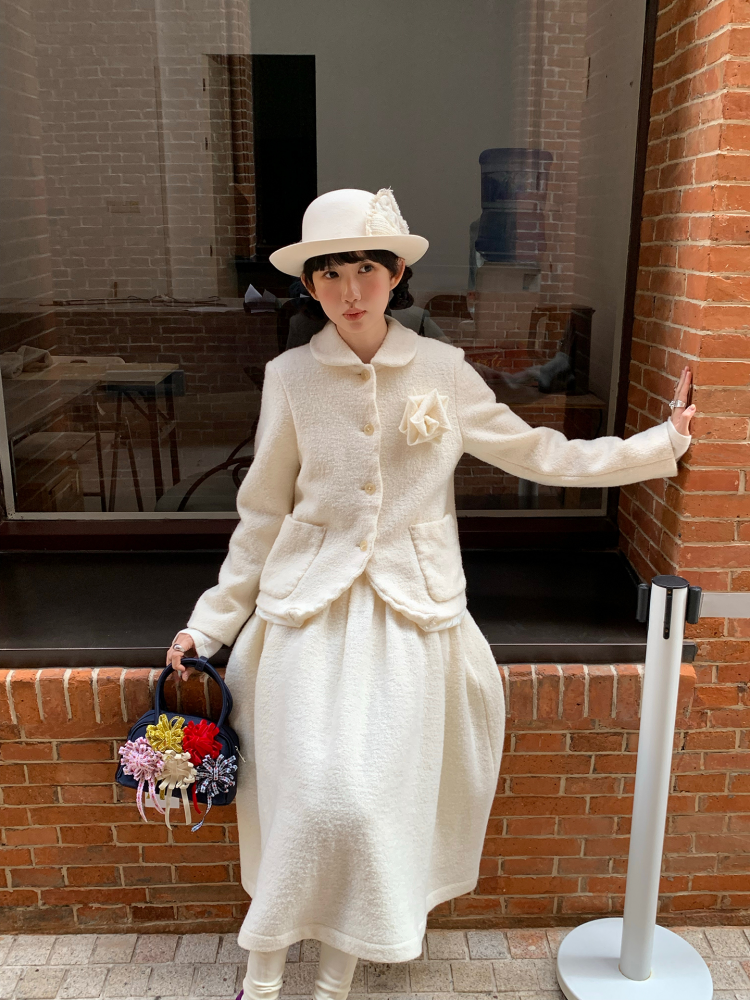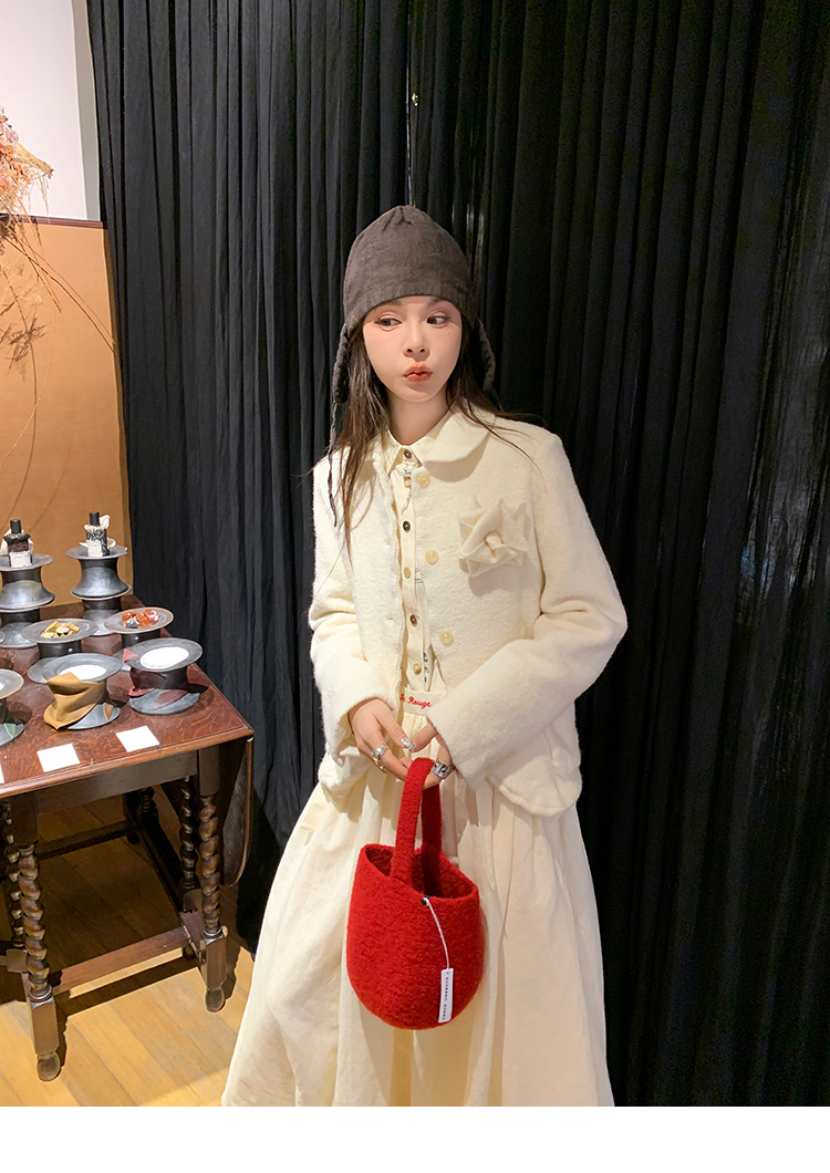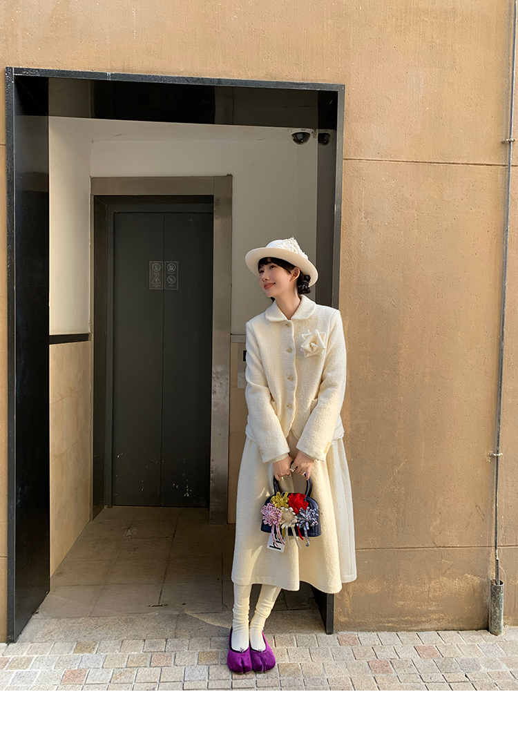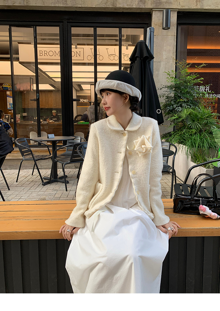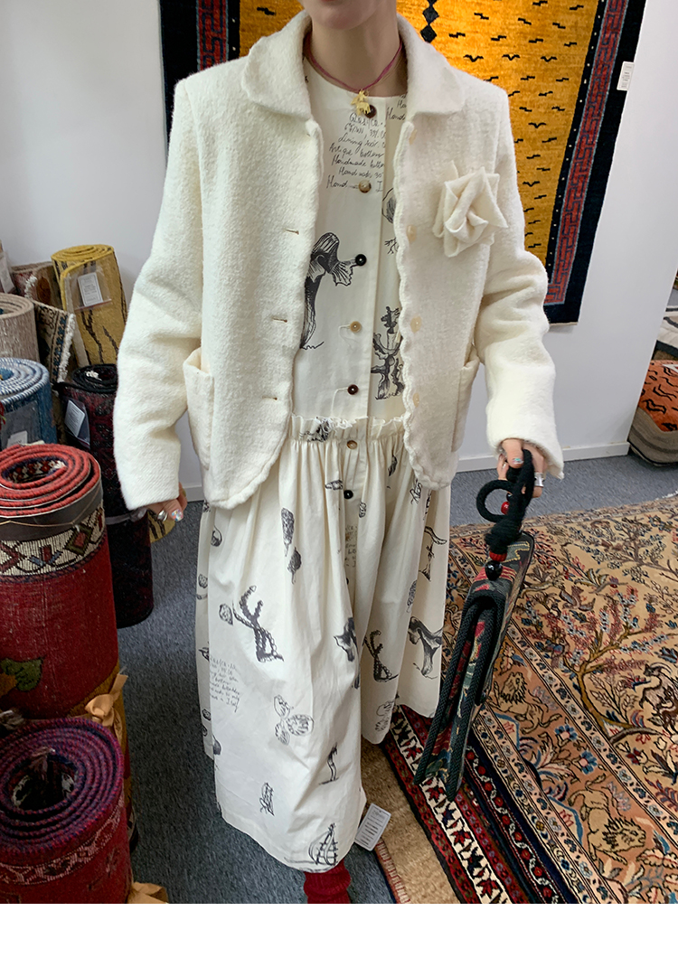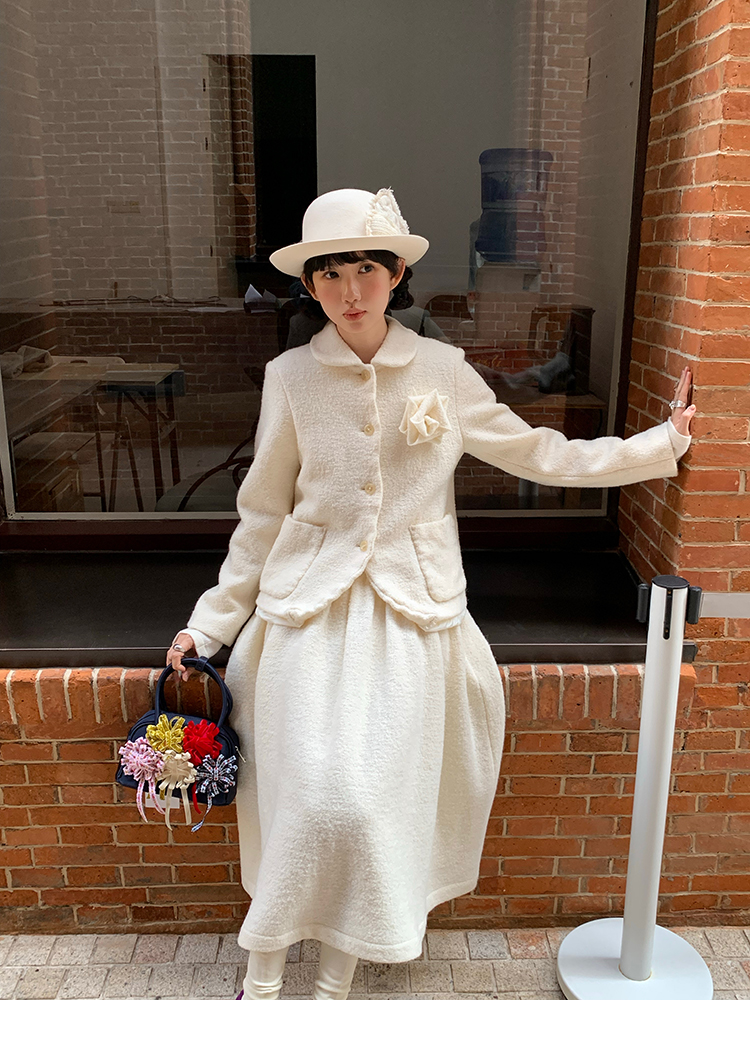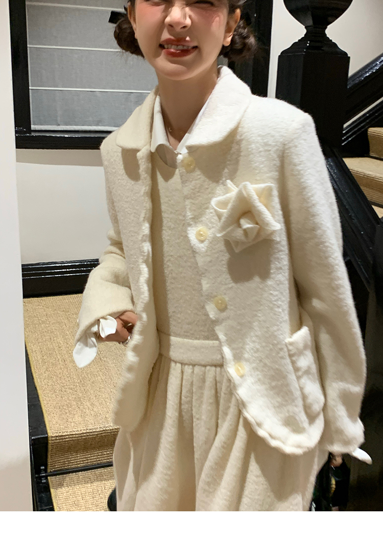LRIB Creamy White Full Wool Handcrafted Flower Half-Sleeve Jacket