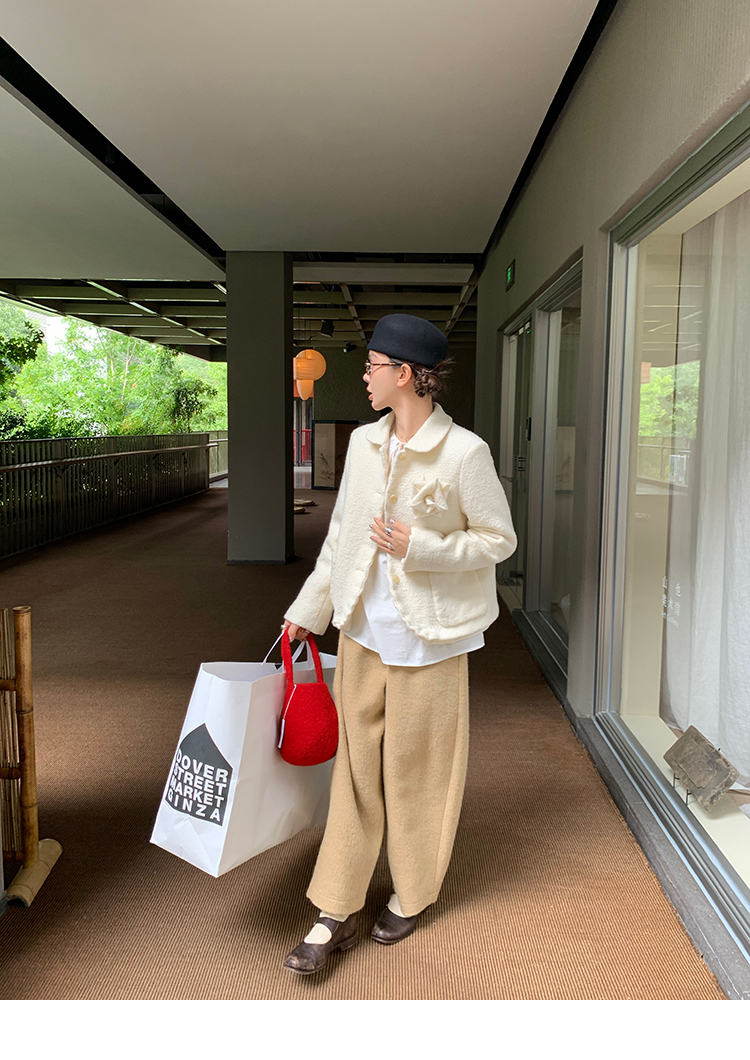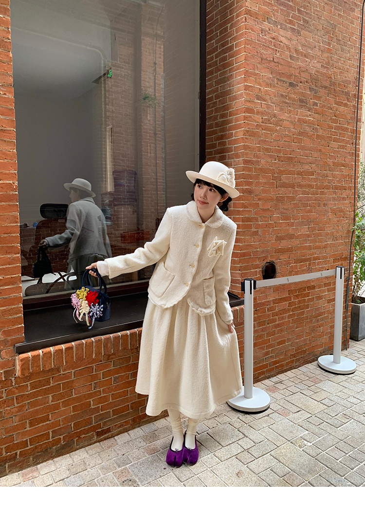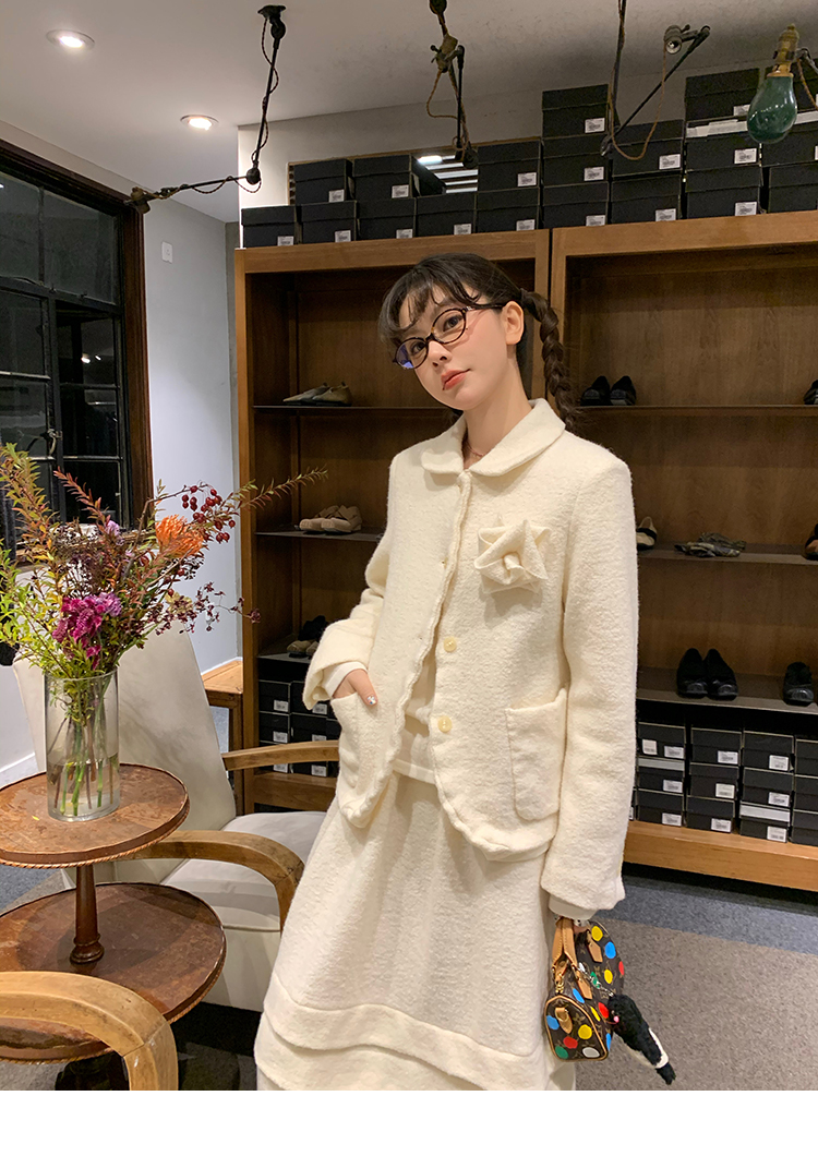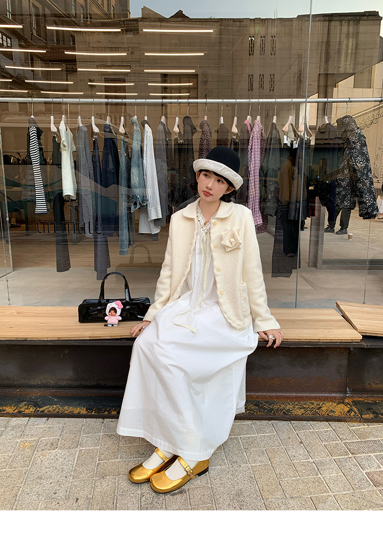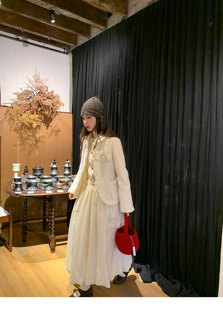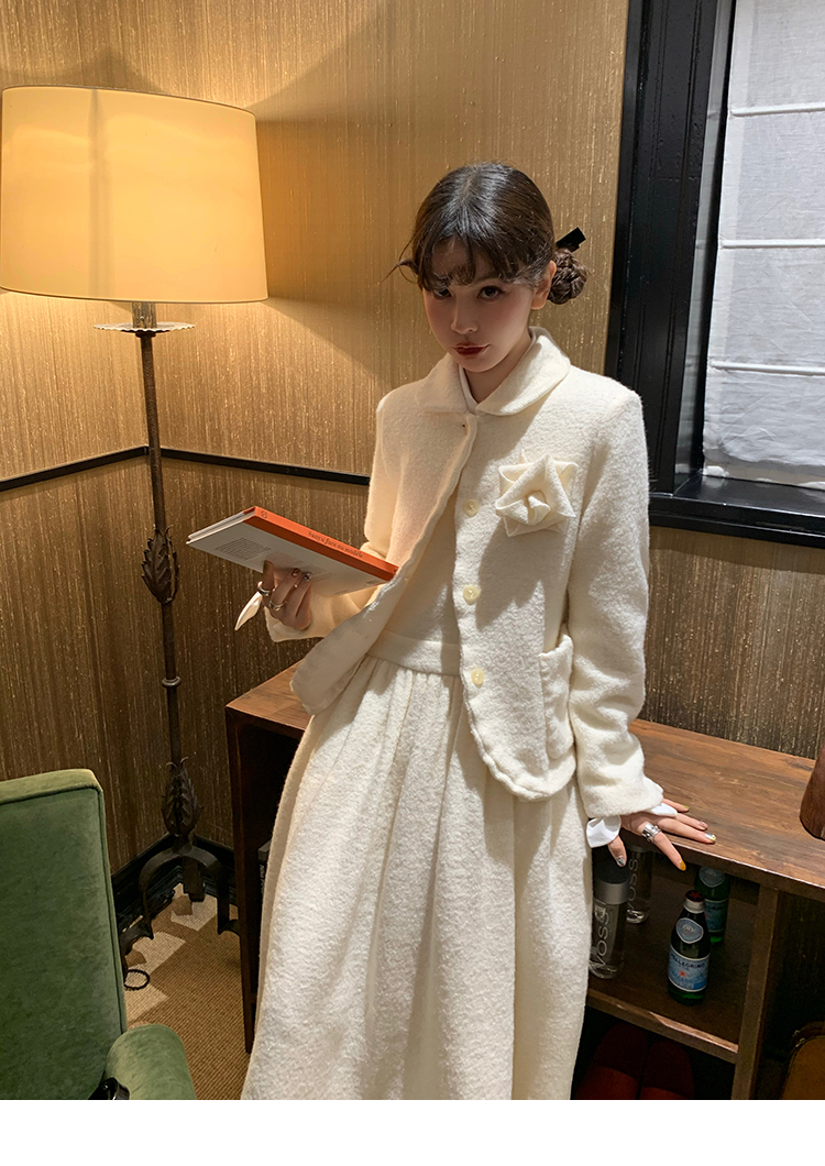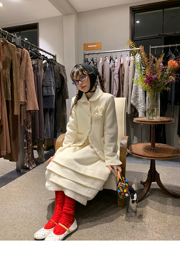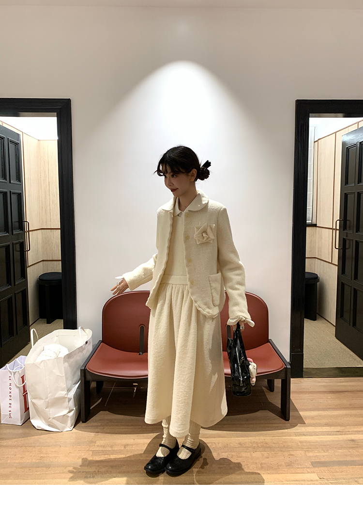 LRIB Creamy White Full Wool Handcrafted Flower Half-Sleeve Jacket