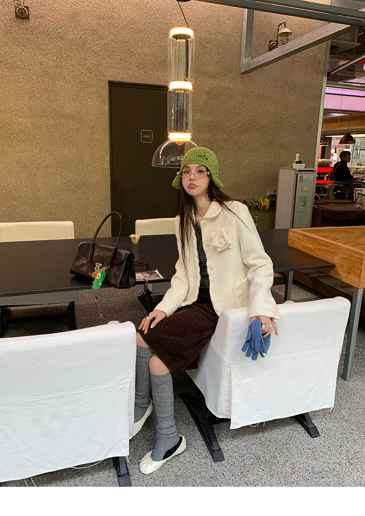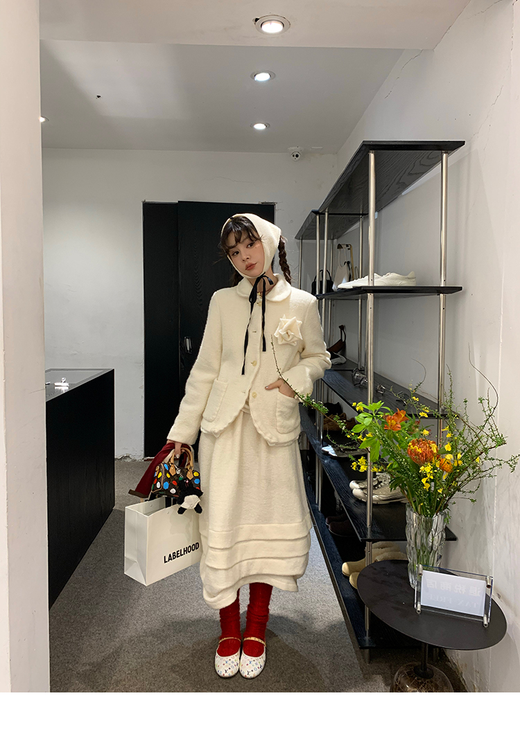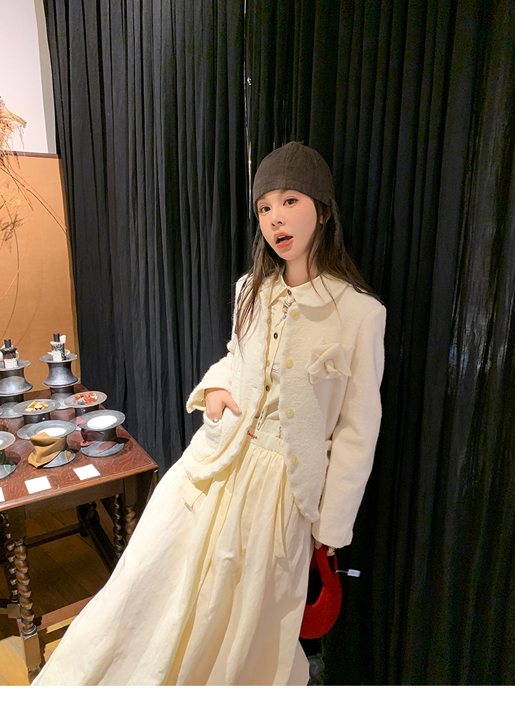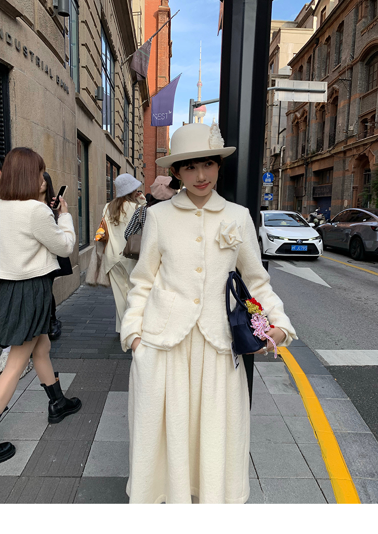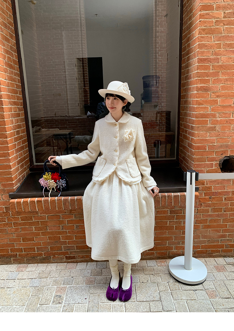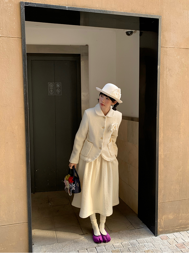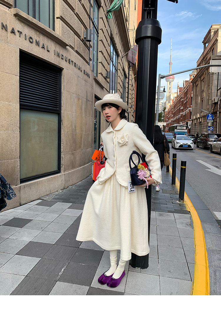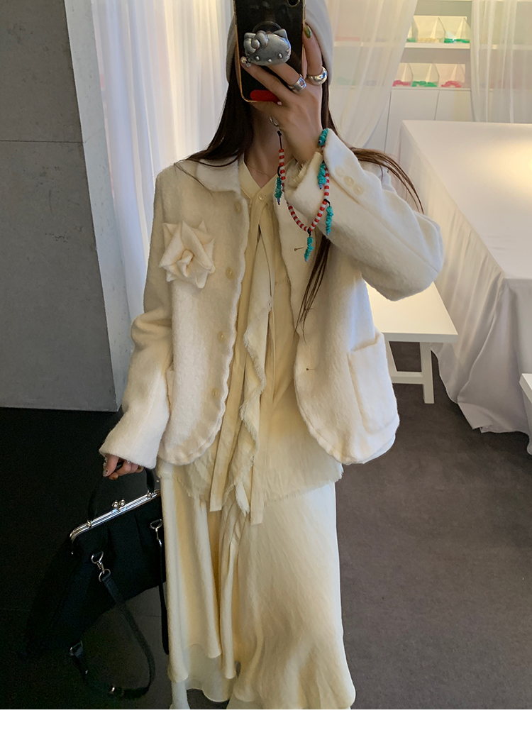 LRIB Creamy White Full Wool Handcrafted Flower Half-Sleeve Jacket