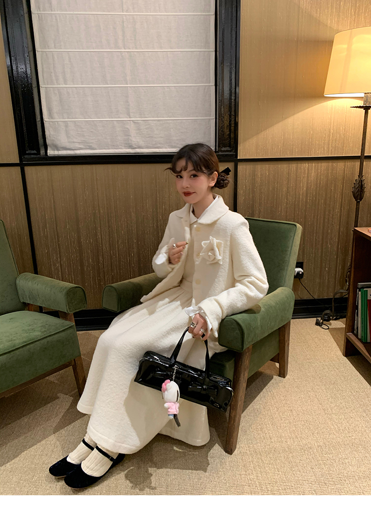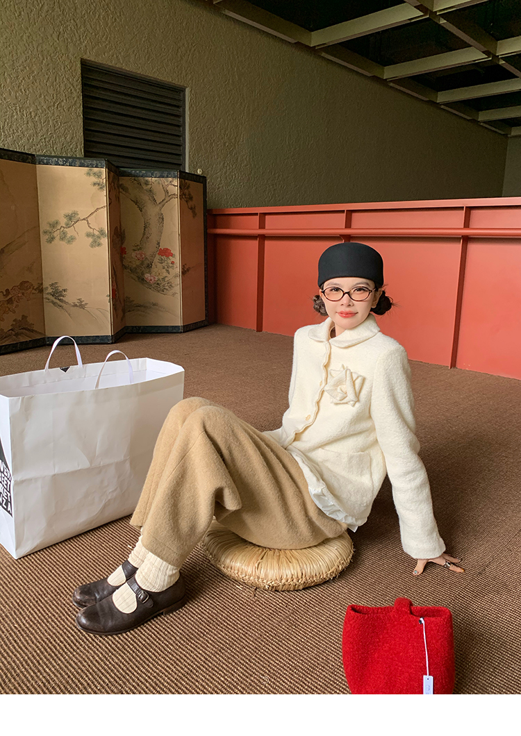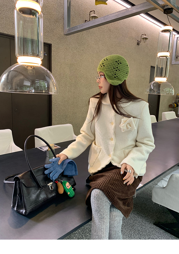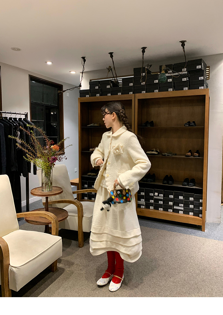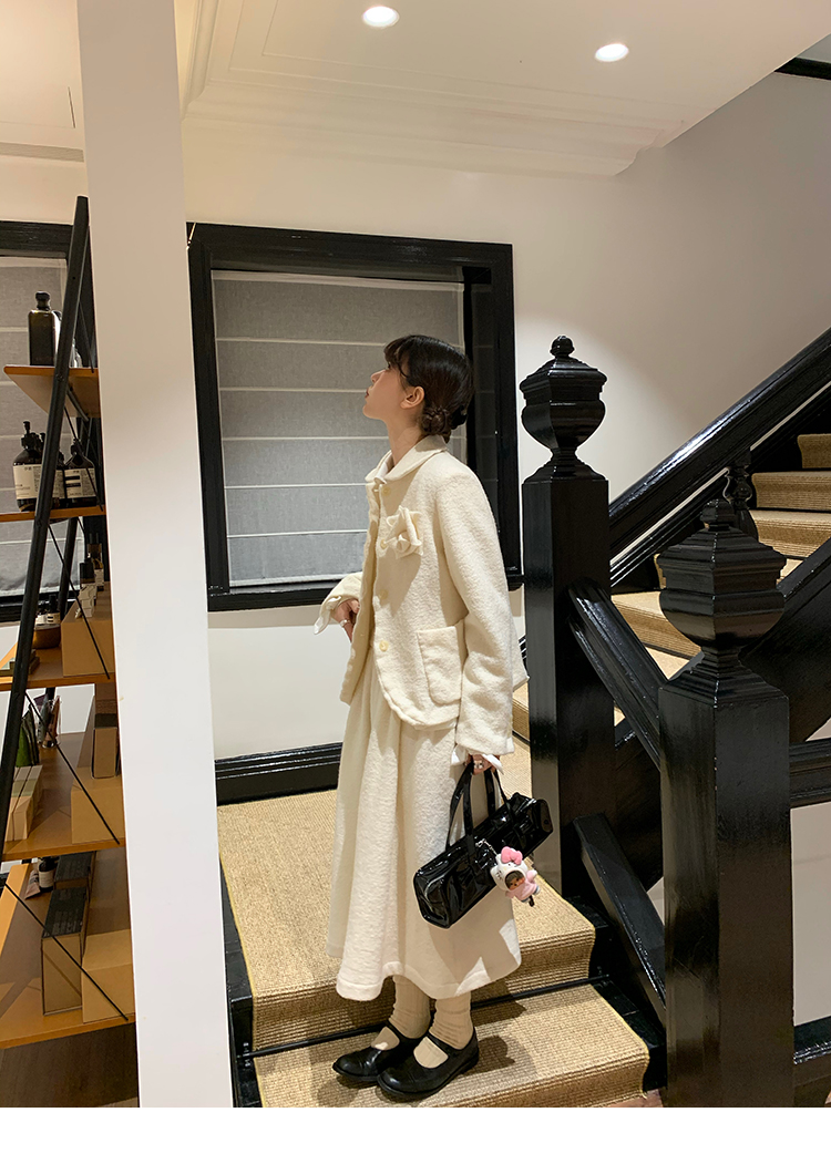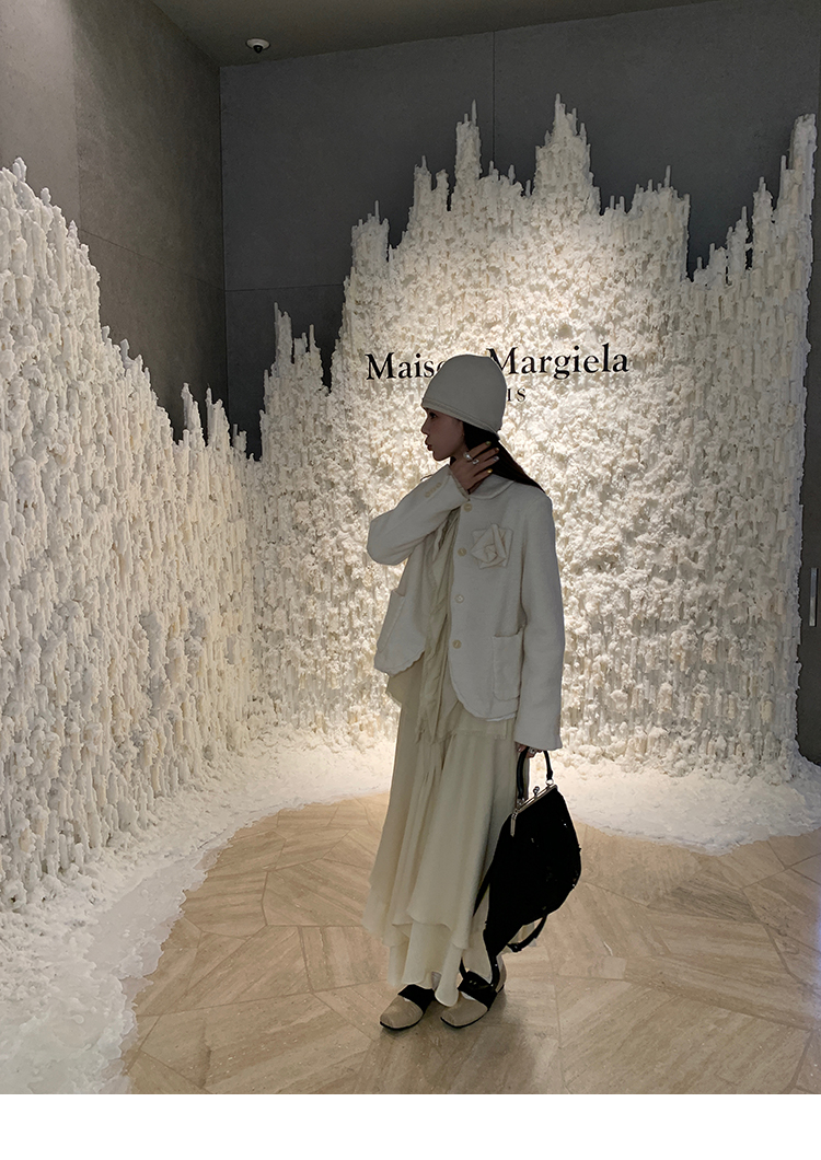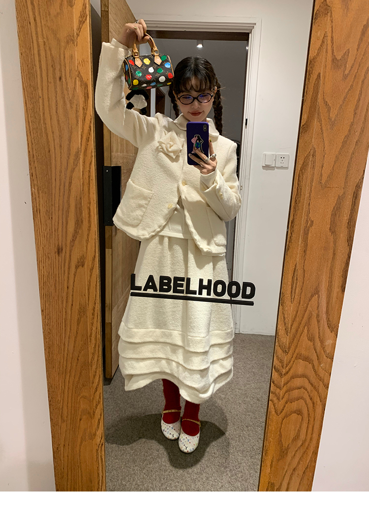 LRIB Creamy White Full Wool Handcrafted Flower Half-Sleeve Jacket