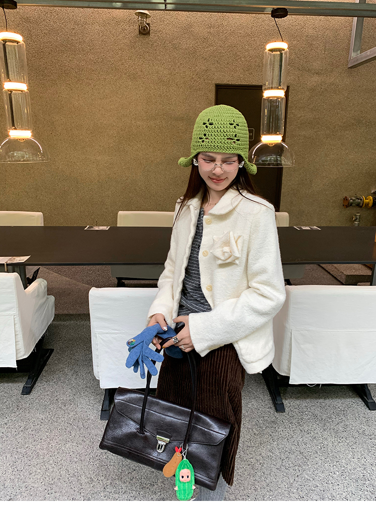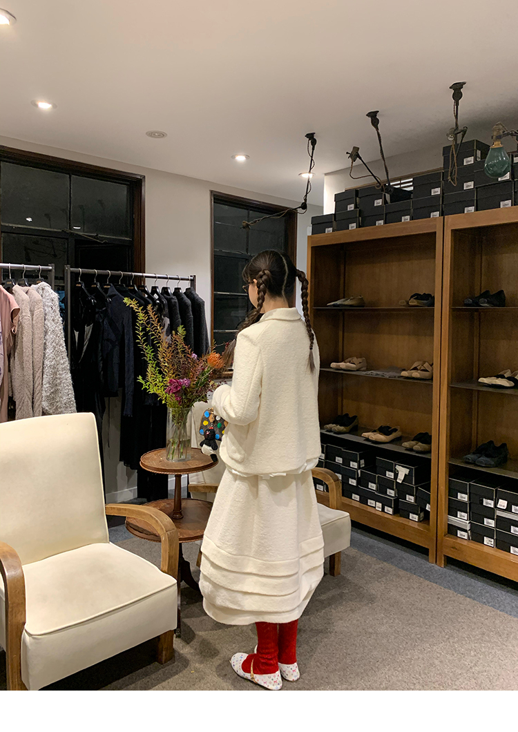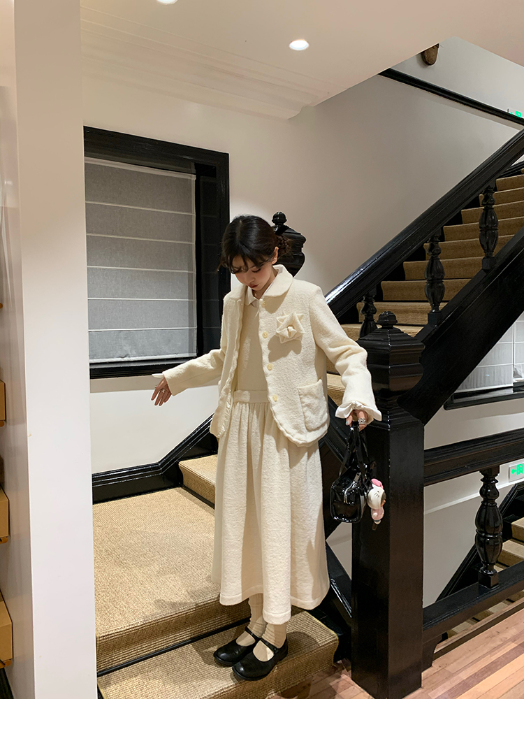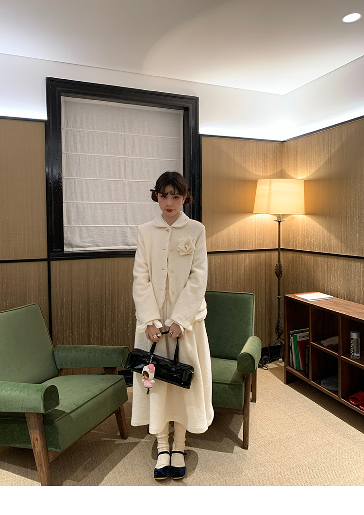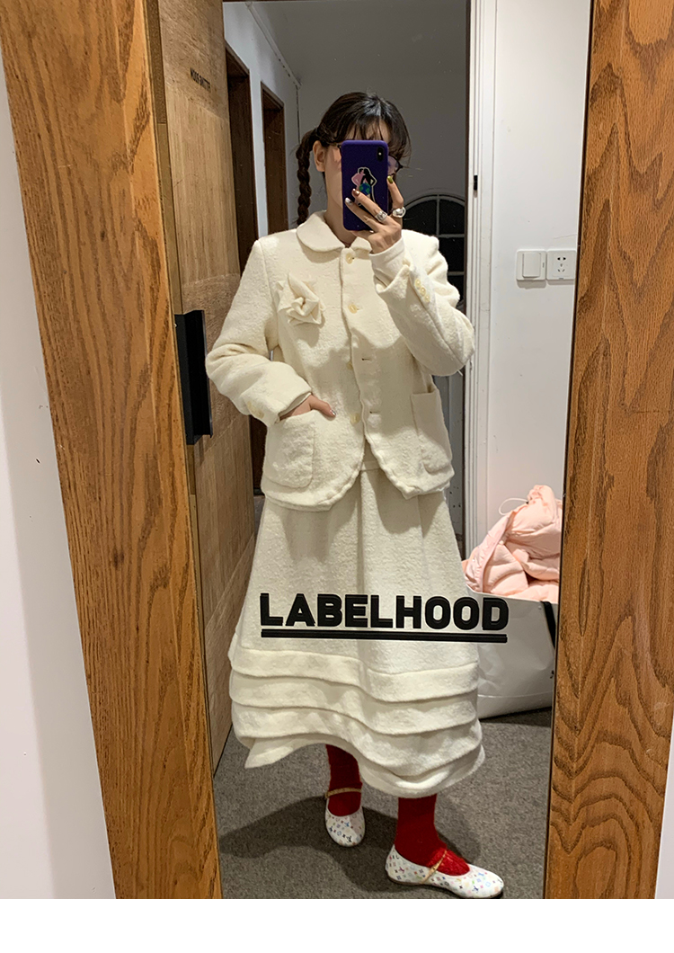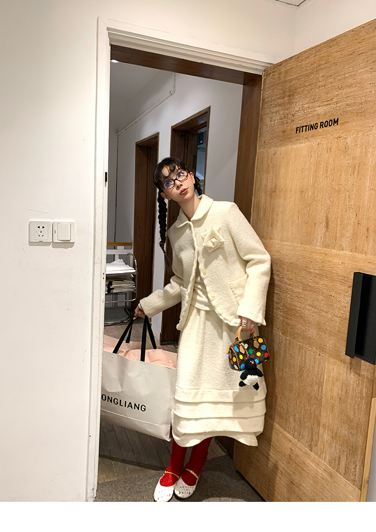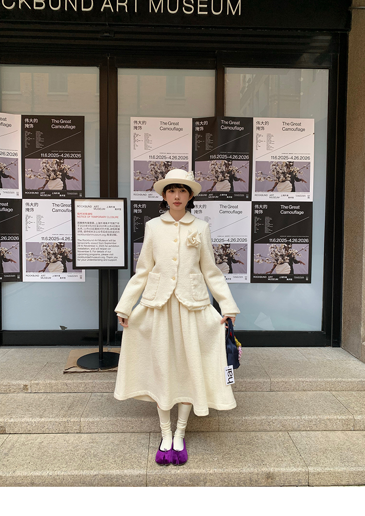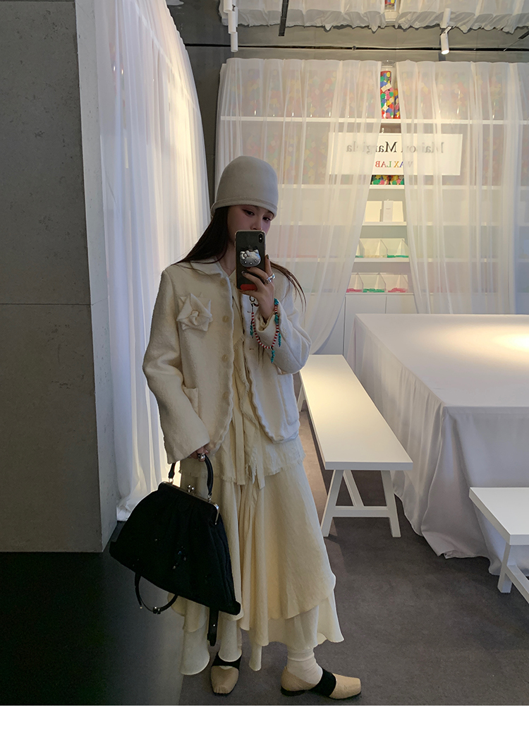 LRIB Creamy White Full Wool Handcrafted Flower Half-Sleeve Jacket