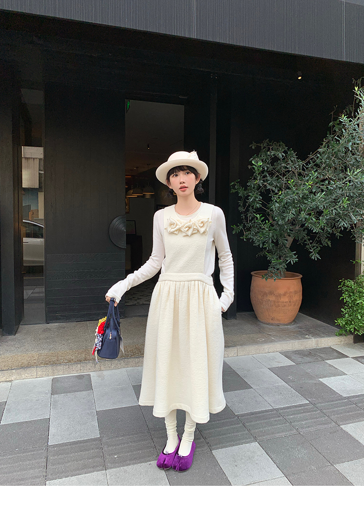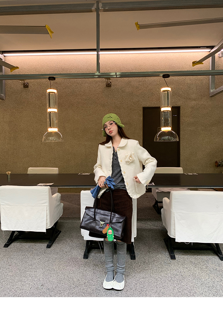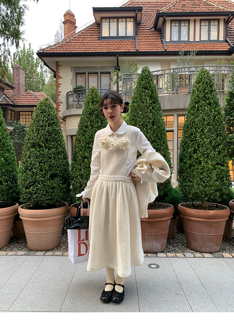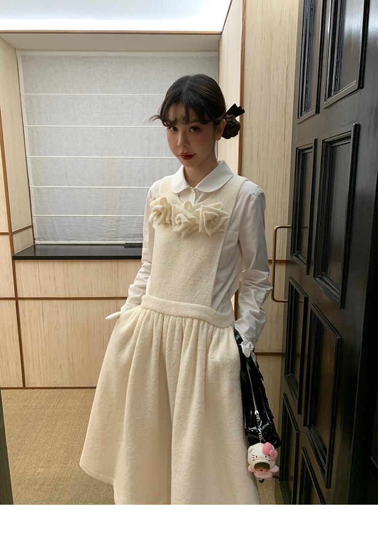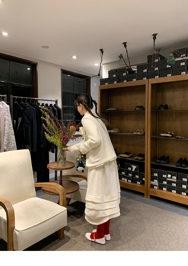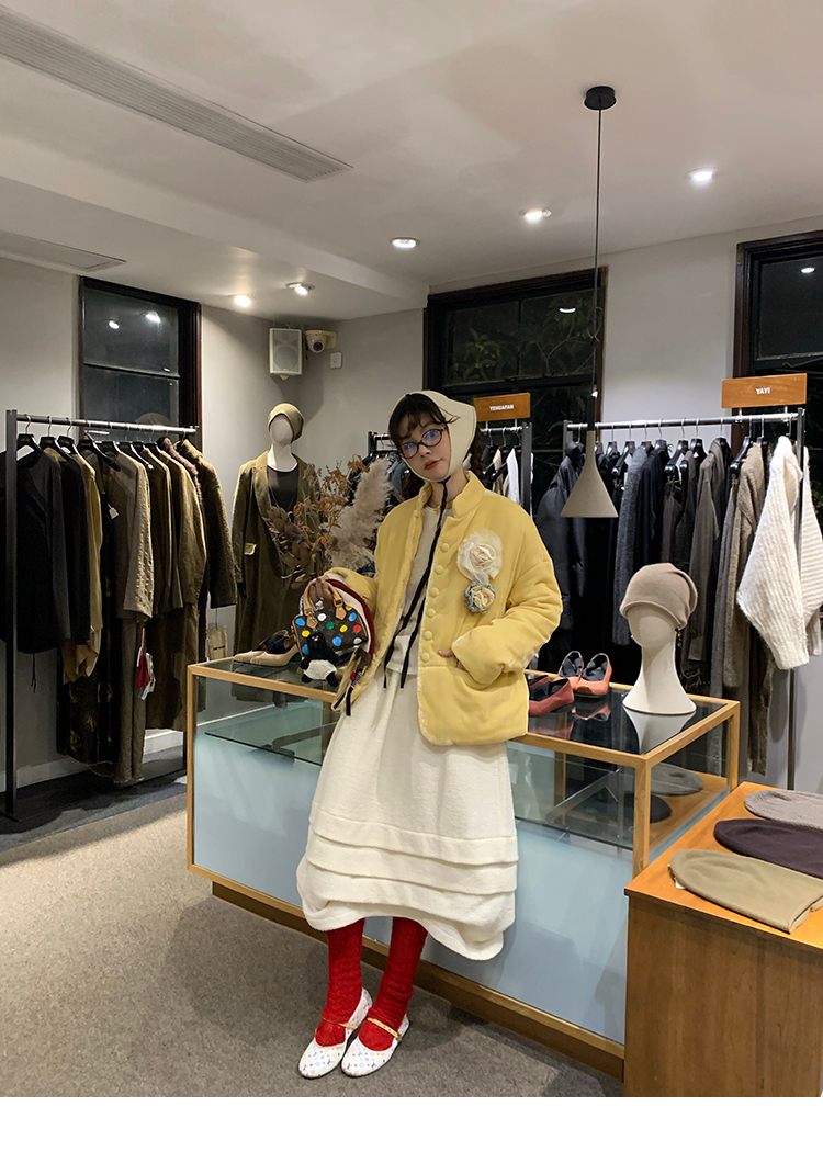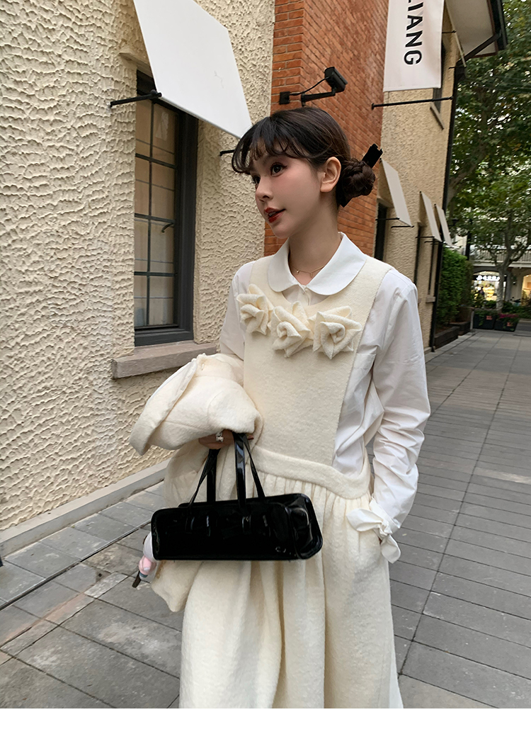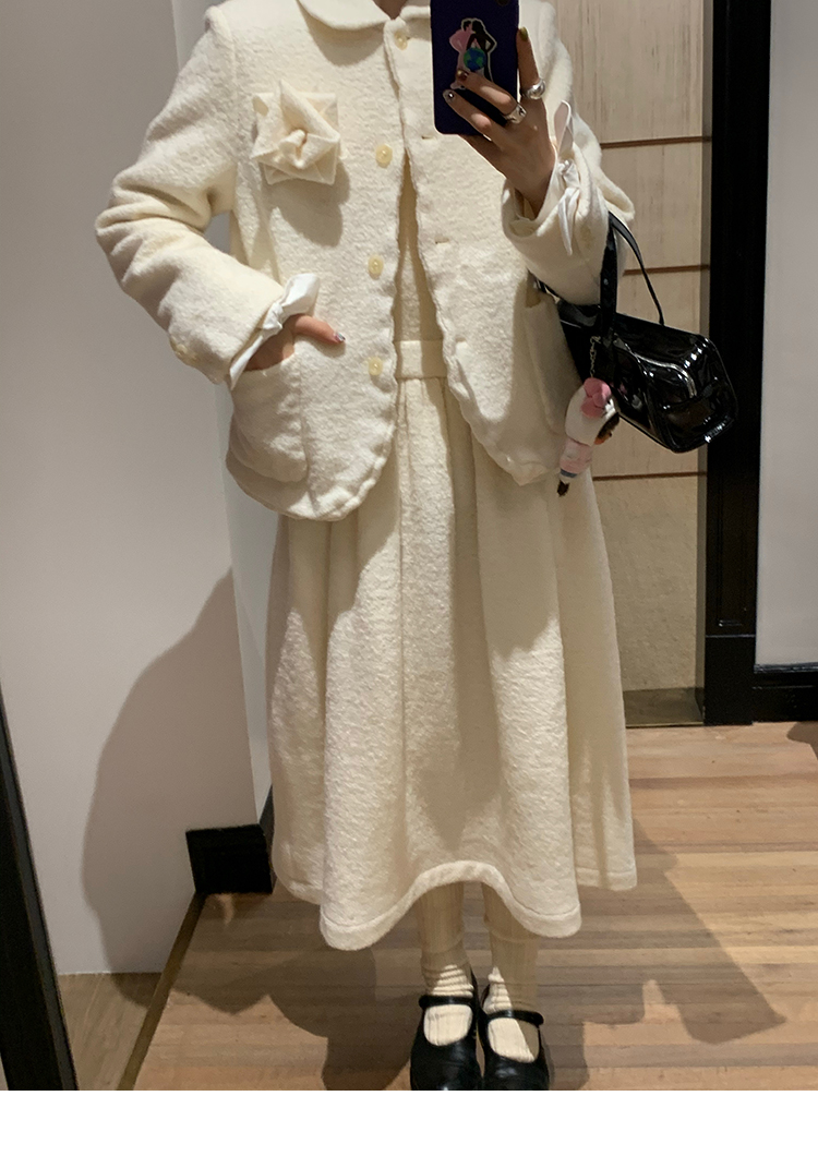 LRIB Creamy White Full Wool Handcrafted Flower Half-Sleeve Jacket