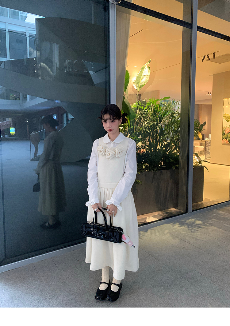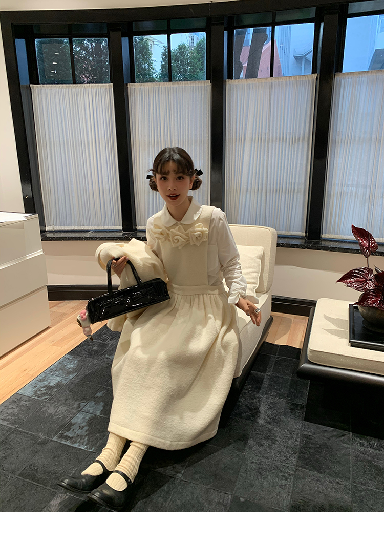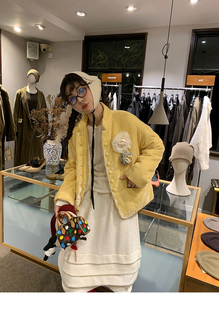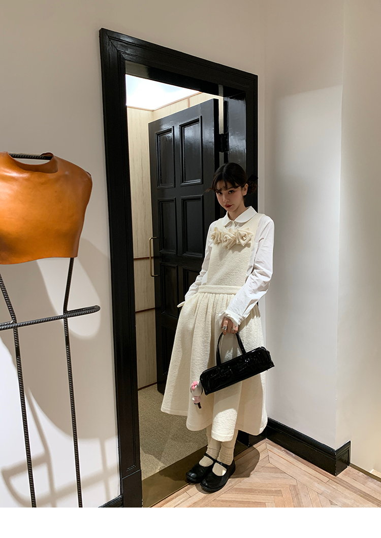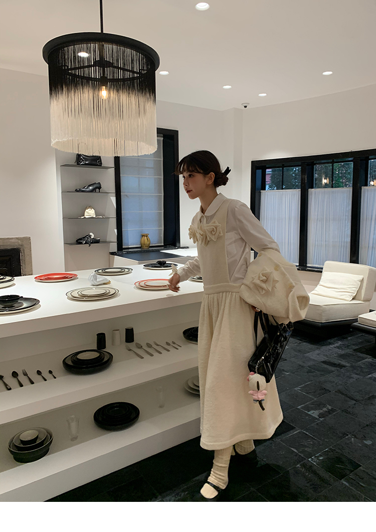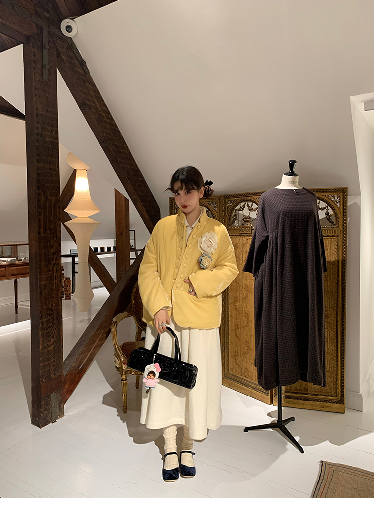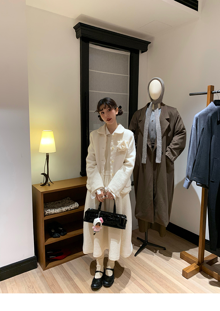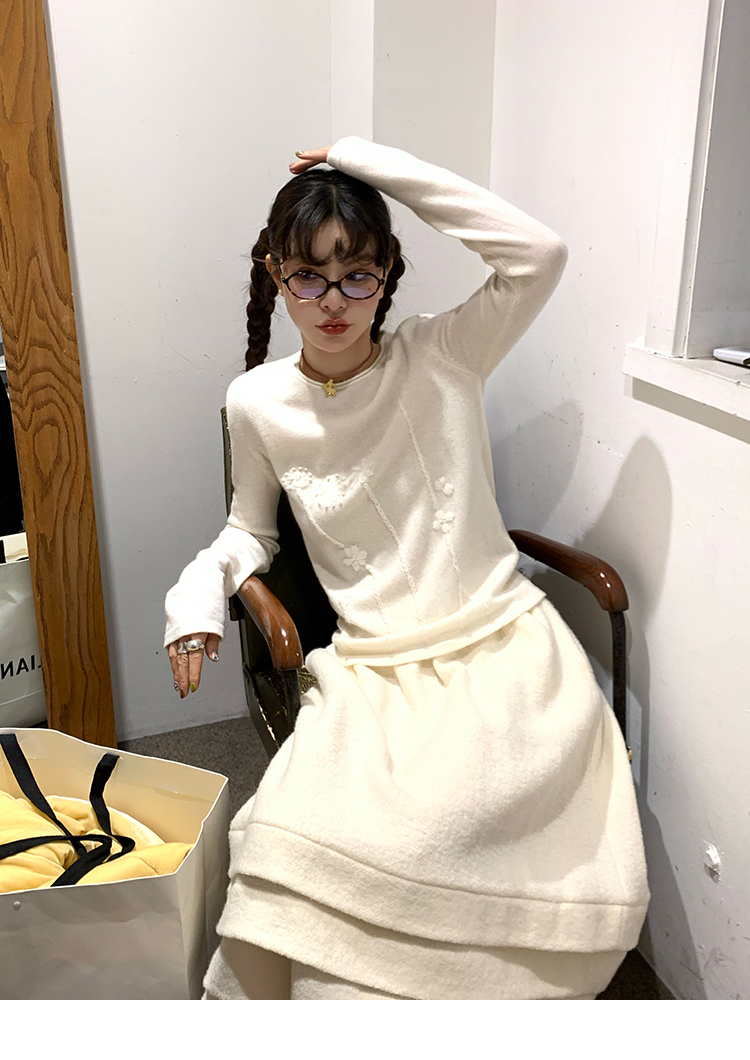 LRIB Creamy White Full Wool Handcrafted Flower Half-Sleeve Jacket