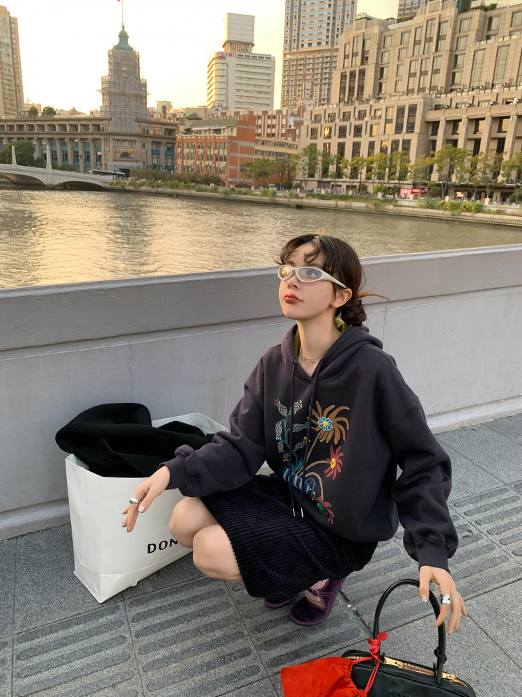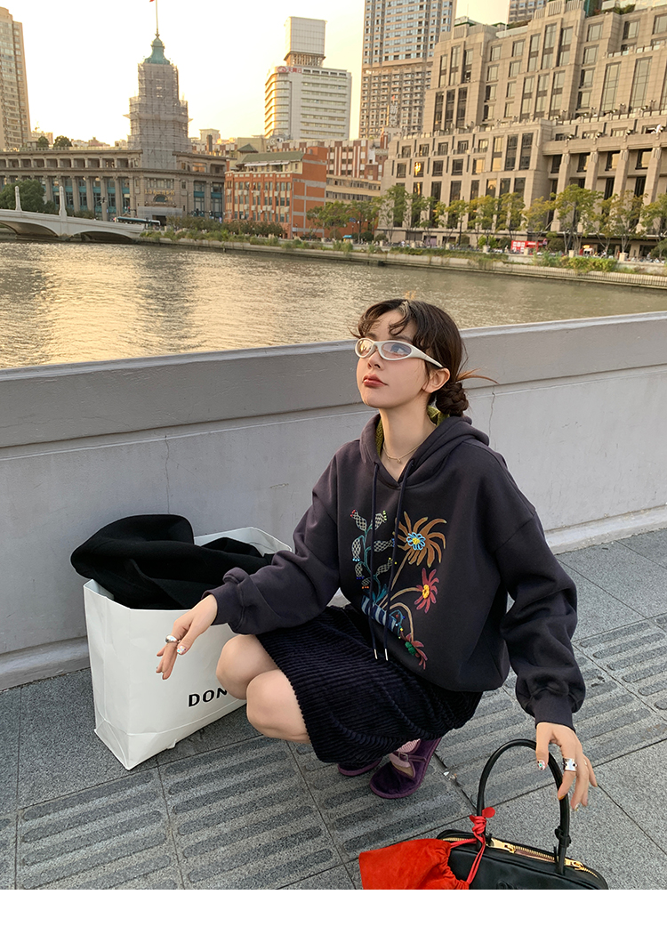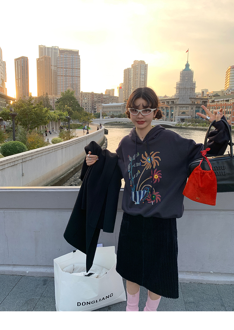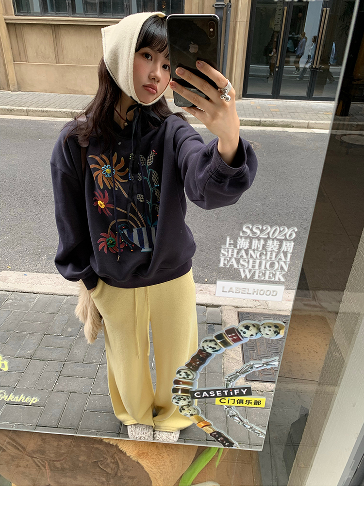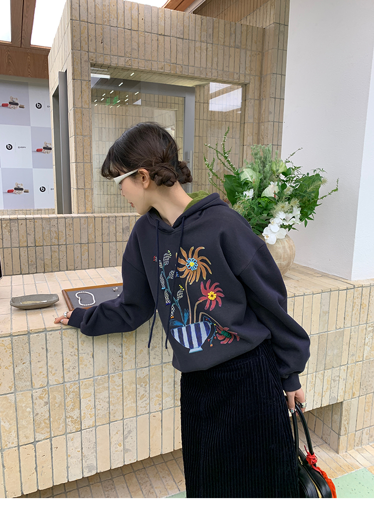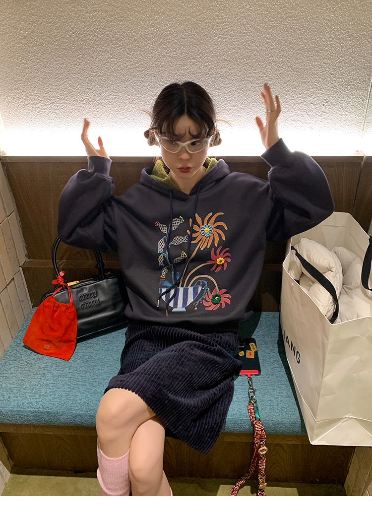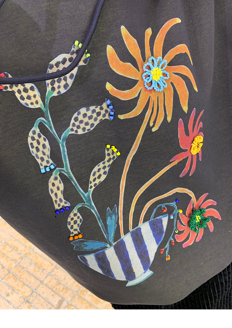 LRIB Handcrafted Bead Potted Printed Fleece Hooded Sweatshirt