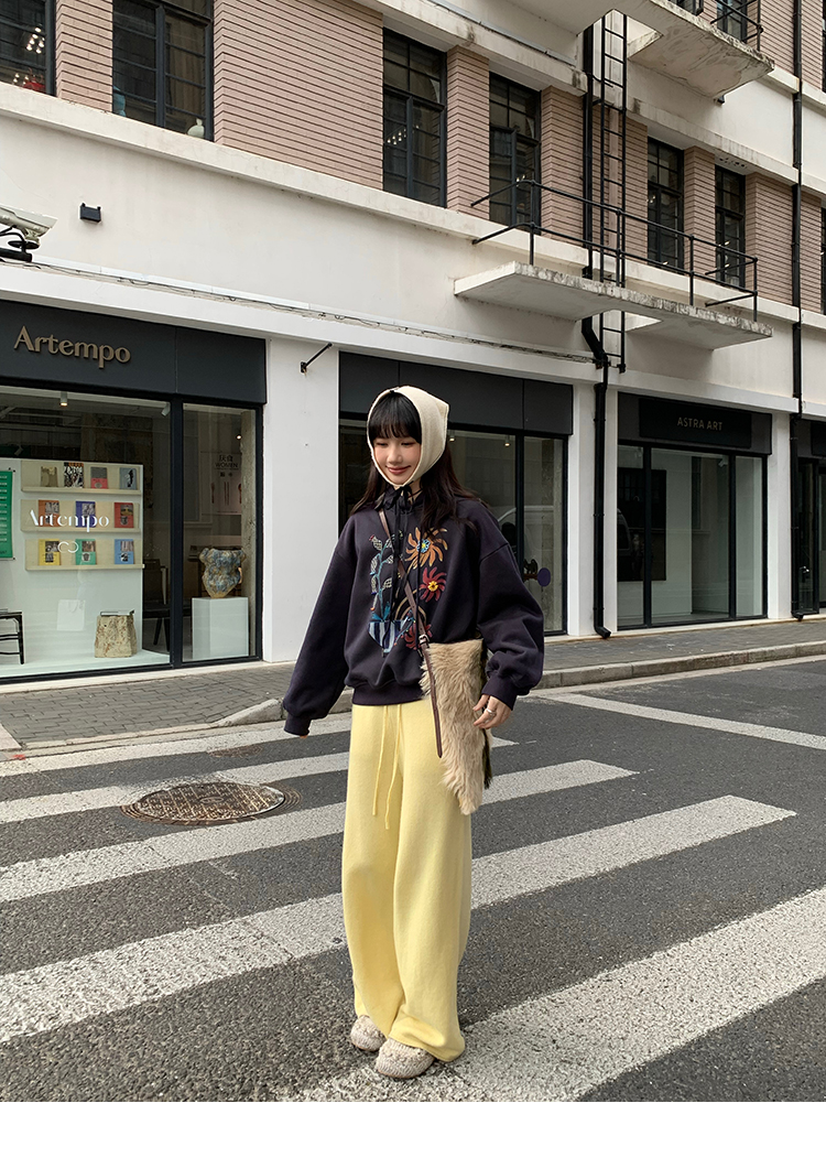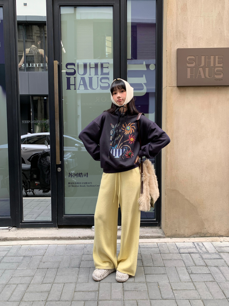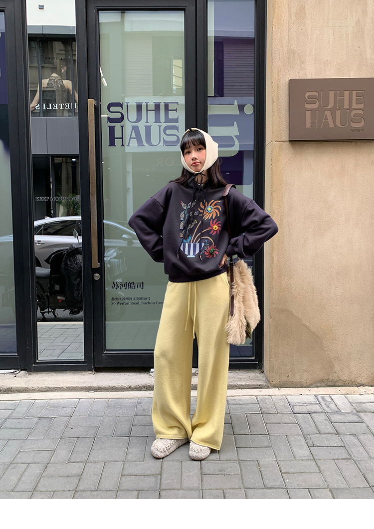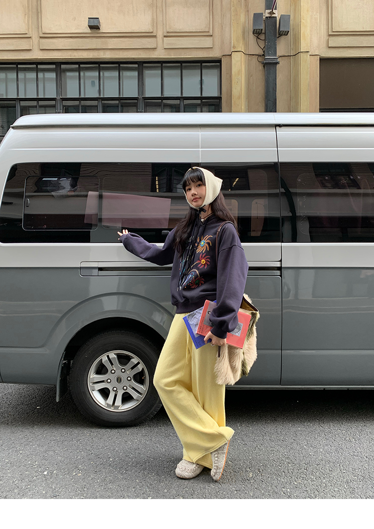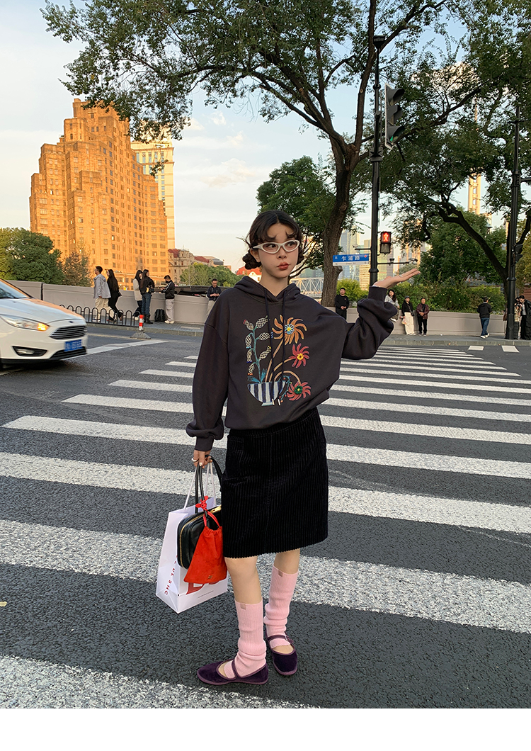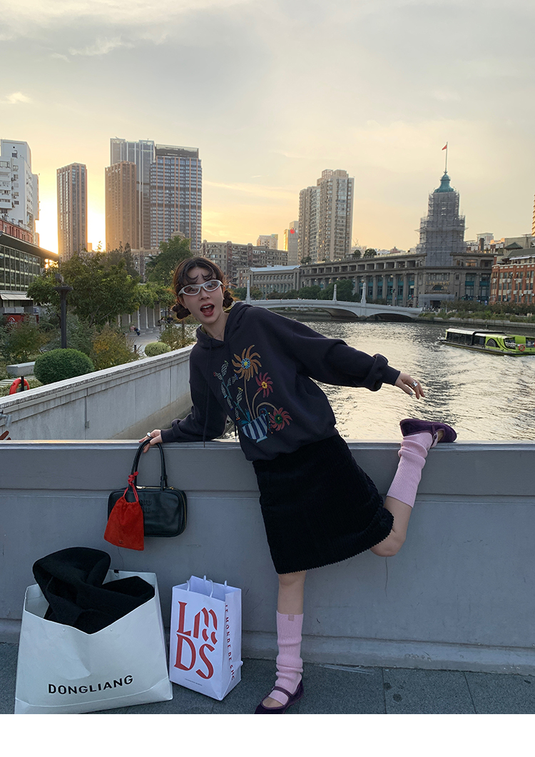 LRIB Handcrafted Bead Potted Printed Fleece Hooded Sweatshirt