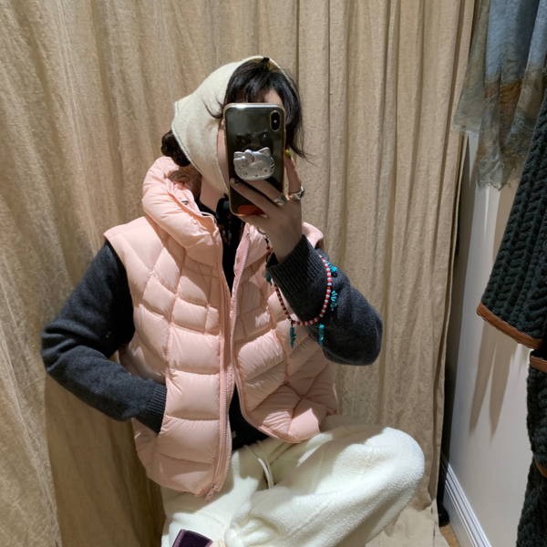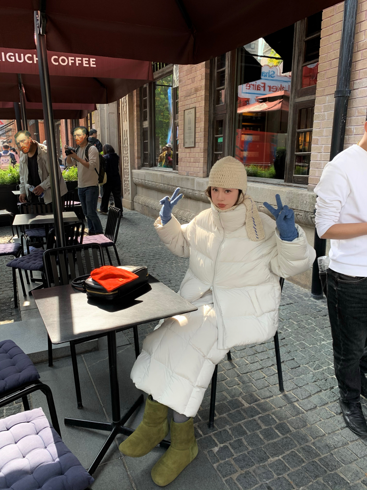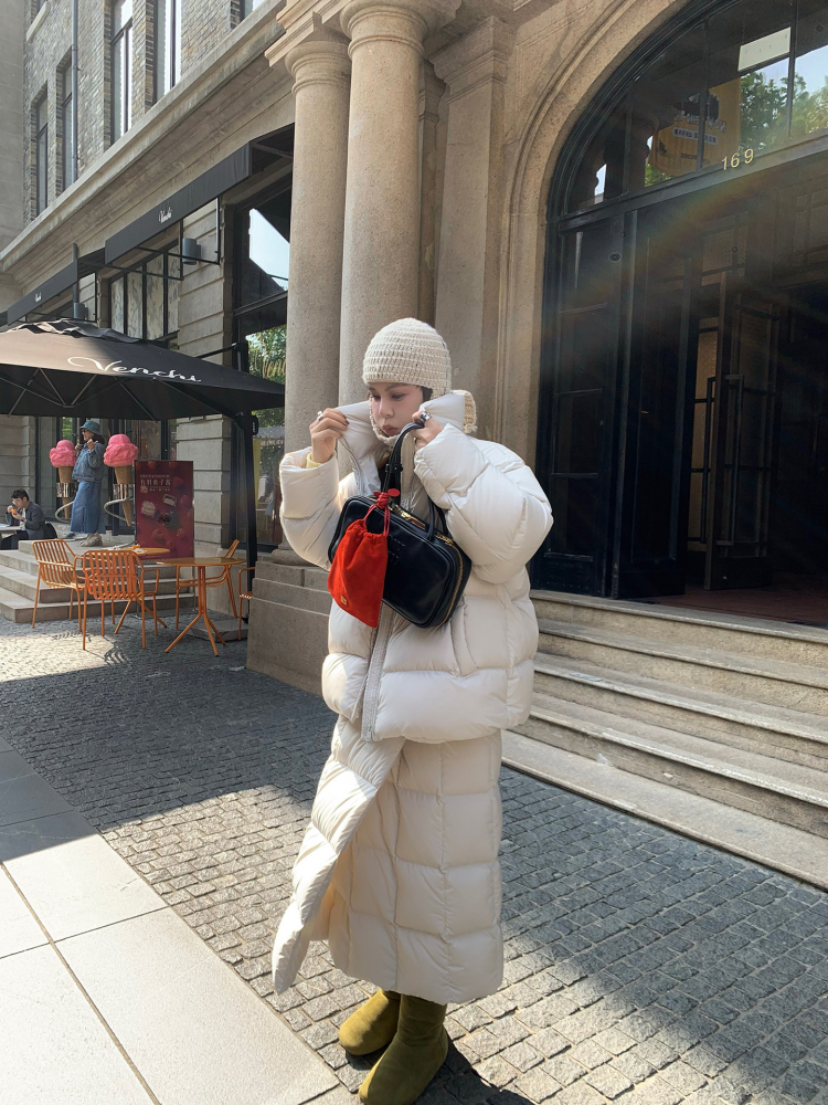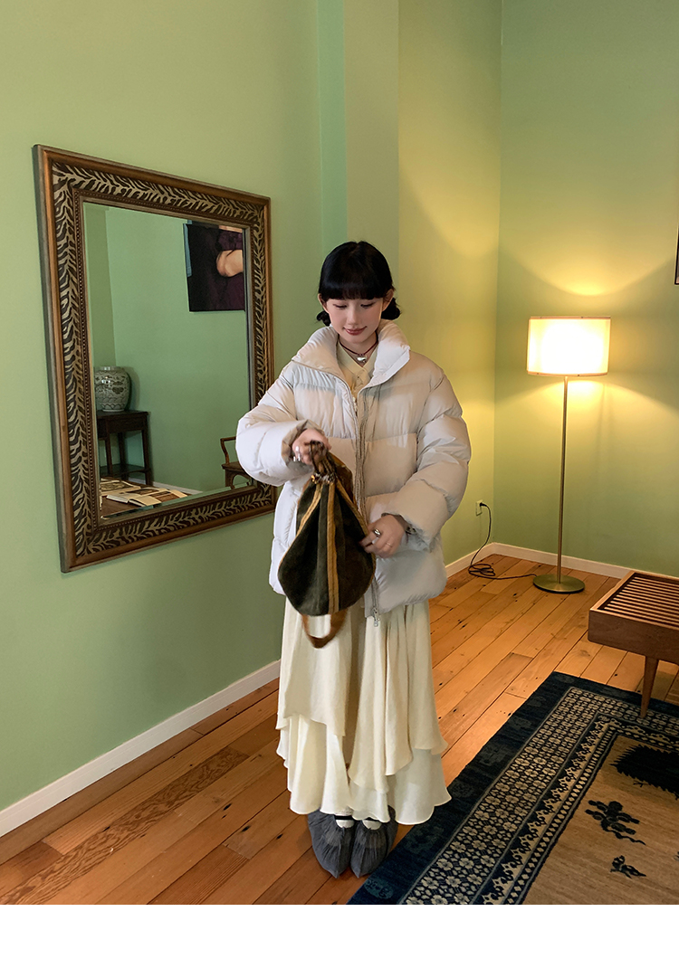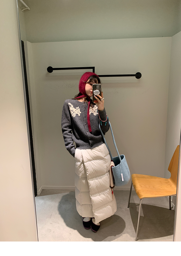 LRIB duck down beige quilt half skirt down jacket