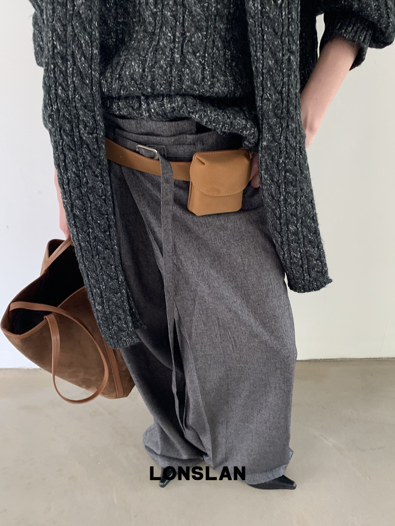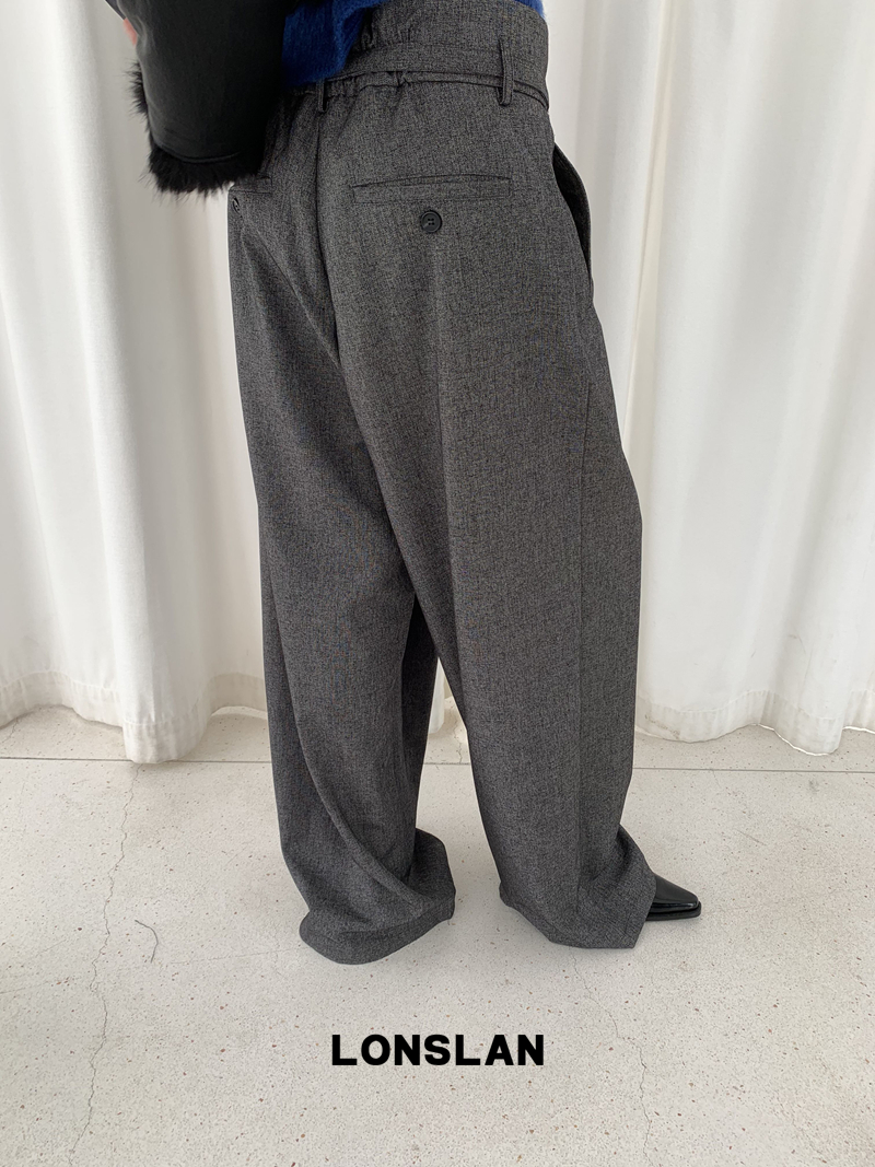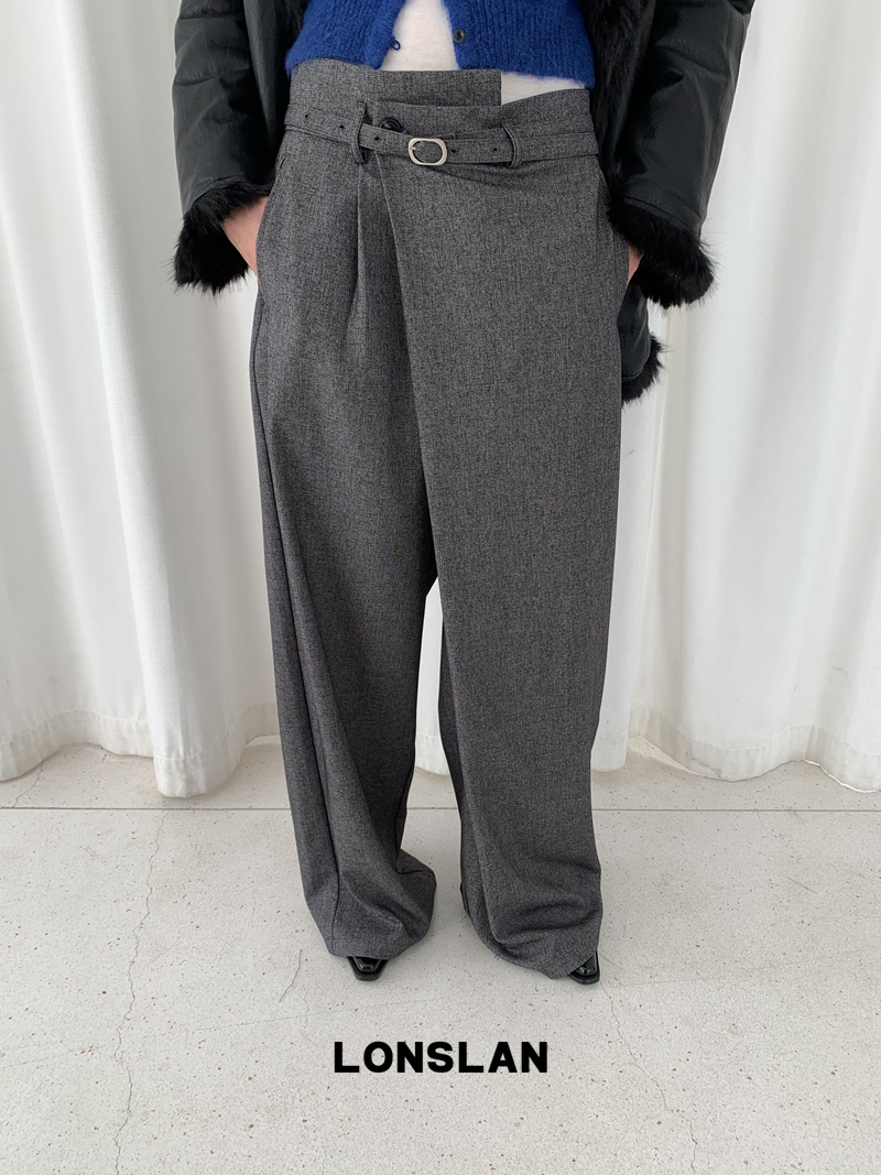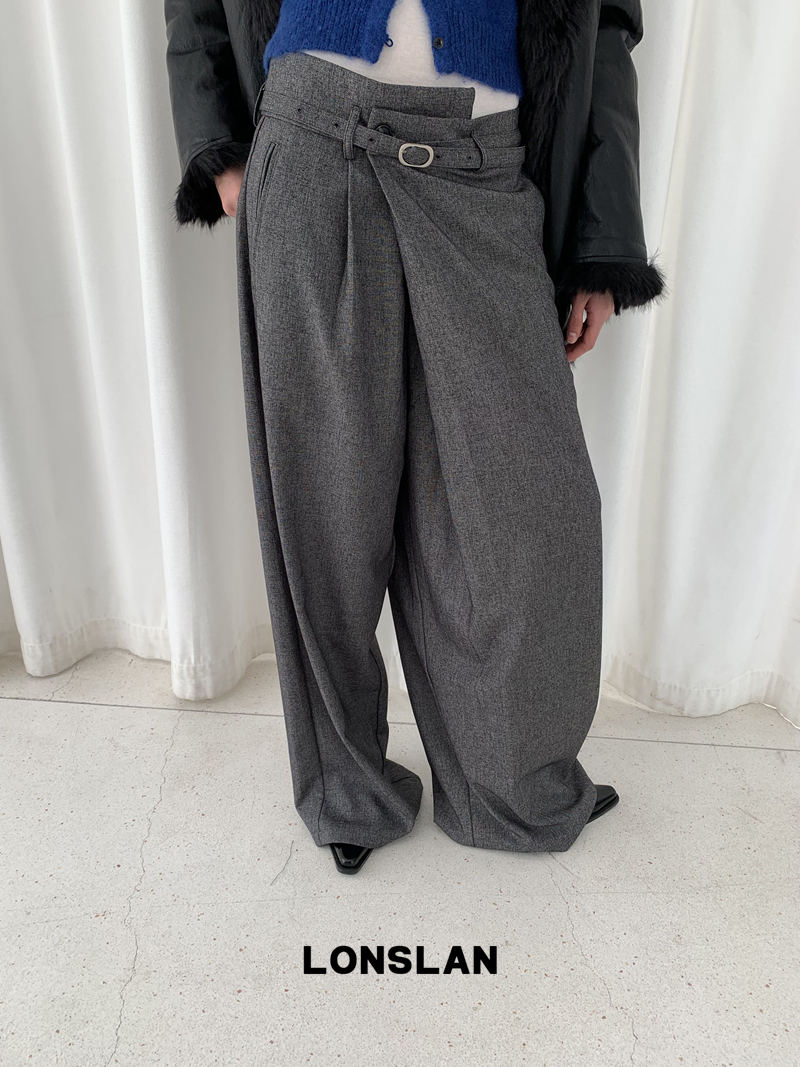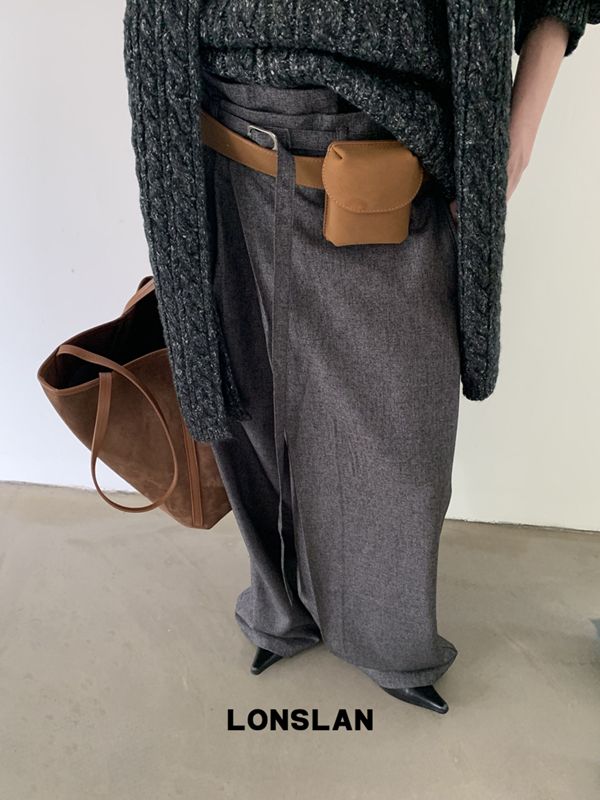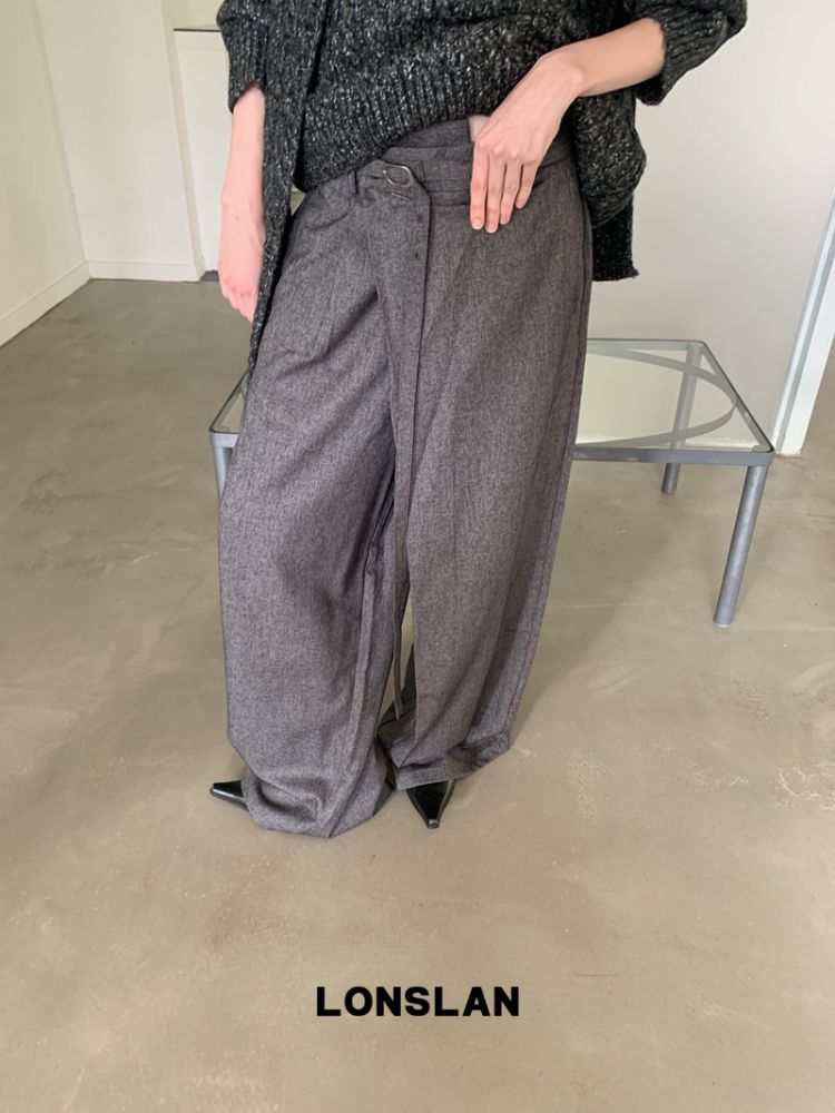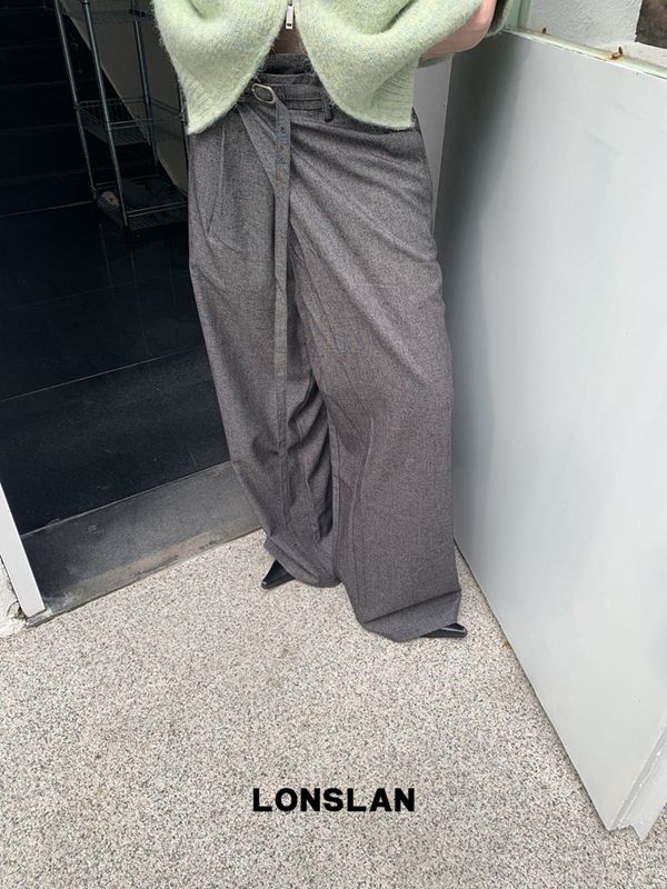 LONSLAN Irregular Diagonal Hem Belt Wool Suit Wide-Leg Trousers