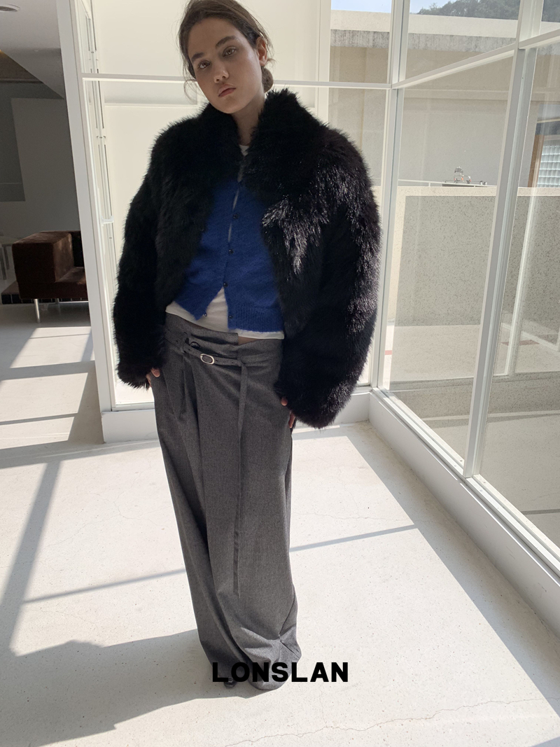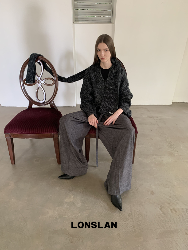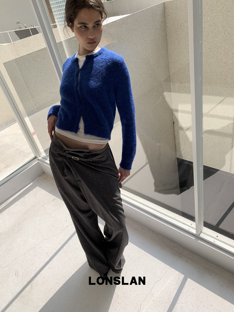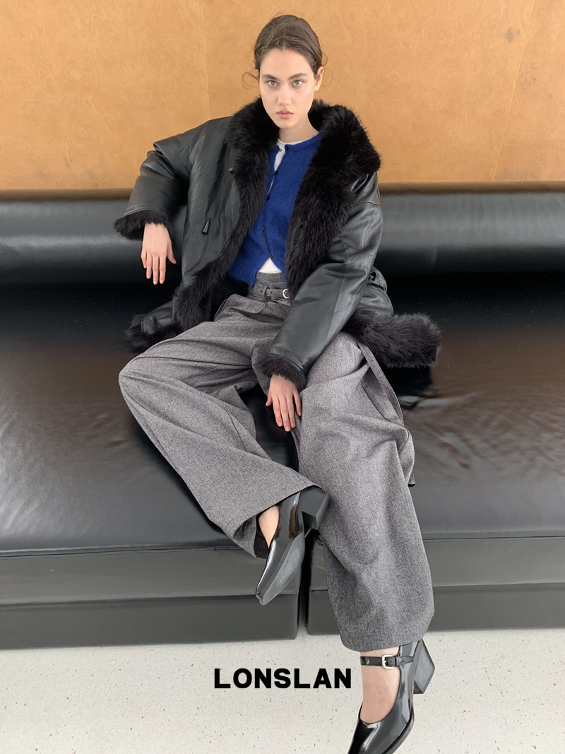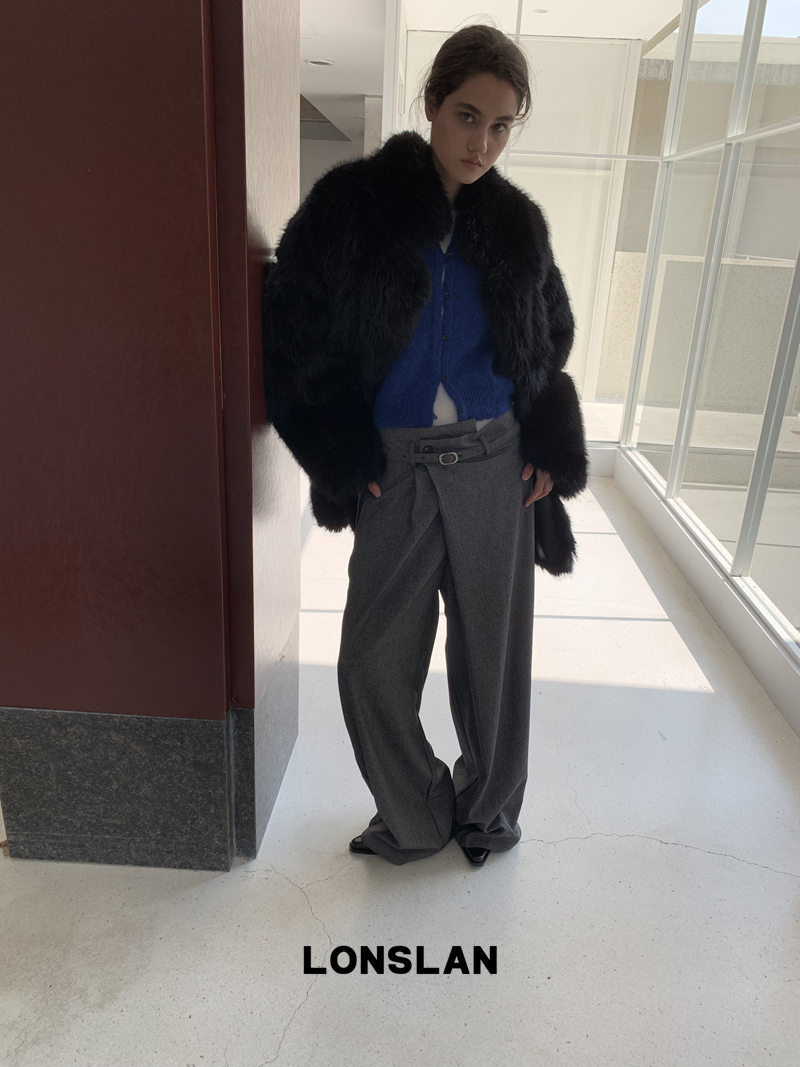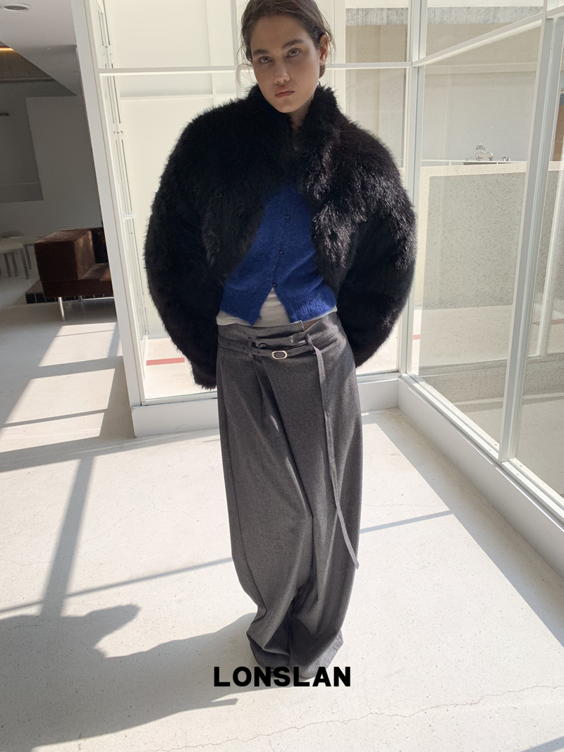 LONSLAN Irregular Diagonal Hem Belt Wool Suit Wide-Leg Trousers