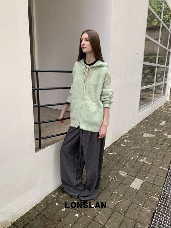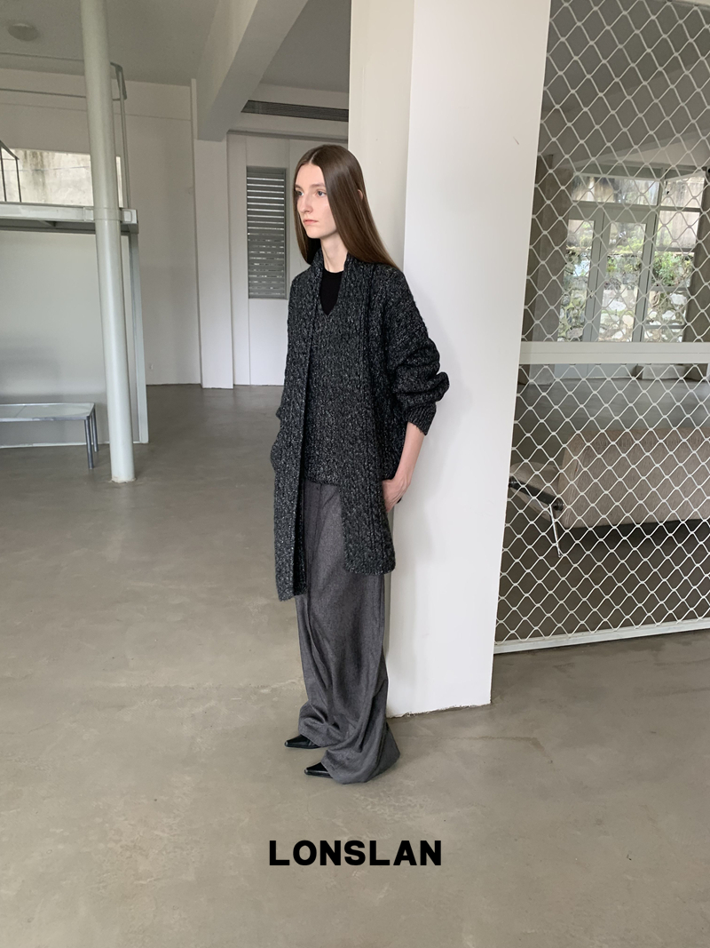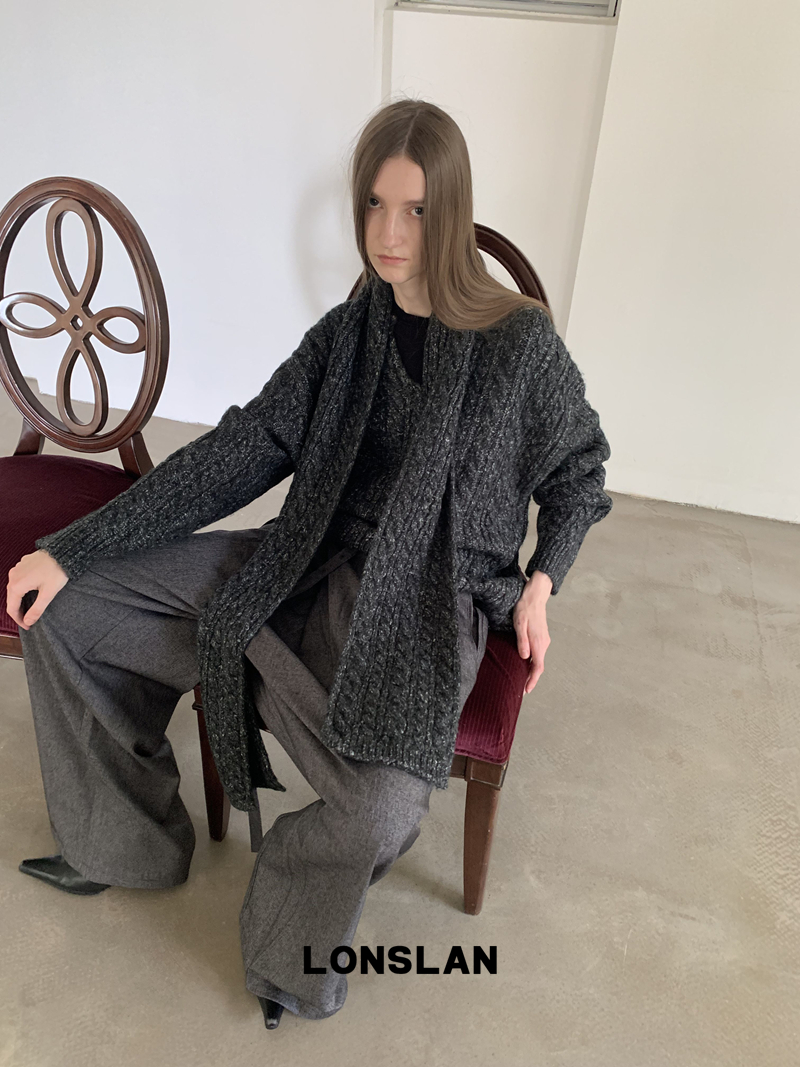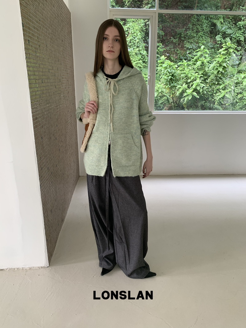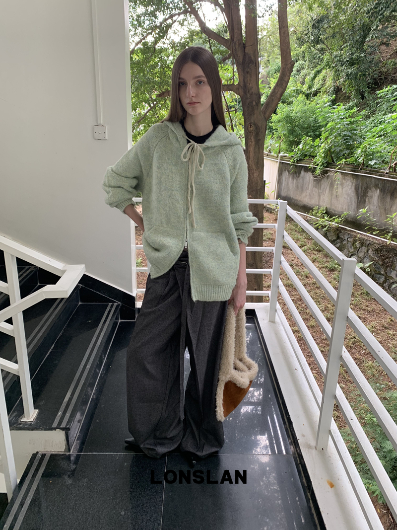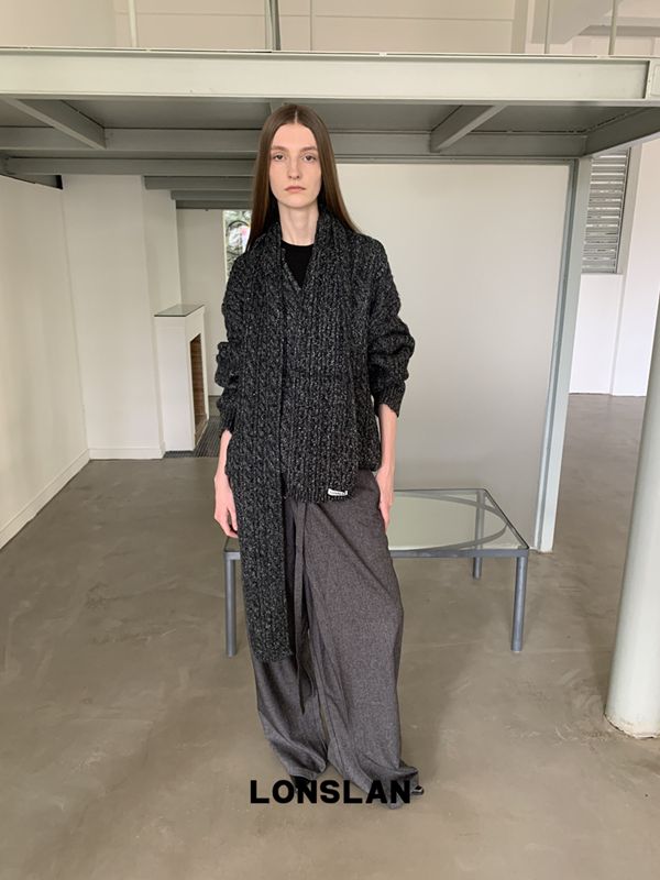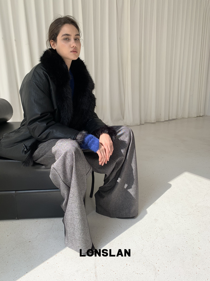 LONSLAN Irregular Diagonal Hem Belt Wool Suit Wide-Leg Trousers