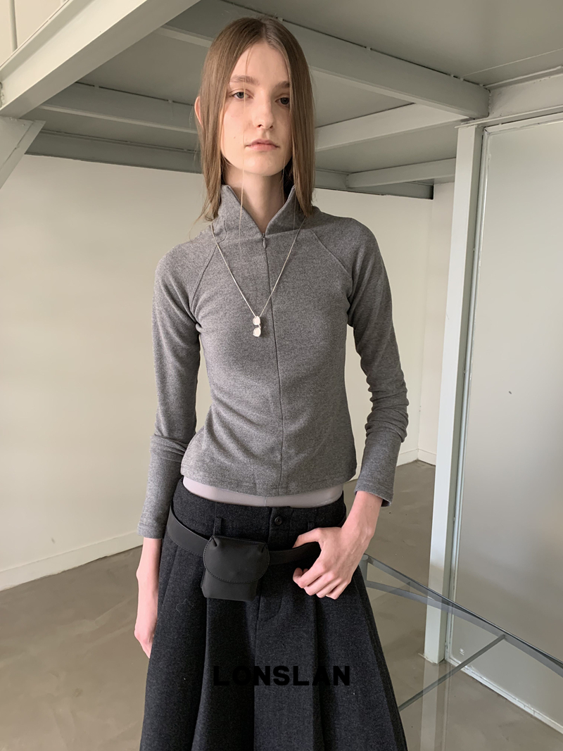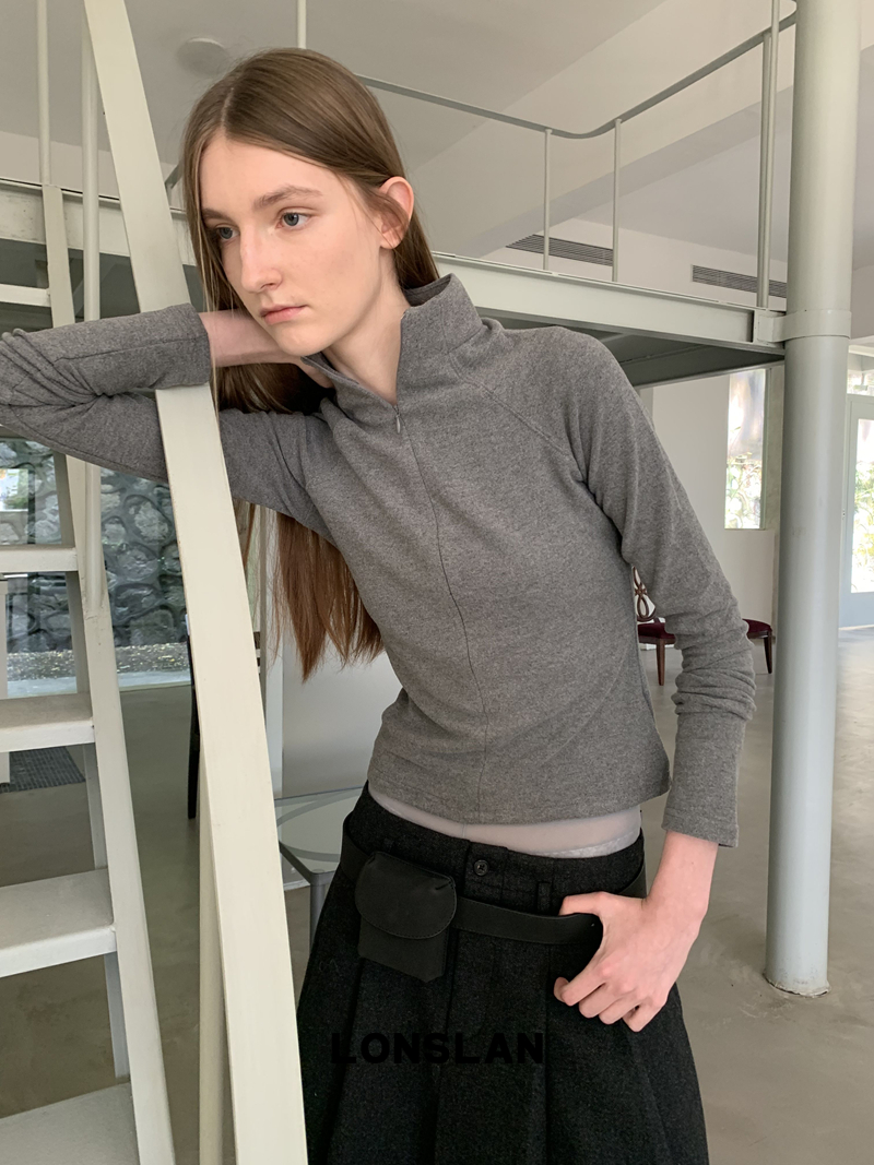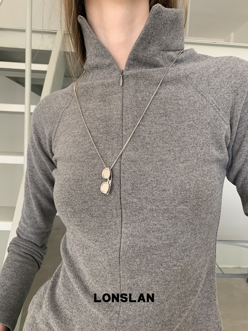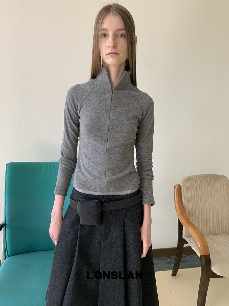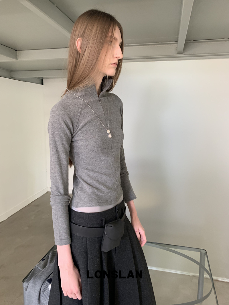 LONSLAN High-Neck Double-Opening Invisible Zipper Suede Fitted Base Layer top