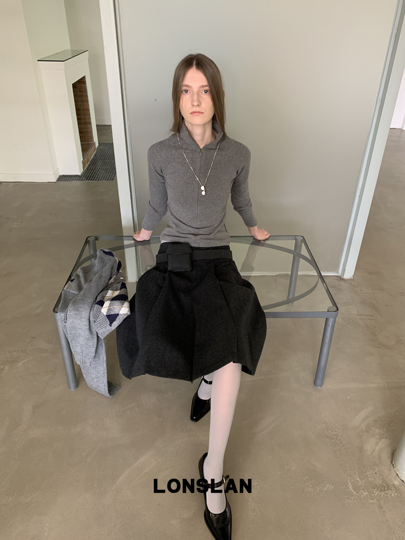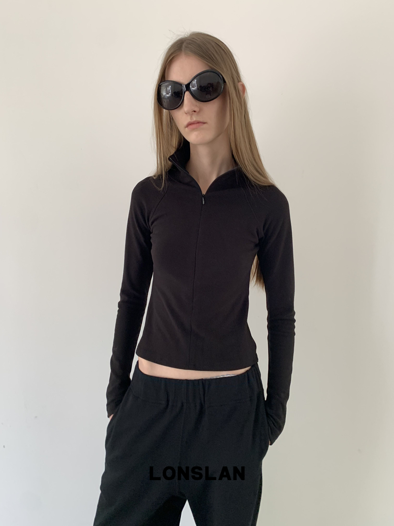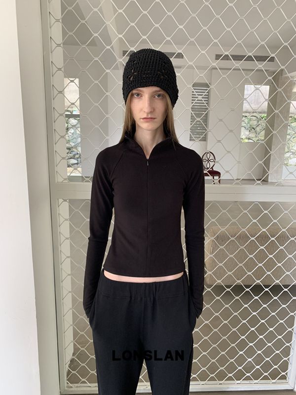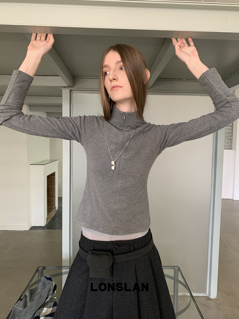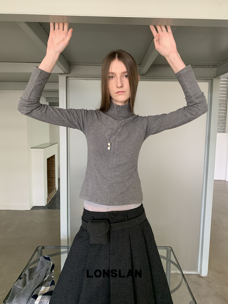 LONSLAN High-Neck Double-Opening Invisible Zipper Suede Fitted Base Layer top