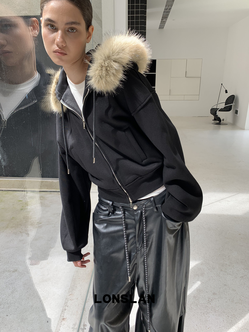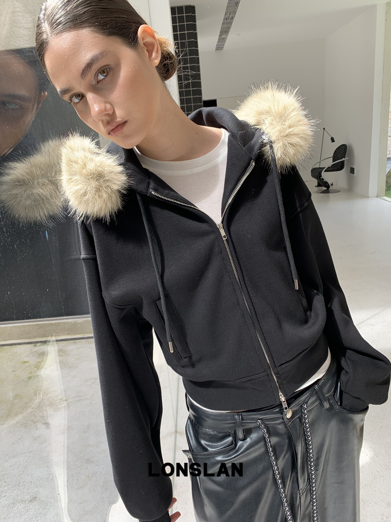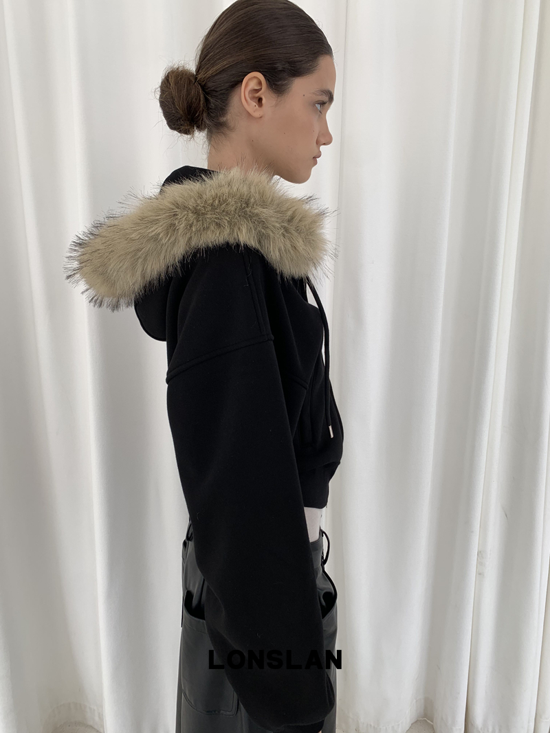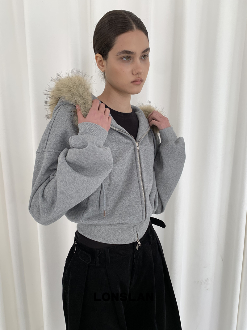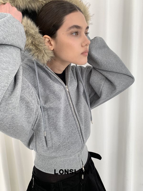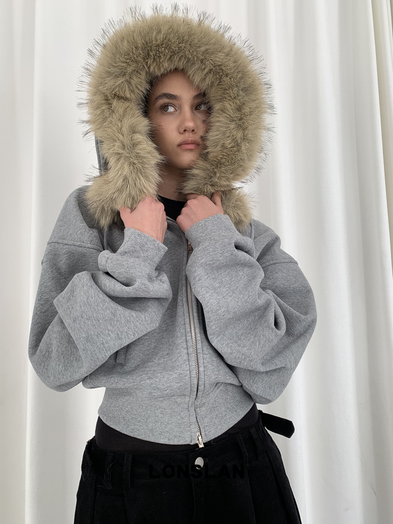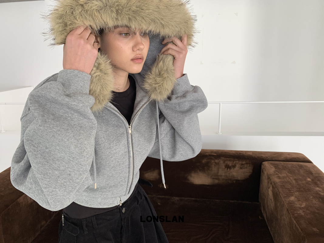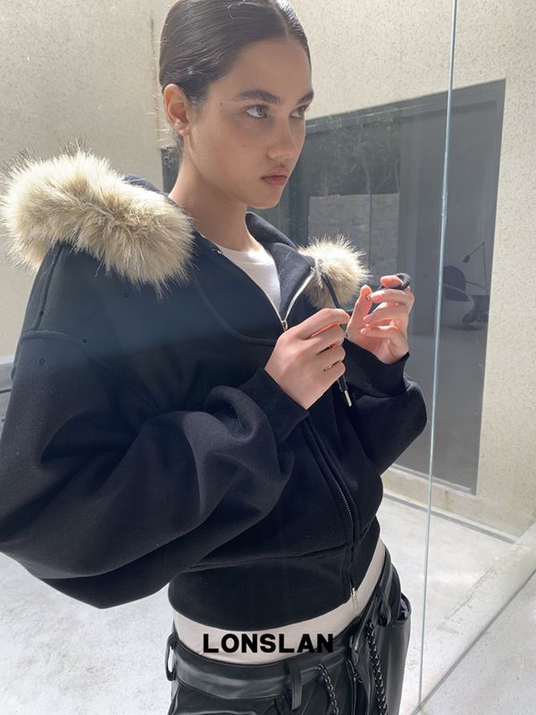 LONSLAN fleece-lined sweatshirt jacket with fur collar