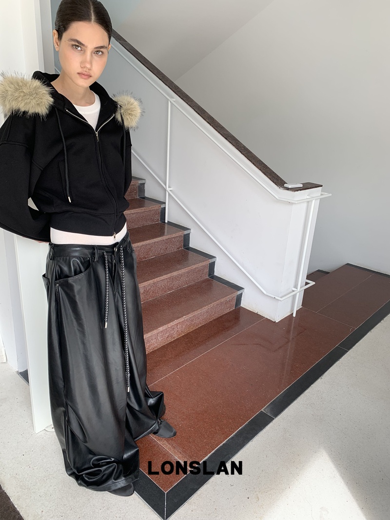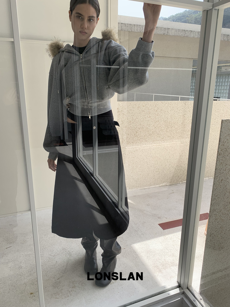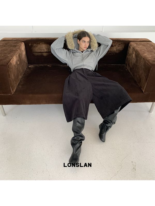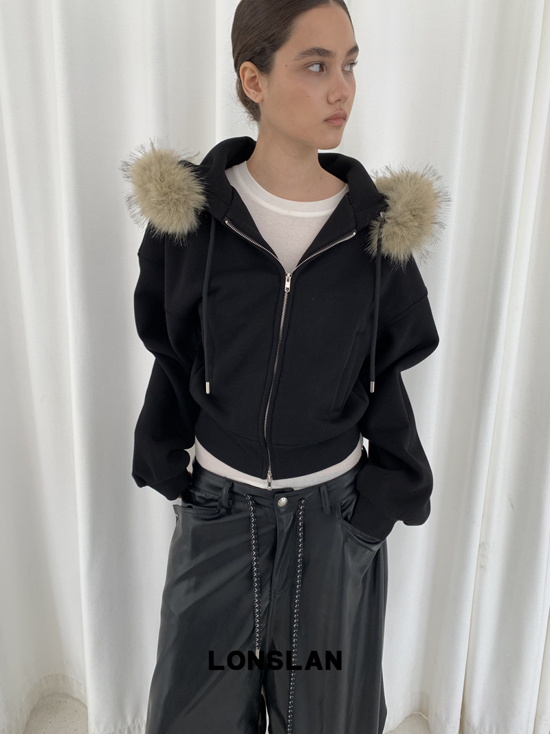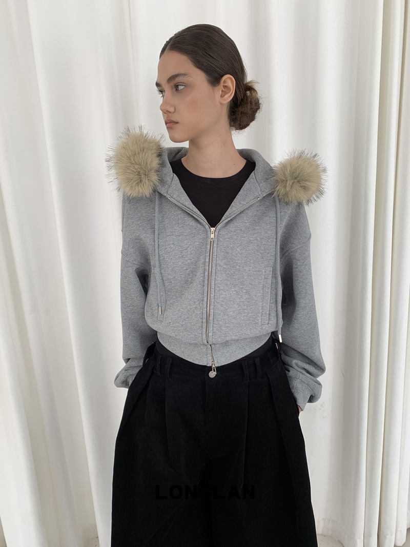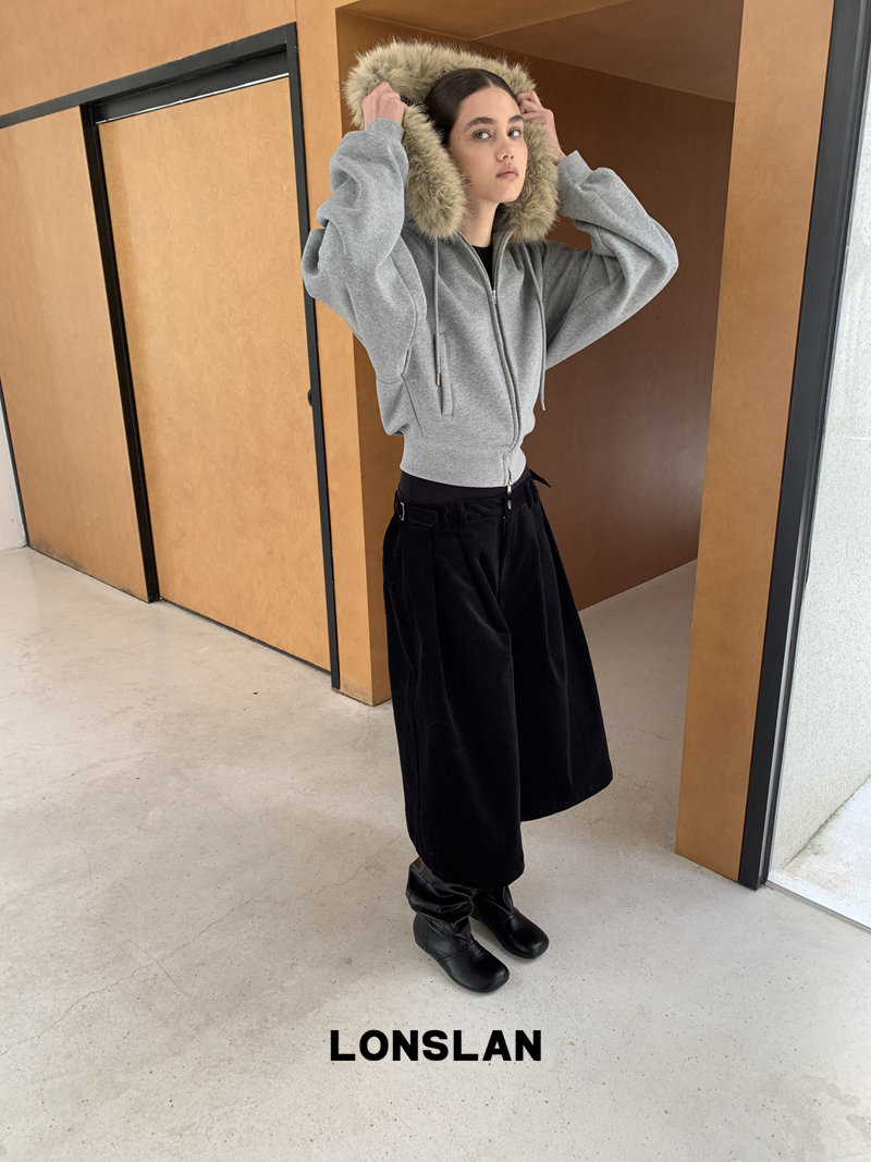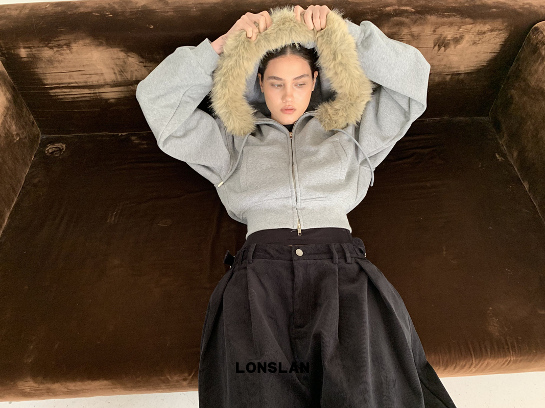 LONSLAN fleece-lined sweatshirt jacket with fur collar