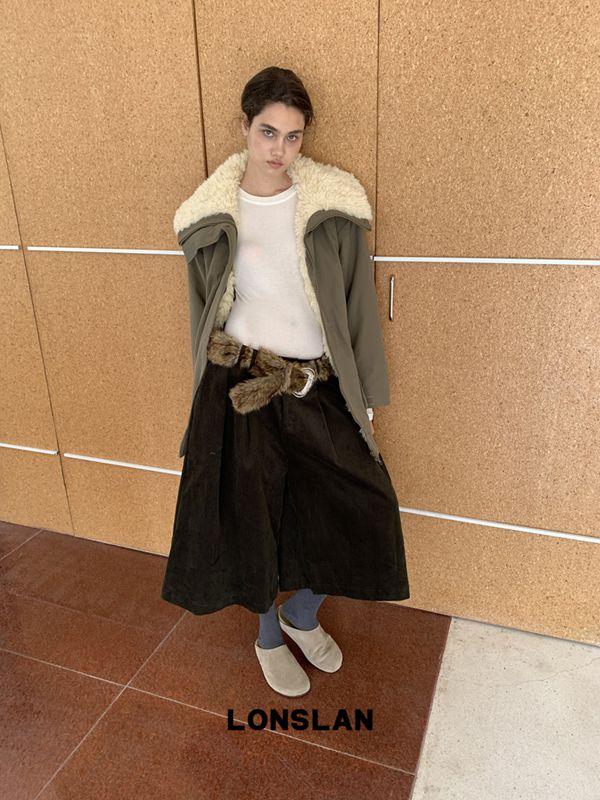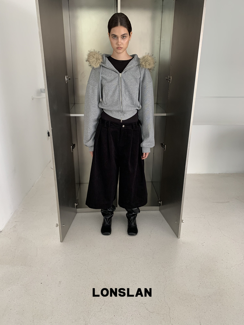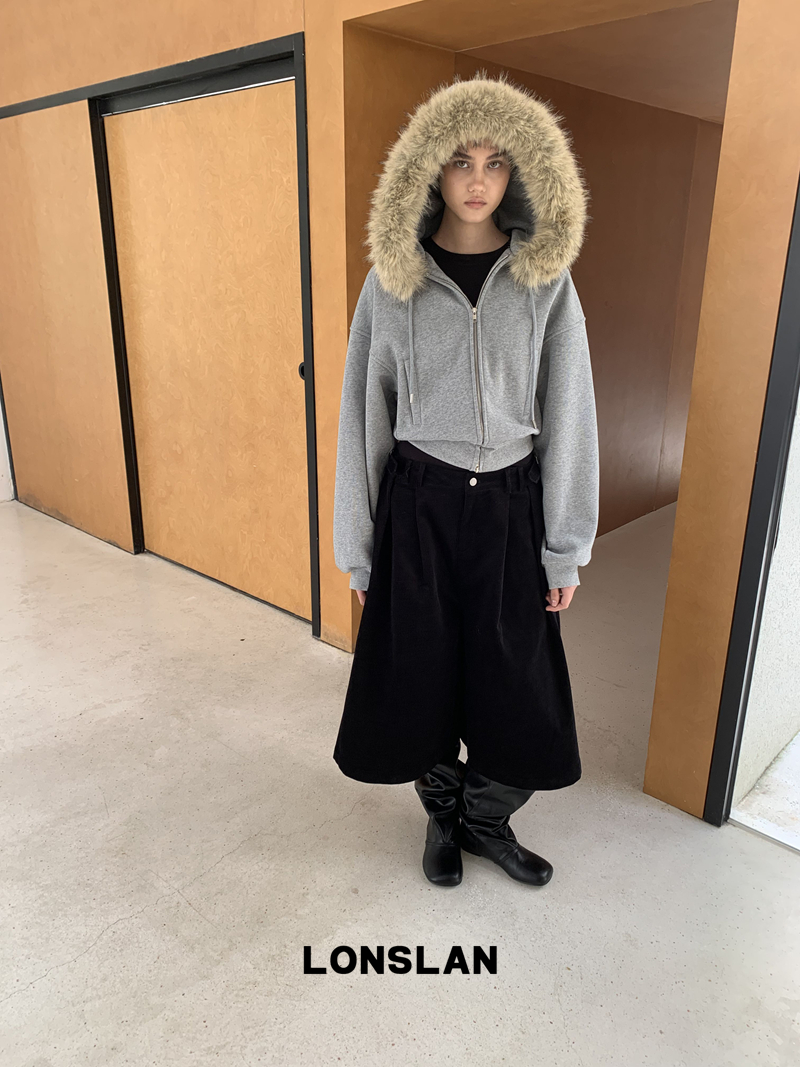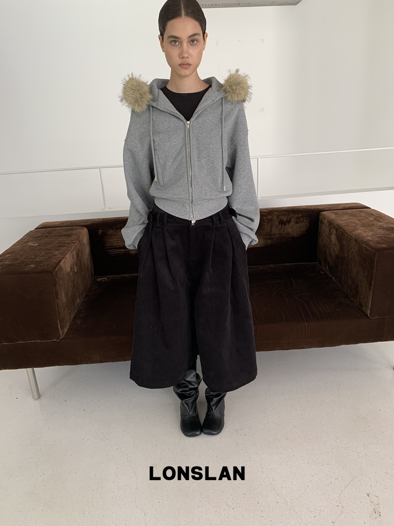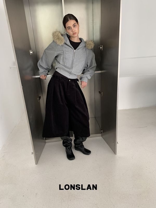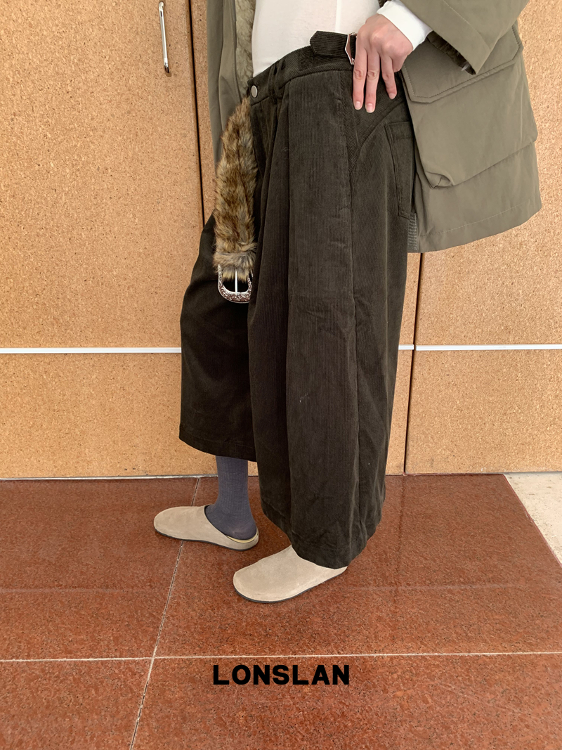 LONSLAN Thick Corduroy Wide-Leg Capri Pants