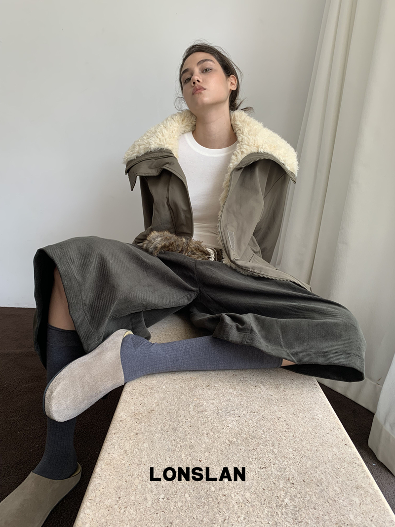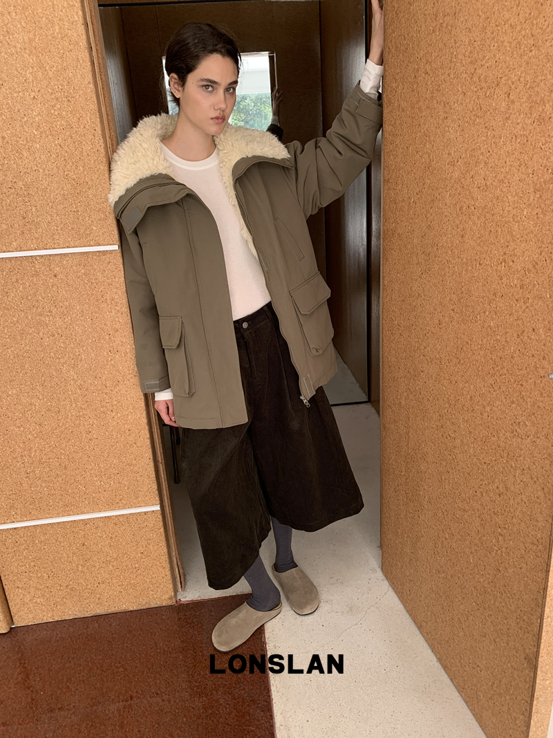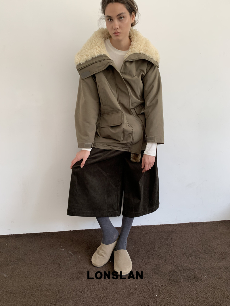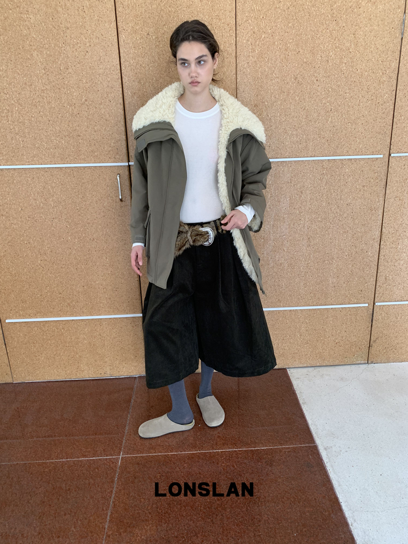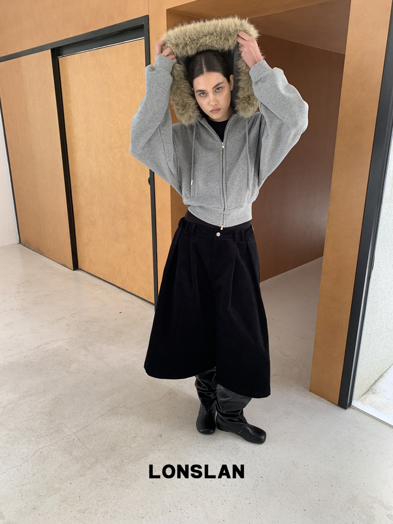 LONSLAN Thick Corduroy Wide-Leg Capri Pants