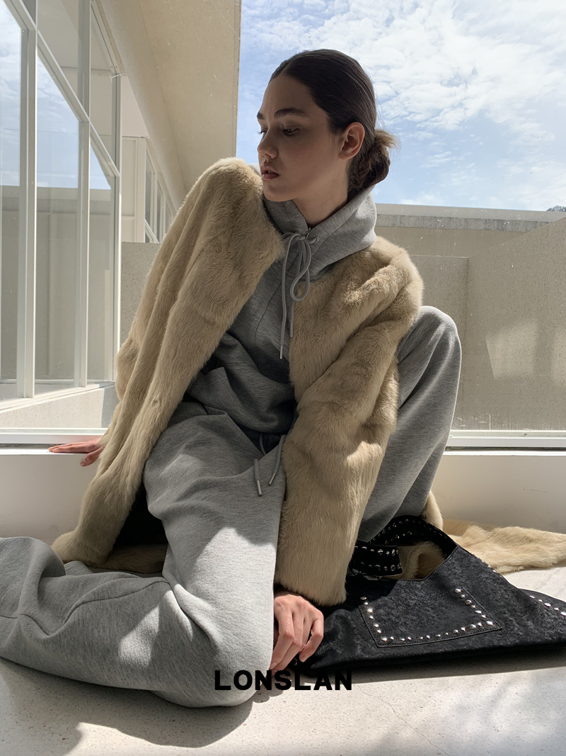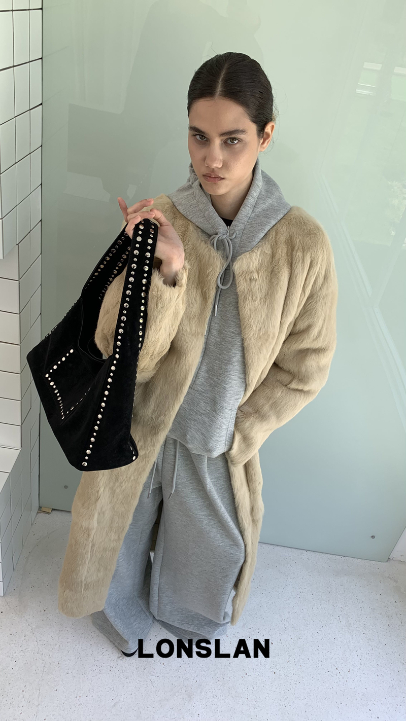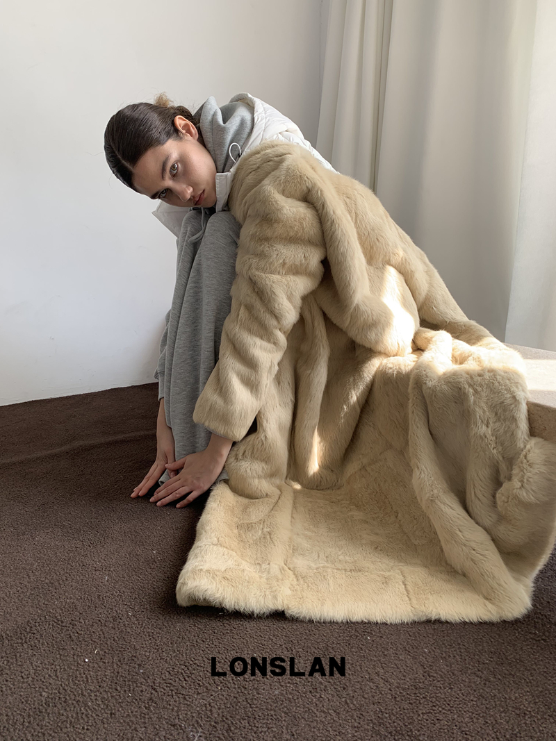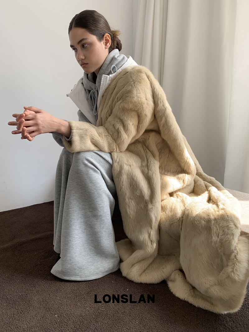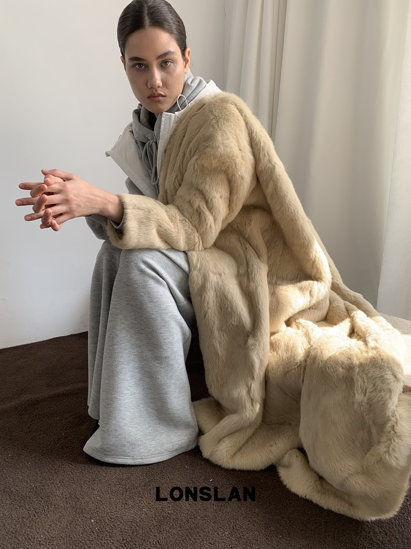 LONSLAN Elegant Long Fur Coat