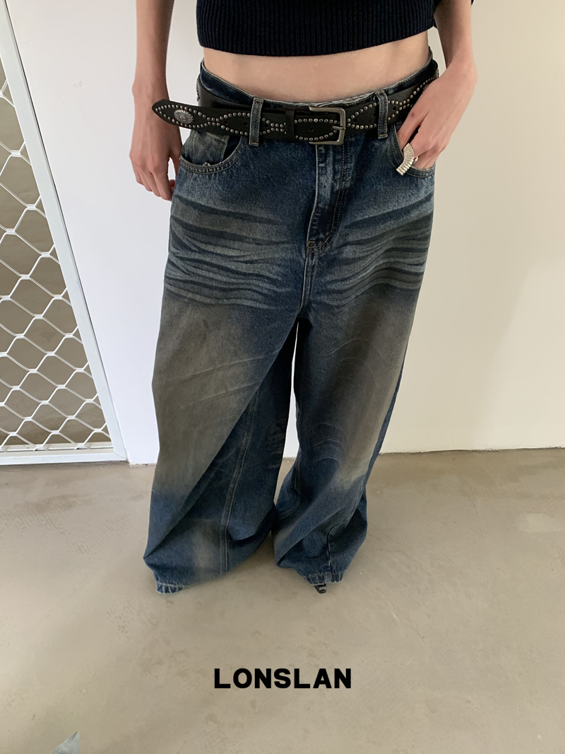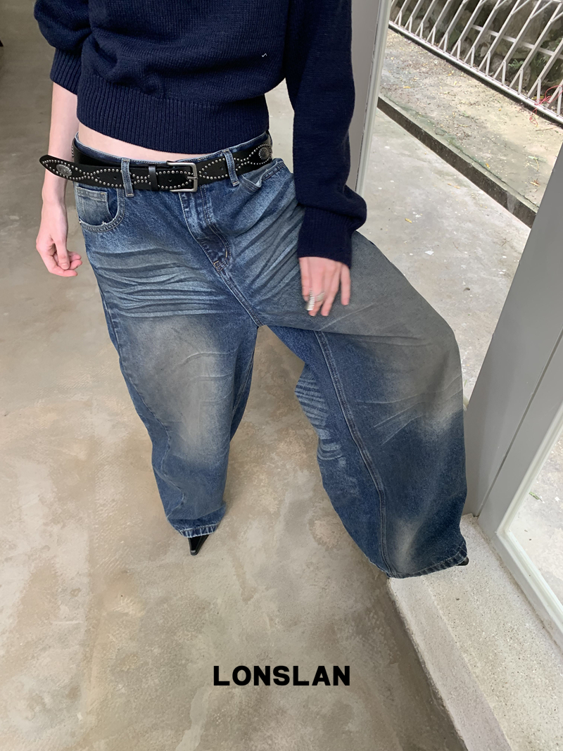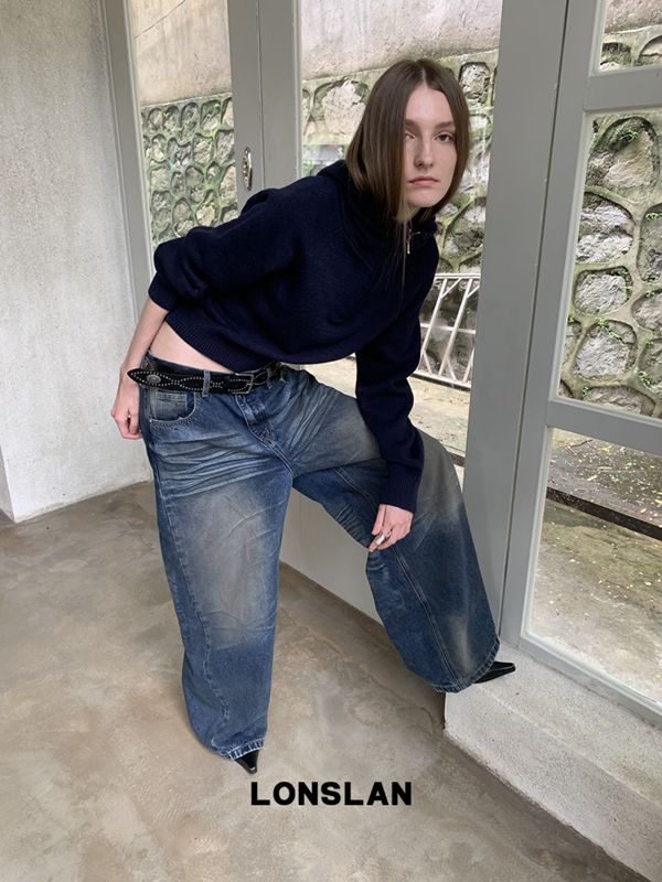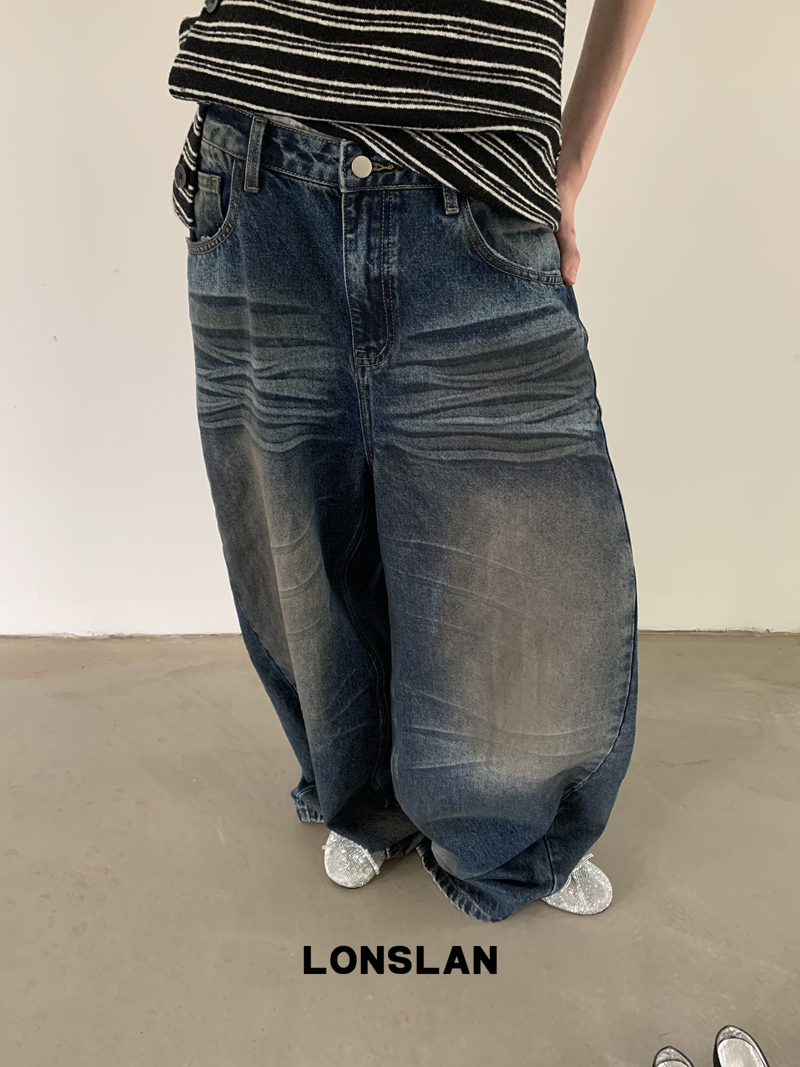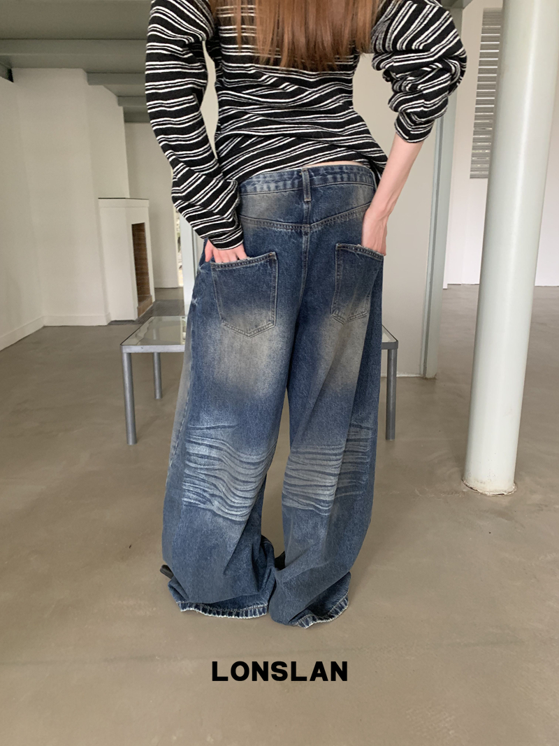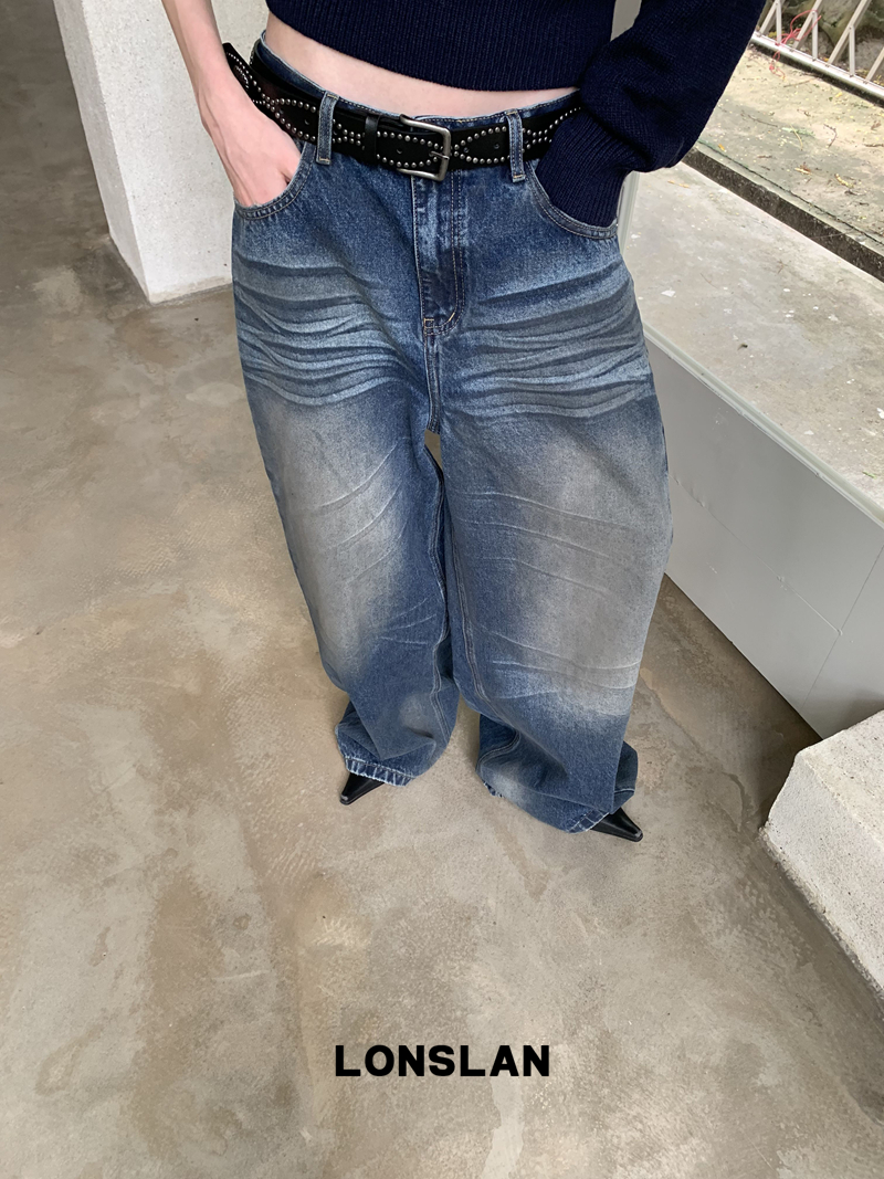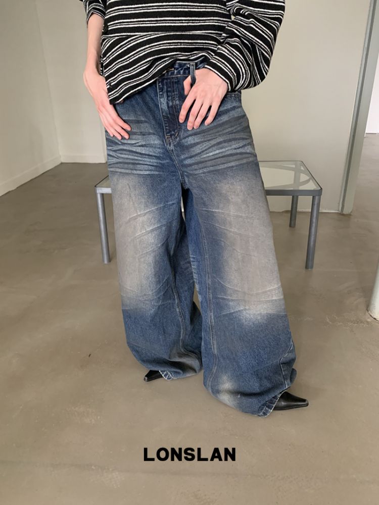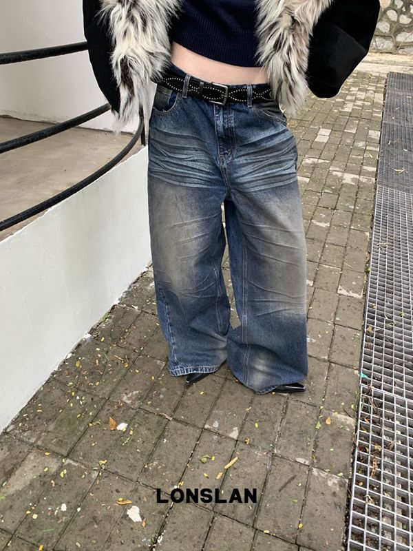 LONSLAN Fashion Retro Distressed Wide-Leg Washed Jeans