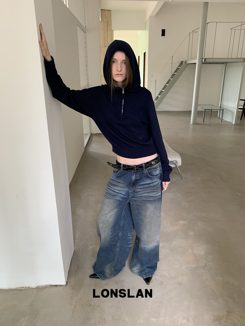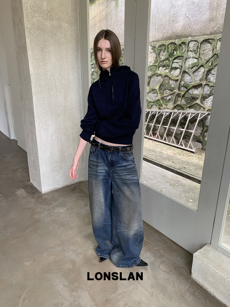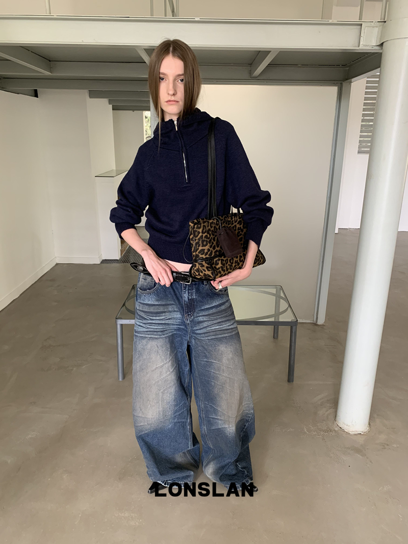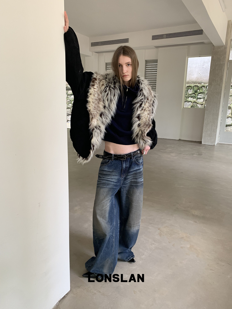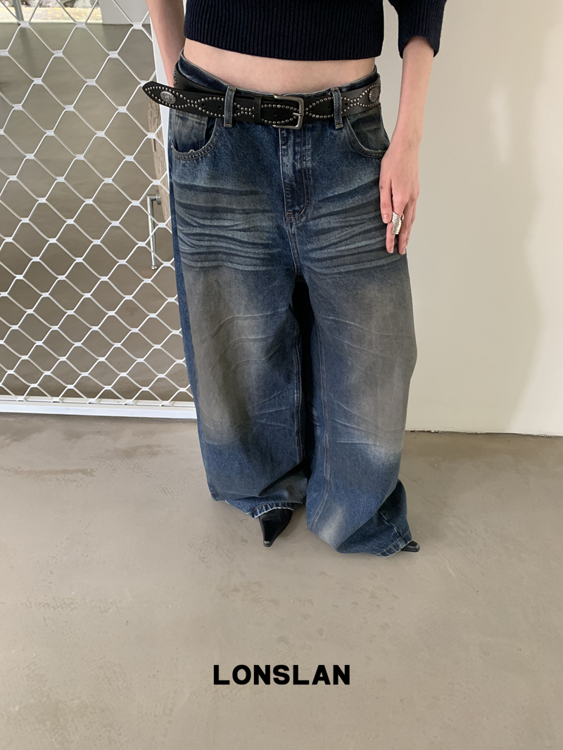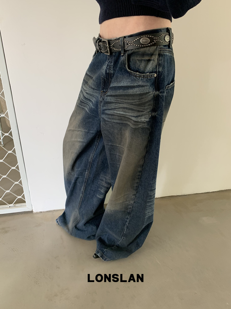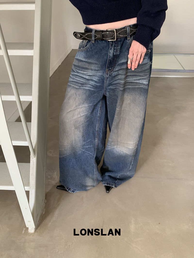 LONSLAN Fashion Retro Distressed Wide-Leg Washed Jeans