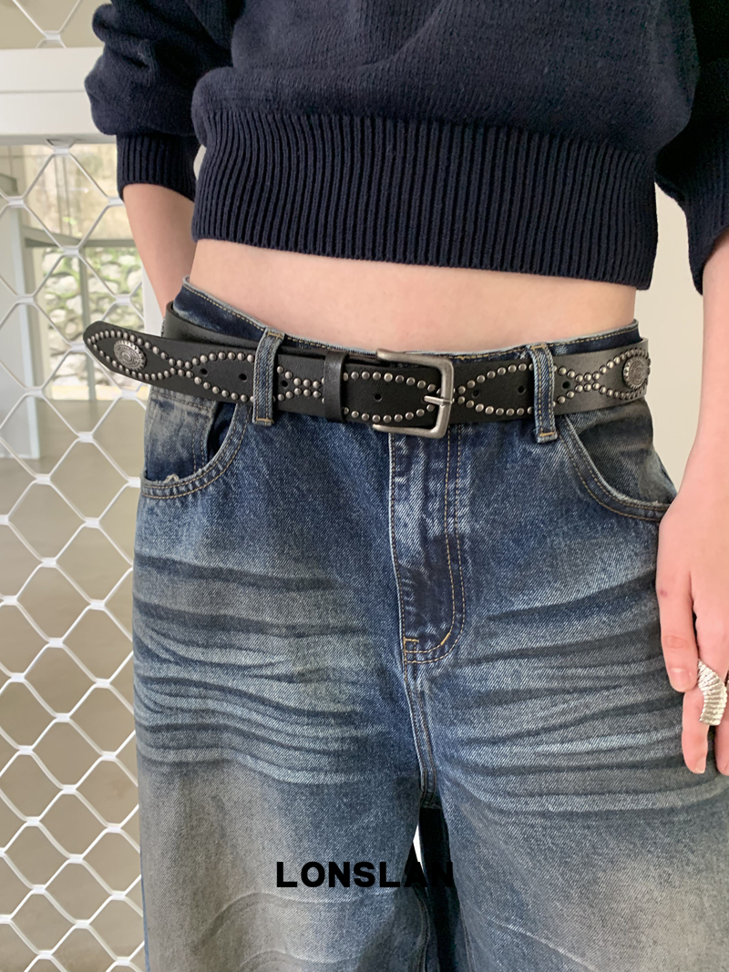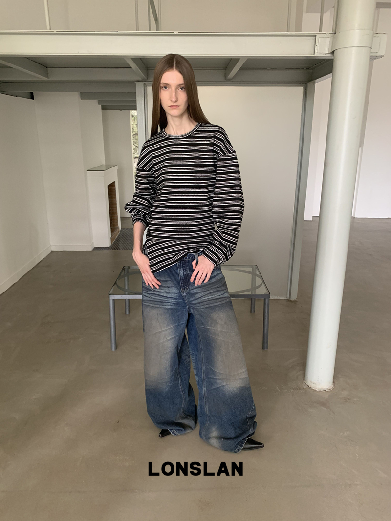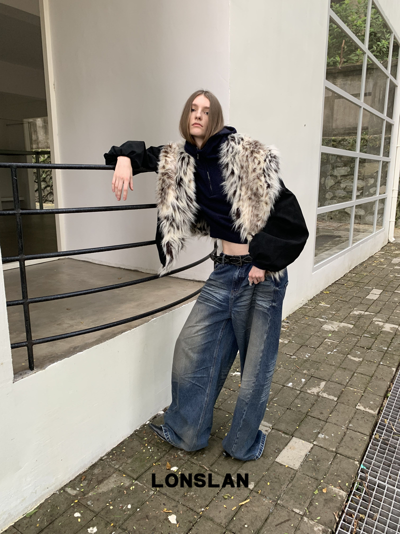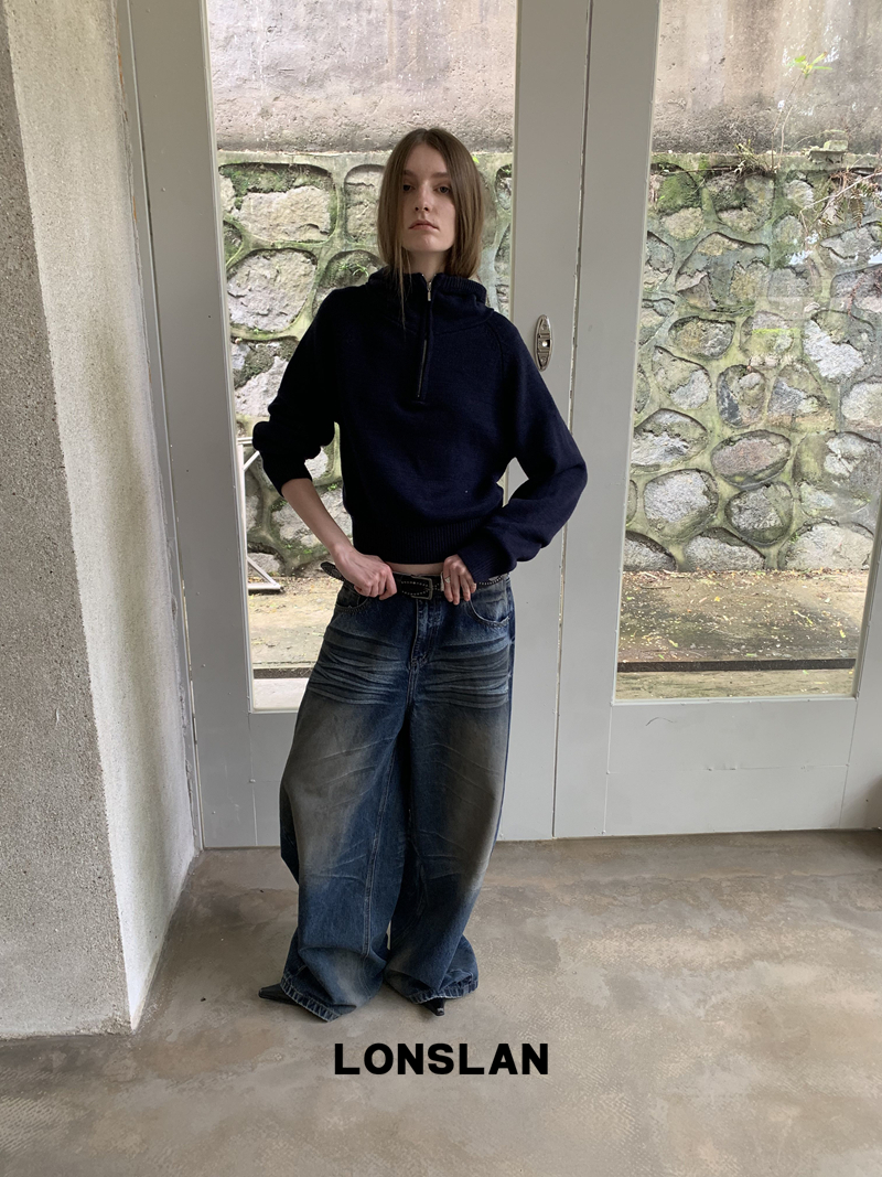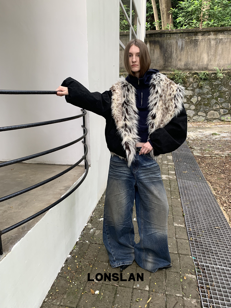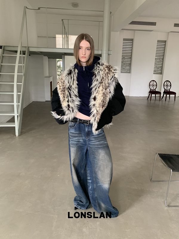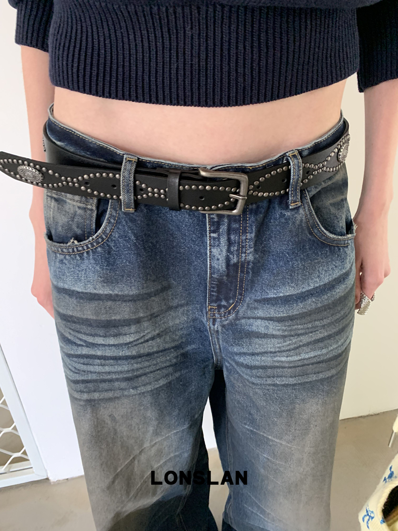LONSLAN Fashion Retro Distressed Wide-Leg Washed Jeans