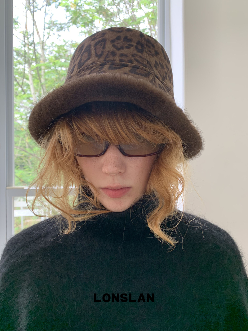 LONSLAN Retro Embroidered Leopard Pattern Fleece Double-Sided Hat