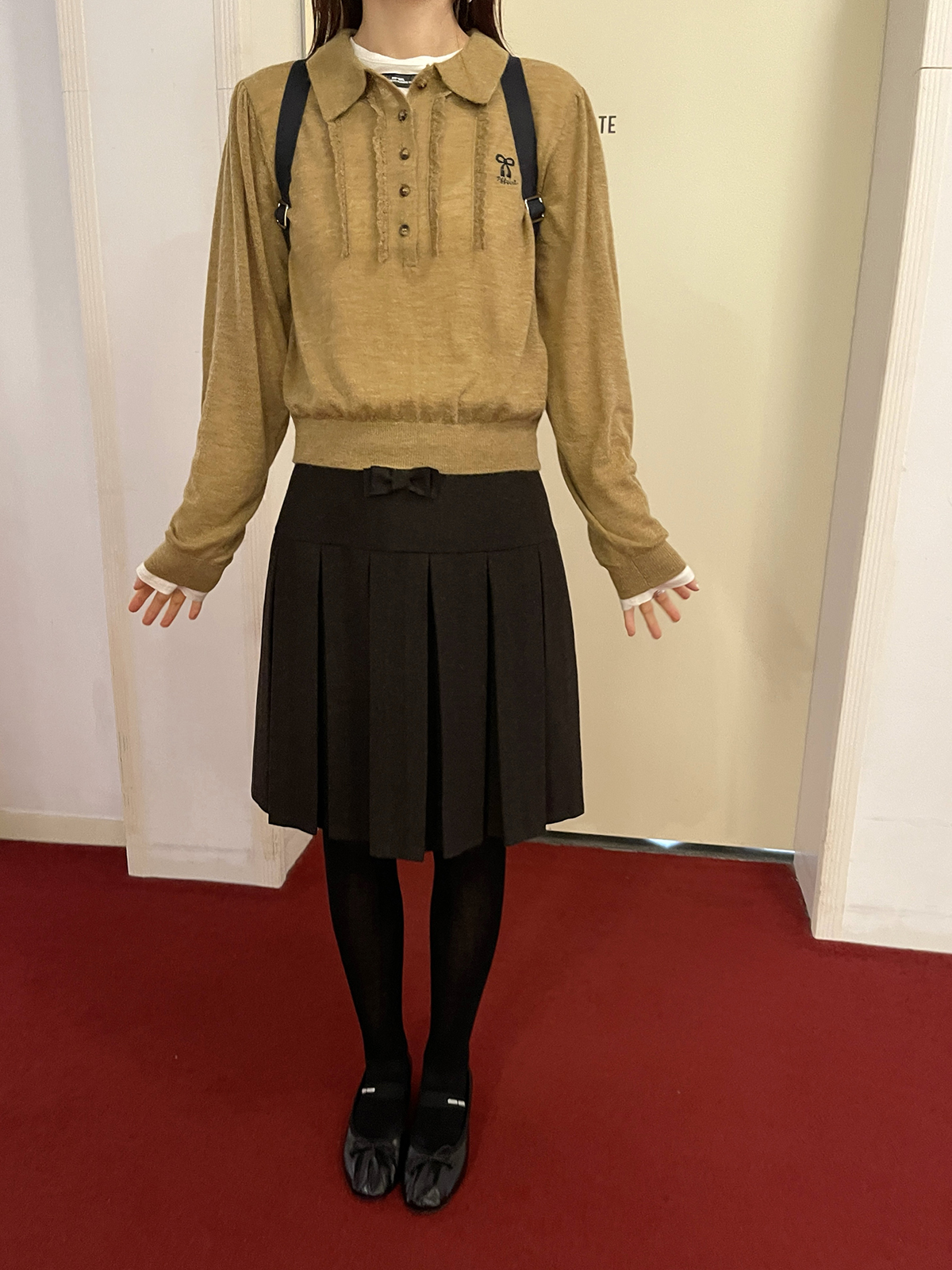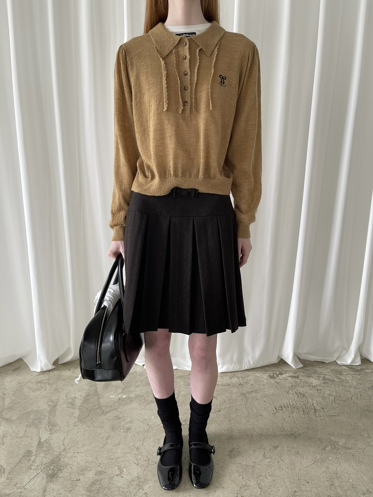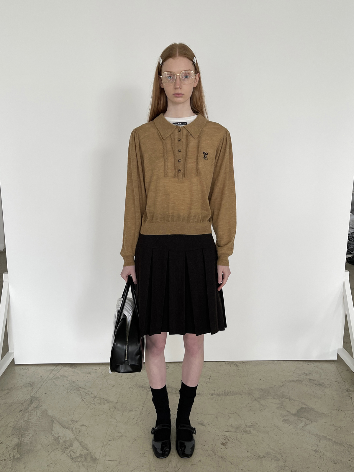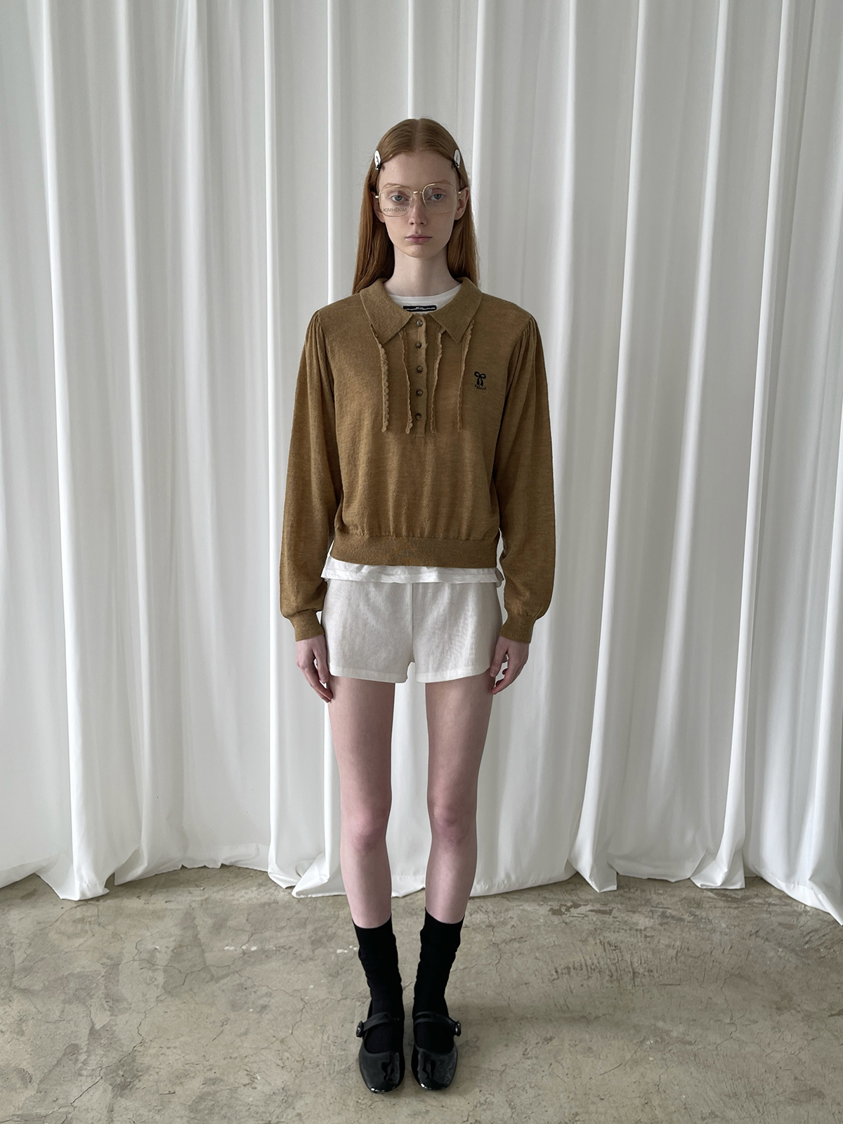 PFF GIRL Brown Puff Sleeve Knit Polo Shirt