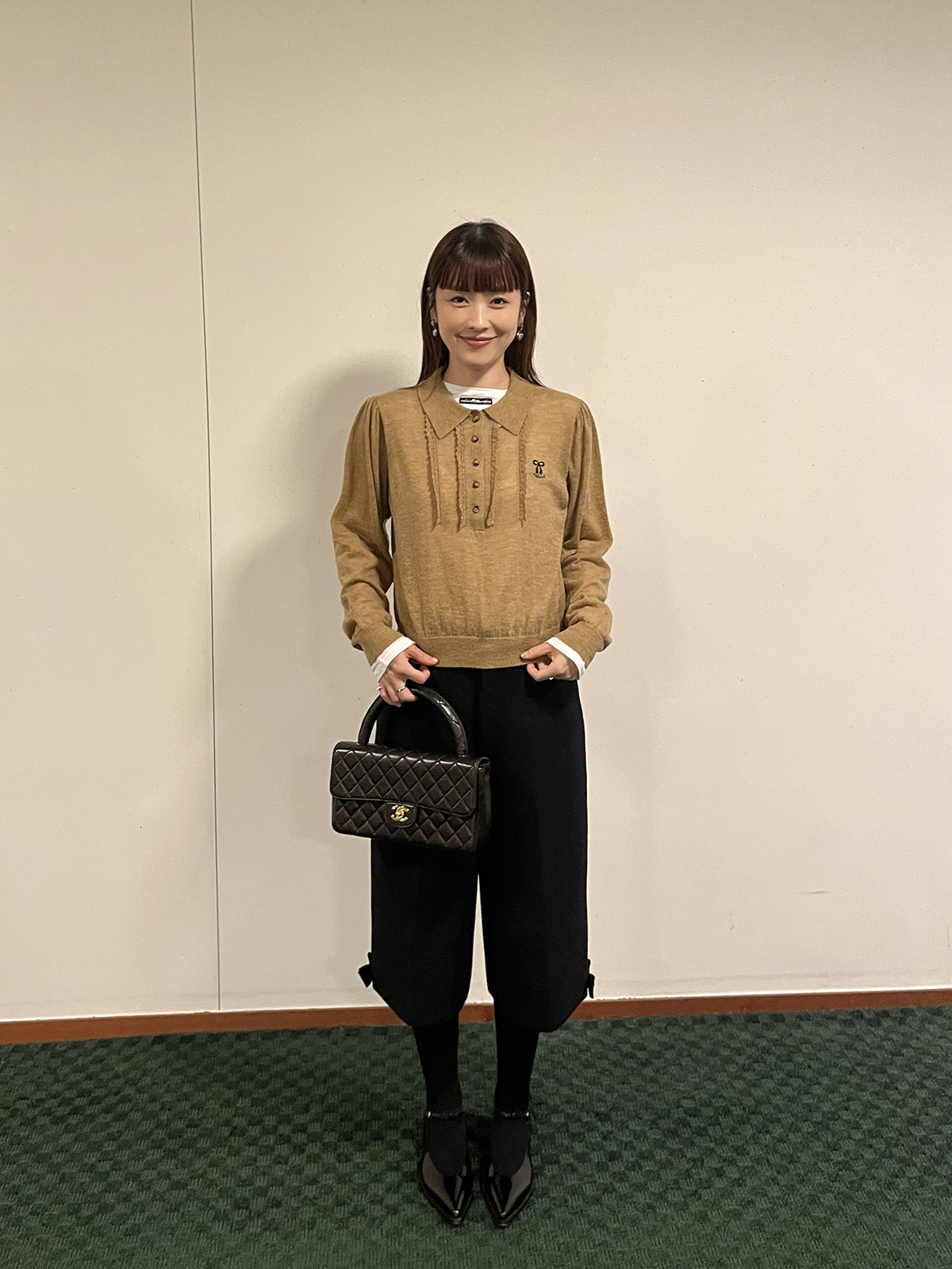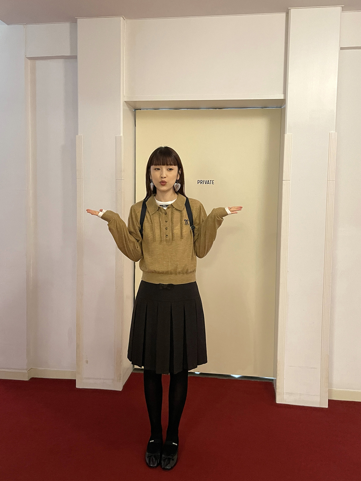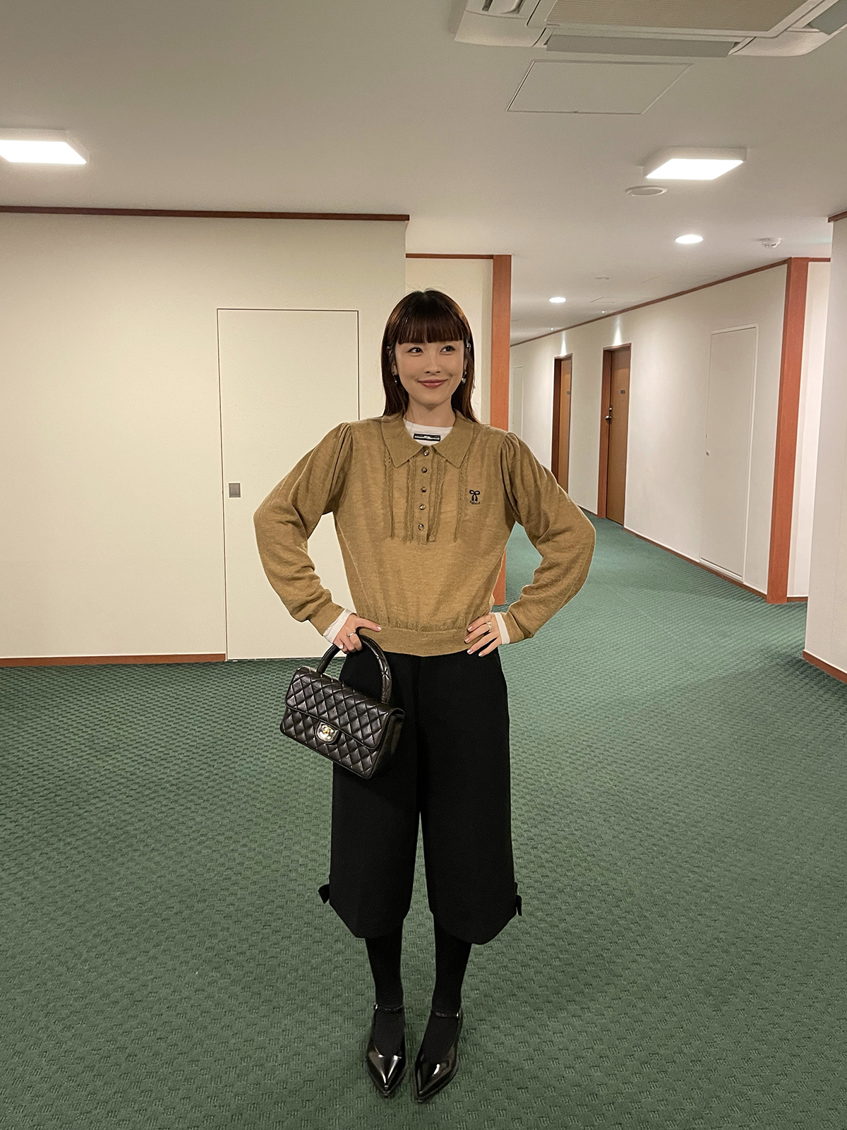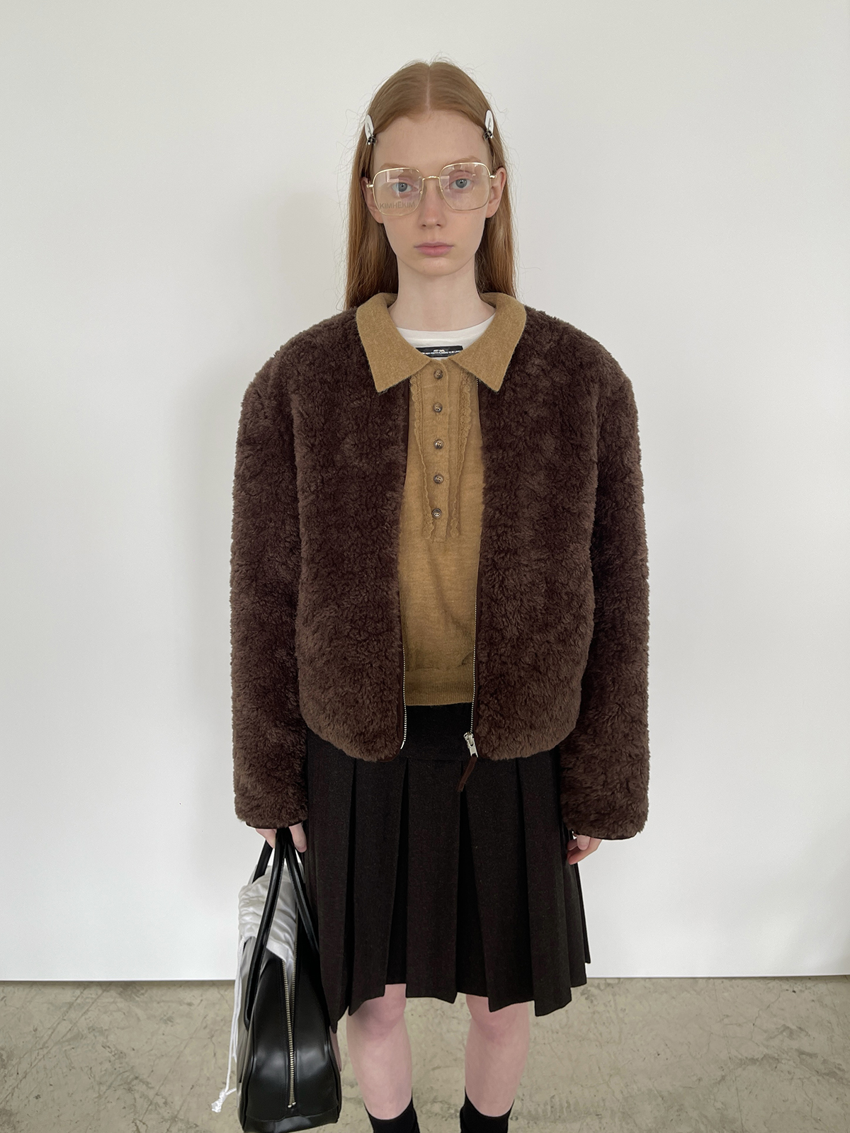 PFF GIRL Brown Puff Sleeve Knit Polo Shirt