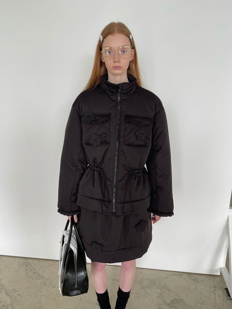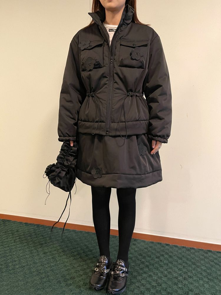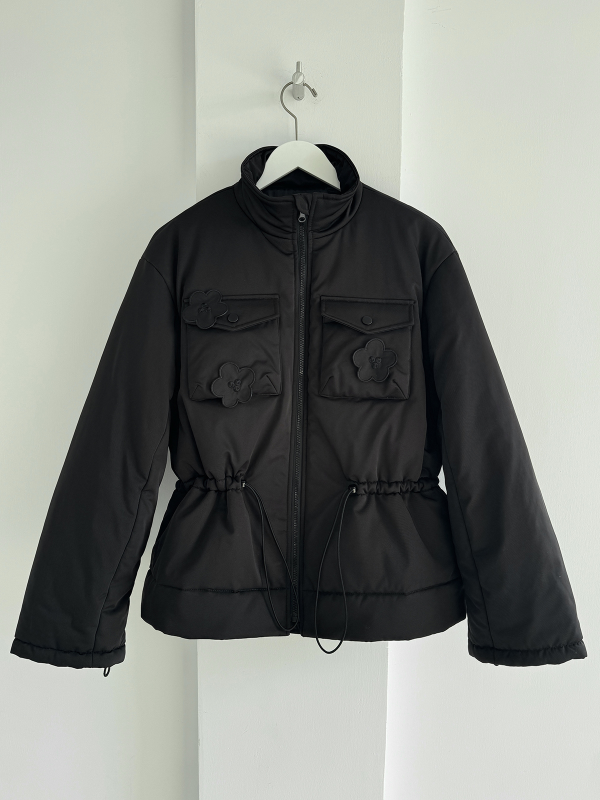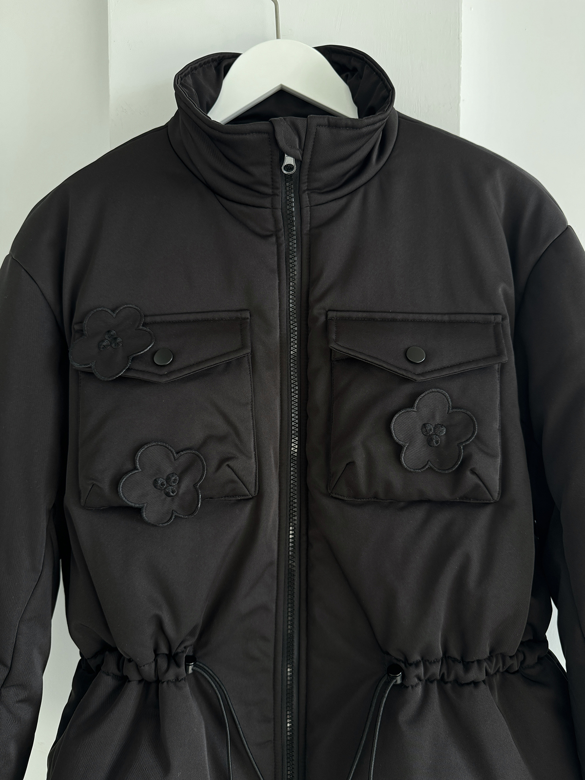 PFF GIRL Black Embroidered Quilted Drawstring Jacket
