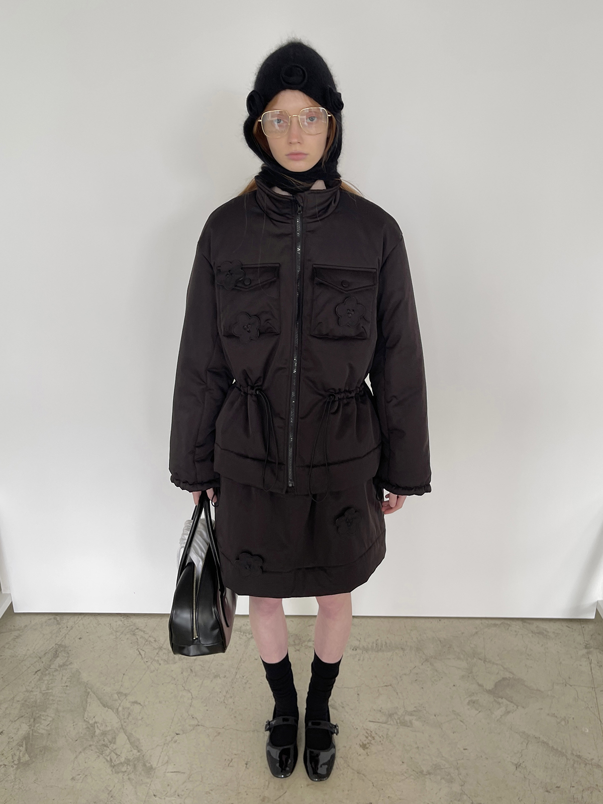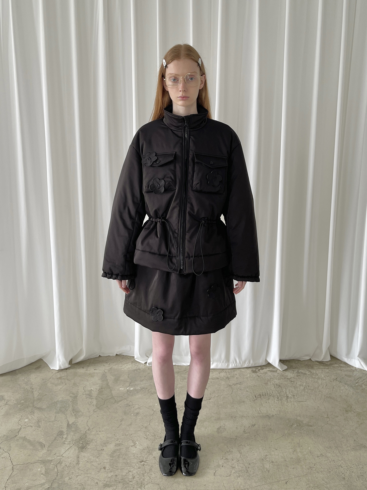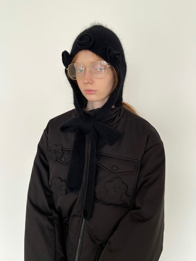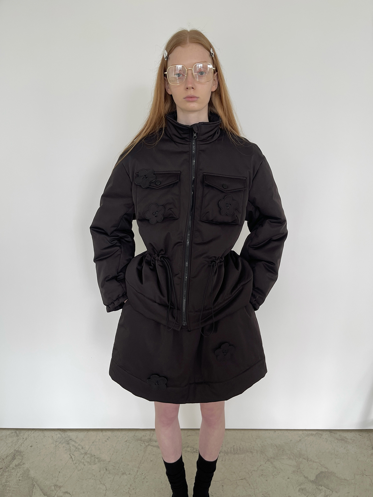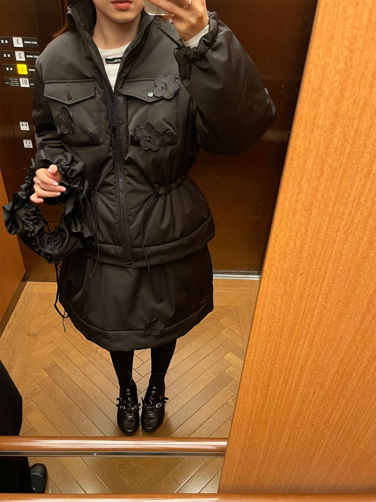PFF GIRL Black Embroidered Quilted Drawstring Jacket