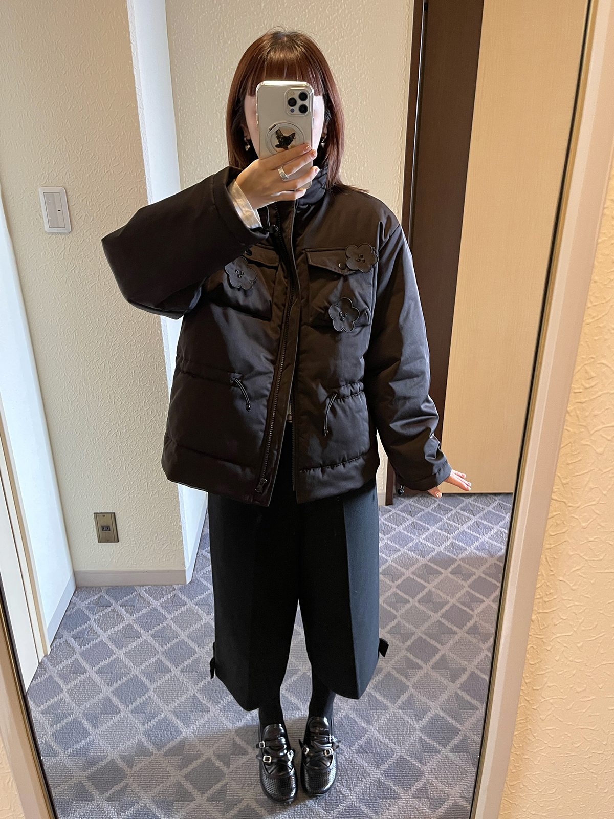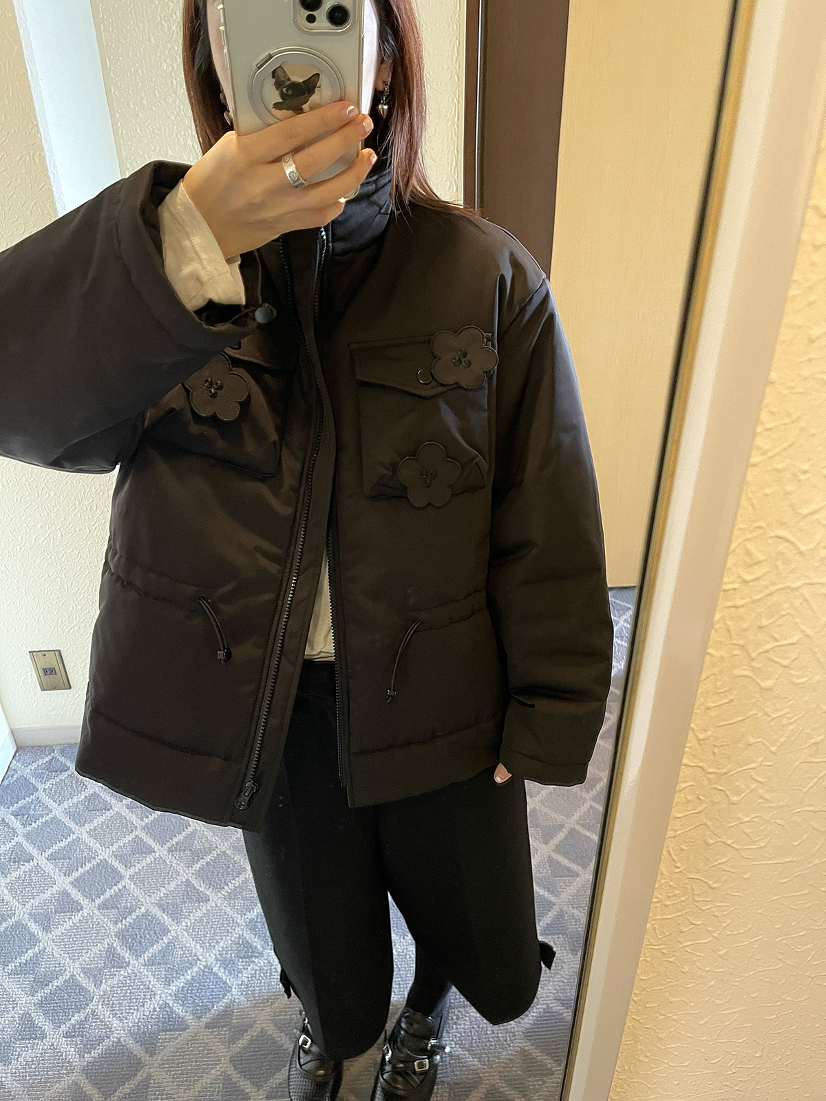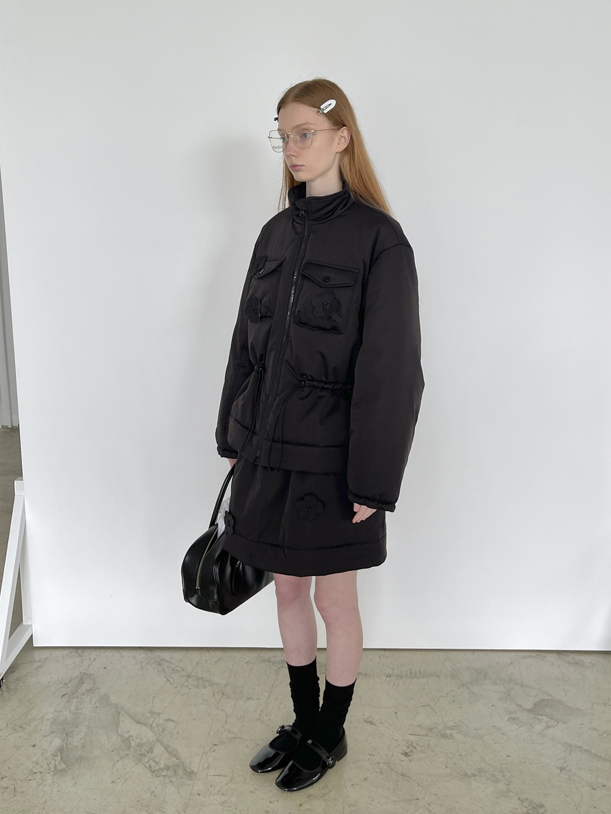 PFF GIRL Black Embroidered Quilted Drawstring Jacket