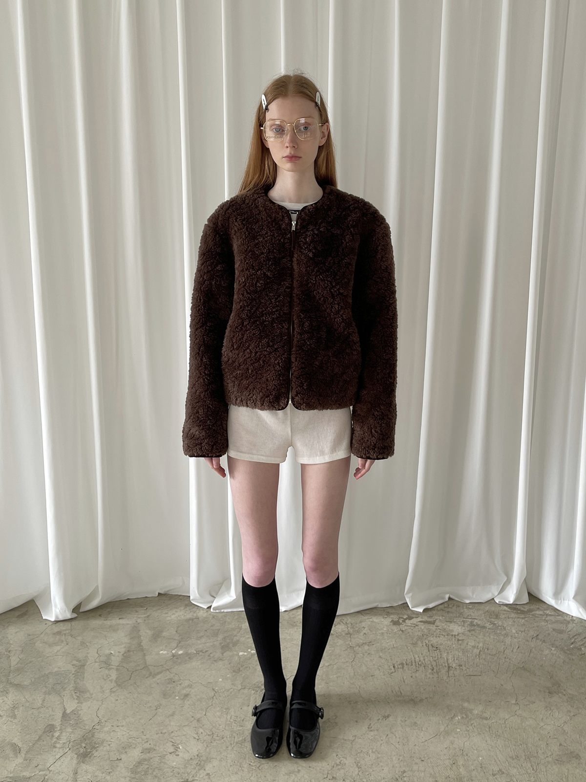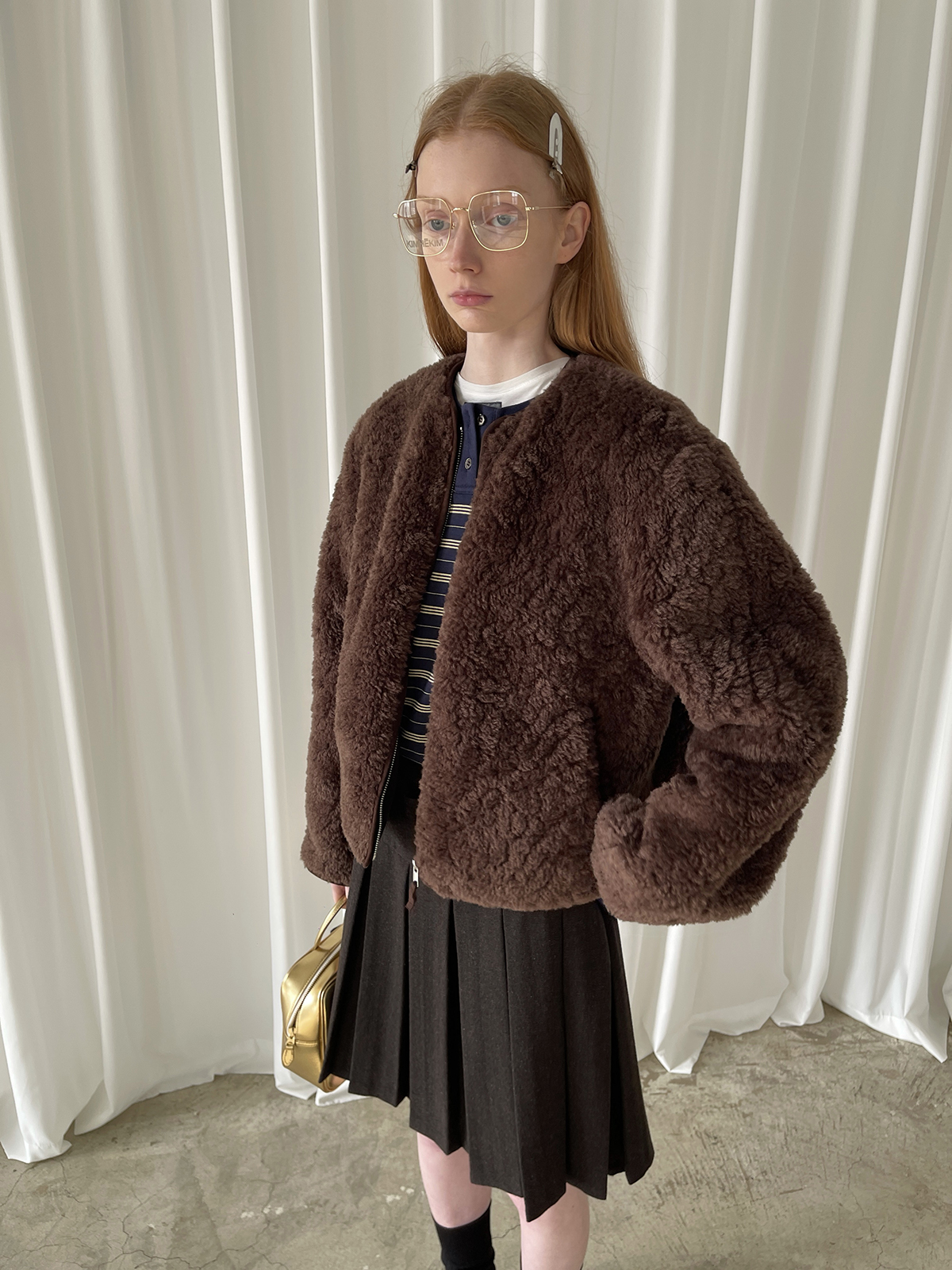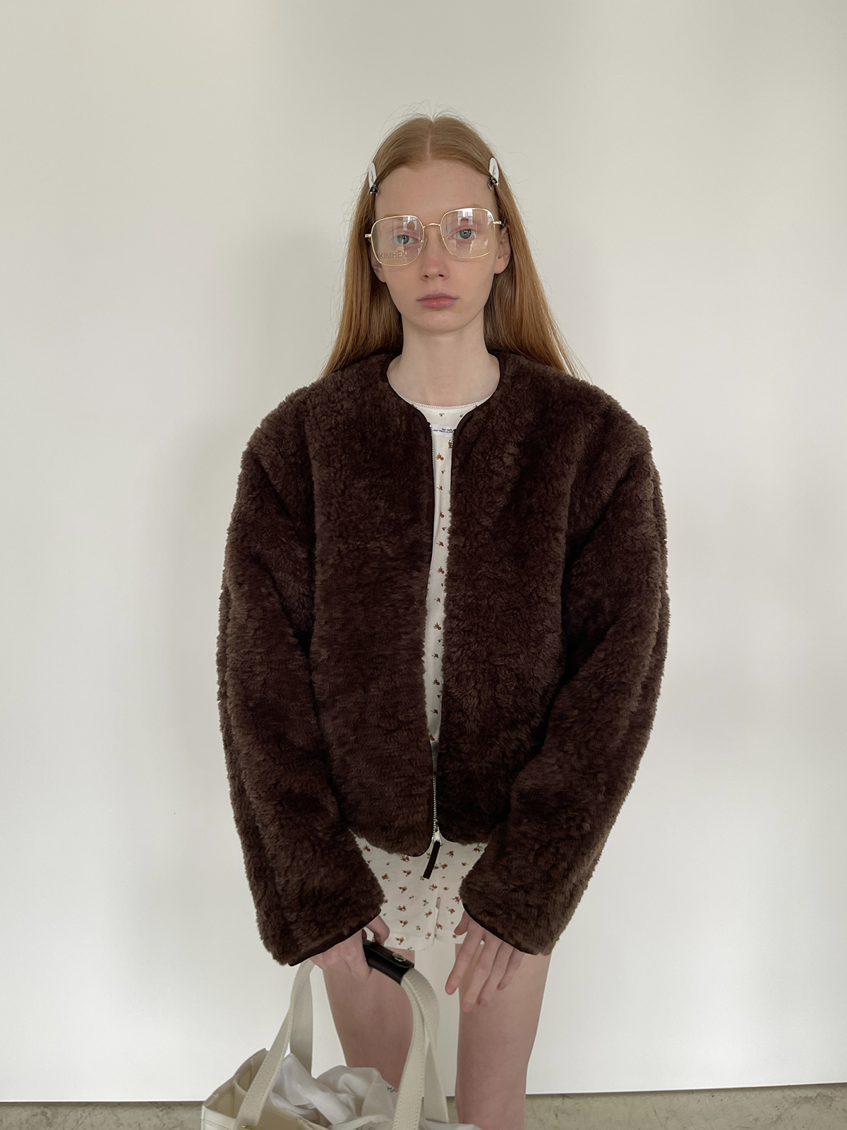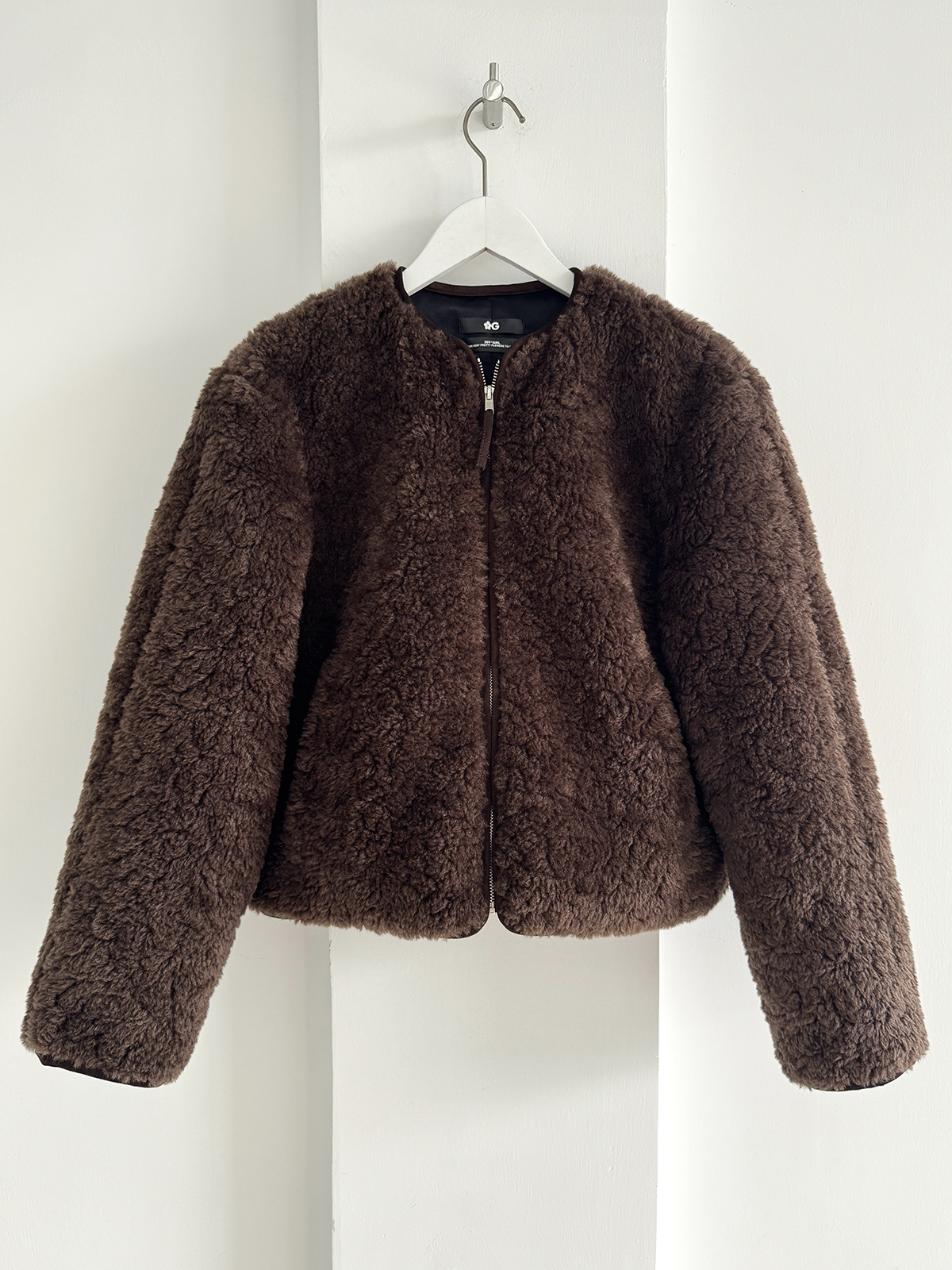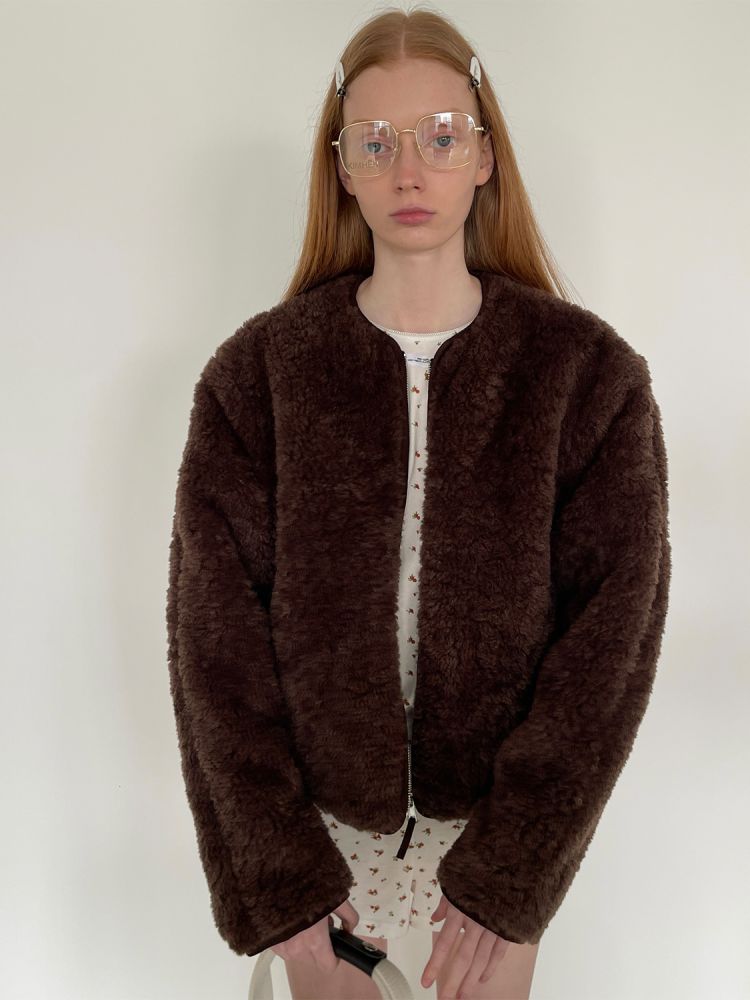 PFF GIRL Brown Faux Fur Crew Neck Zip-Up Jacket