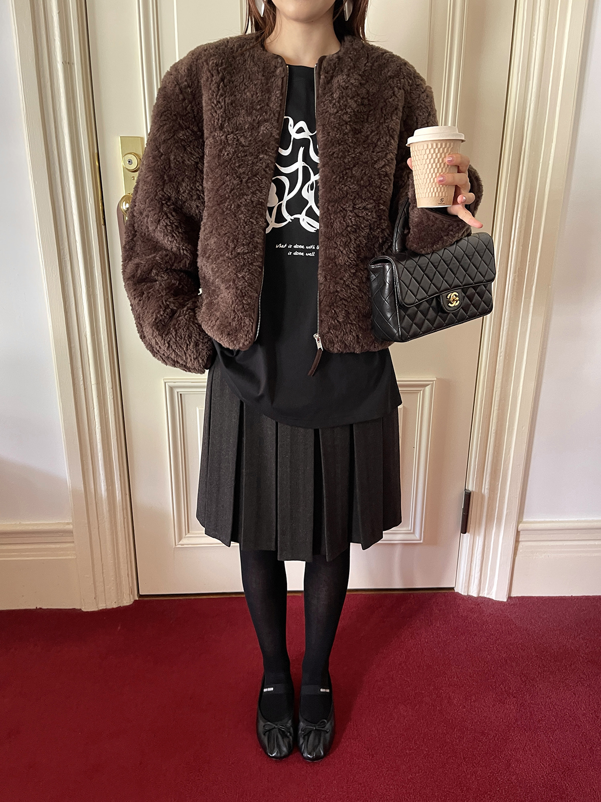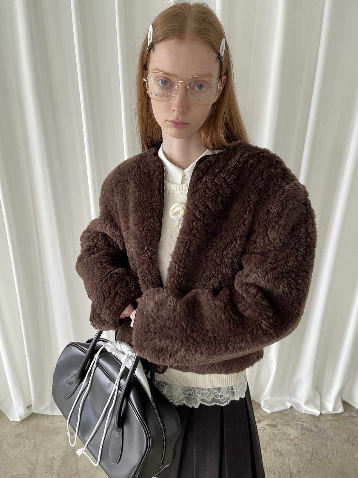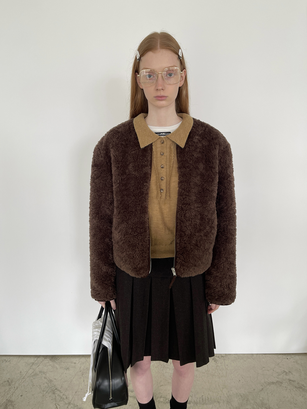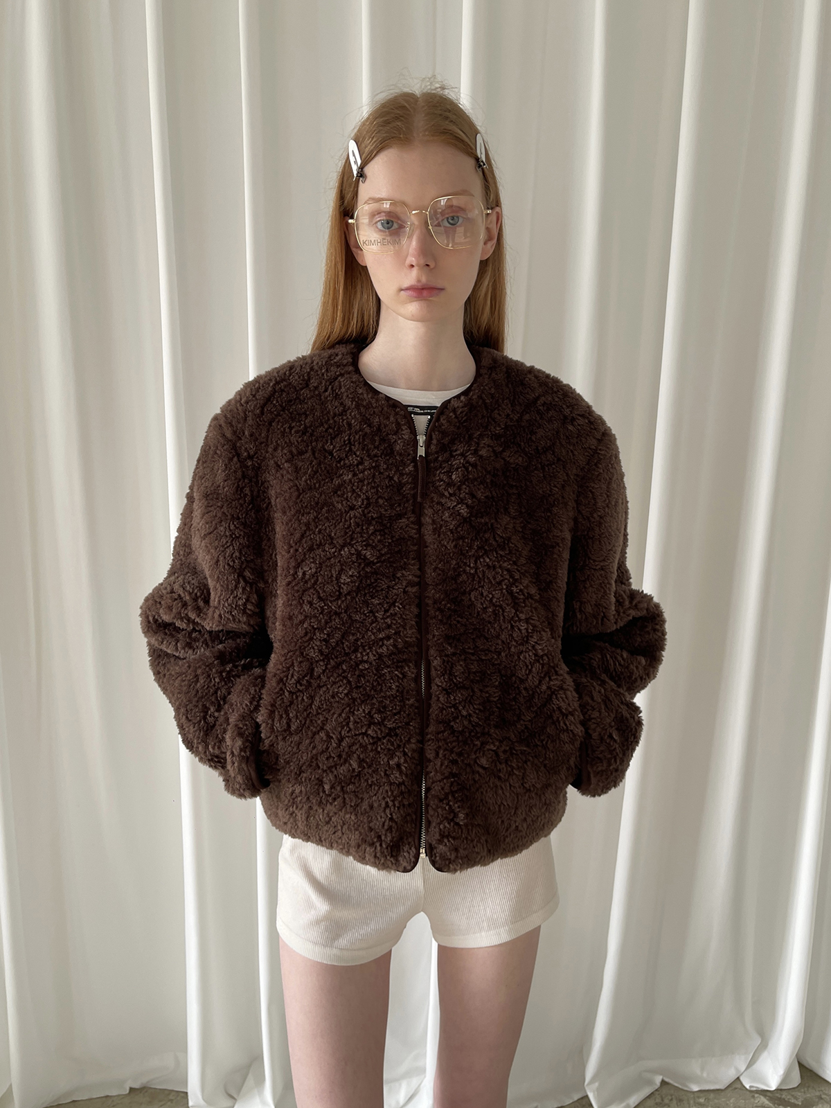 PFF GIRL Brown Faux Fur Crew Neck Zip-Up Jacket