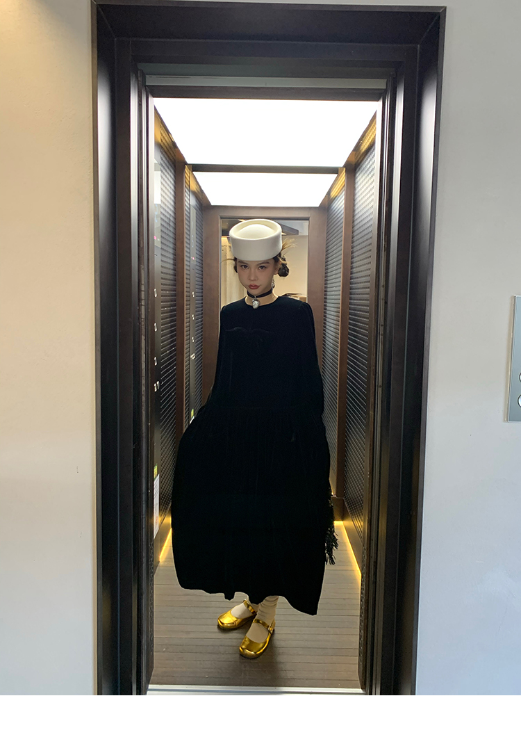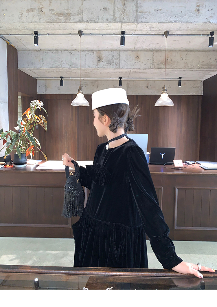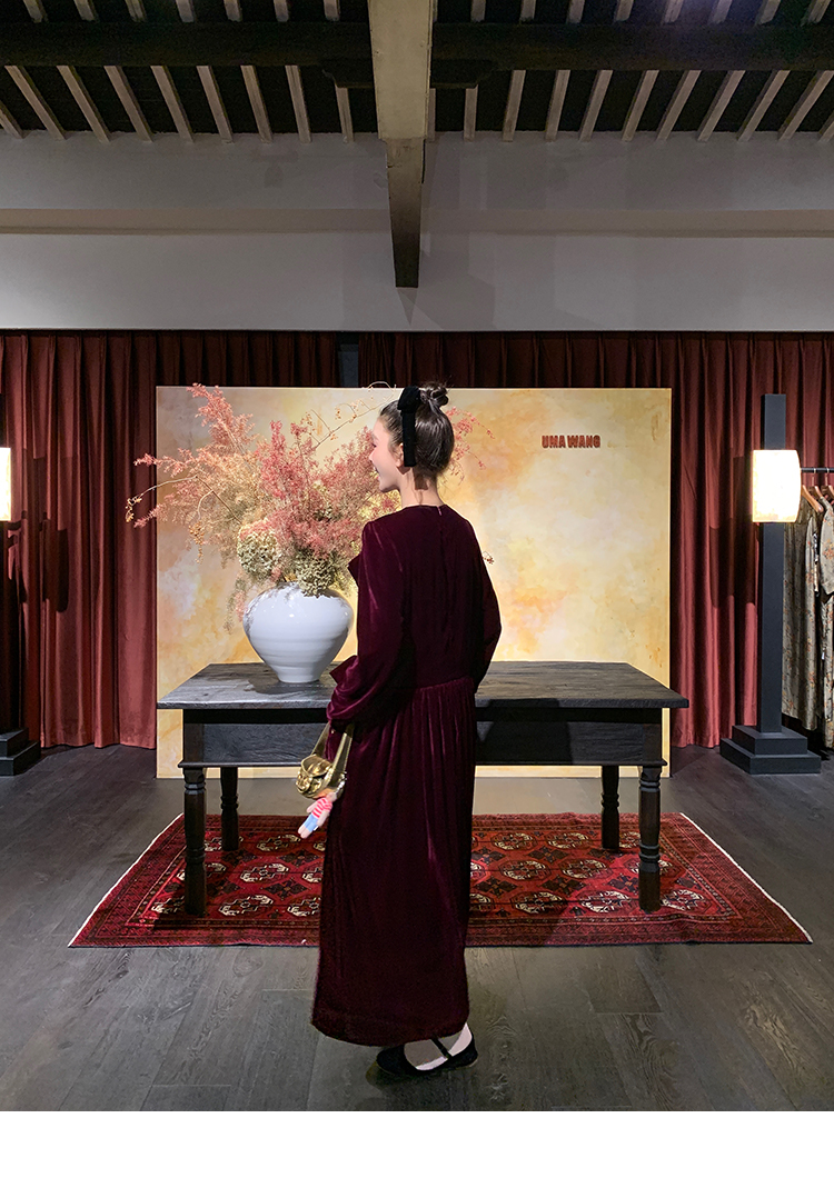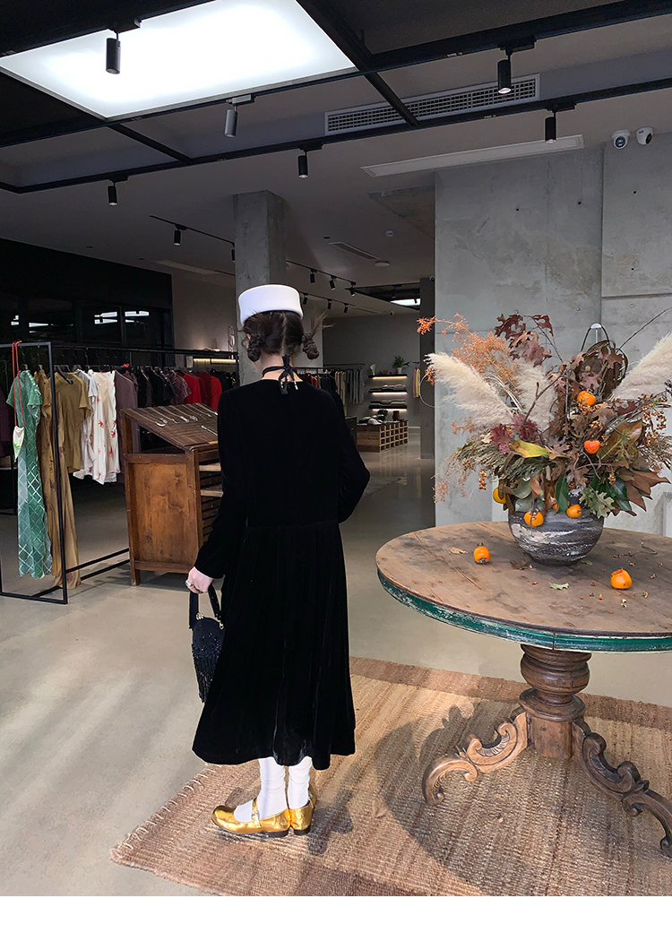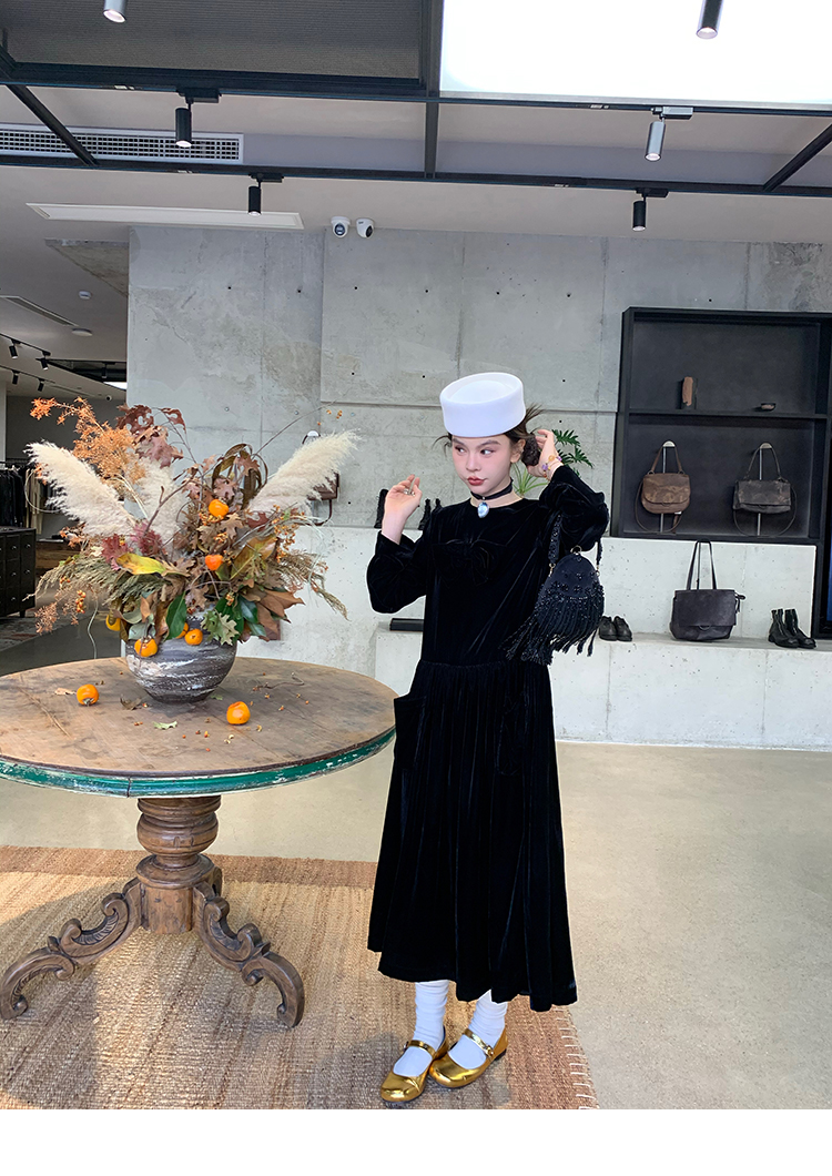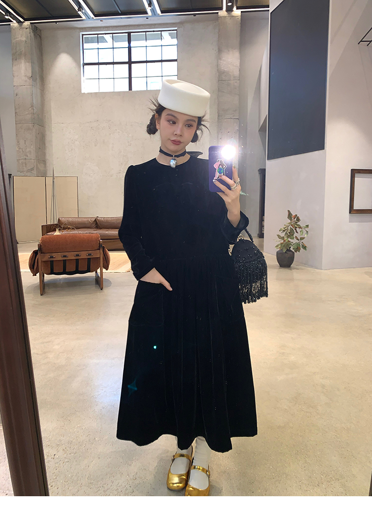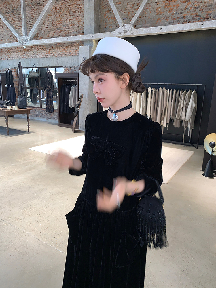 LRIB Handcrafted Bow Long-Sleeve Velvet Dress
