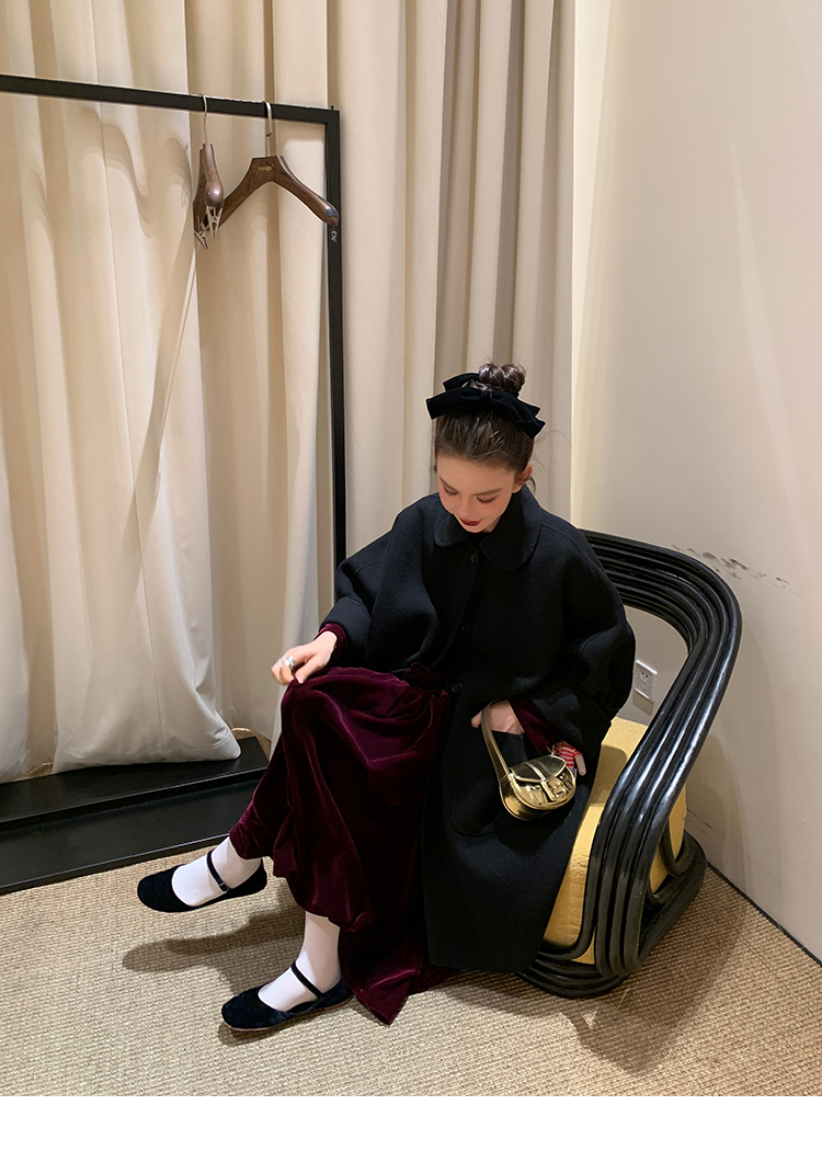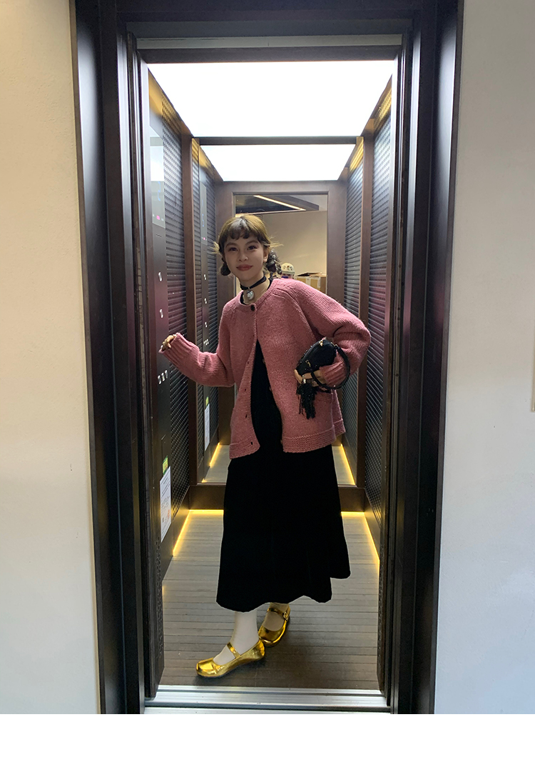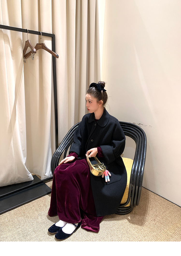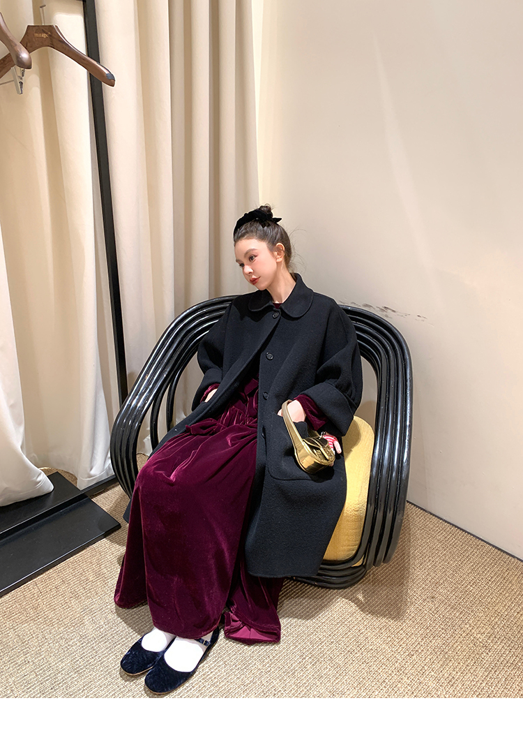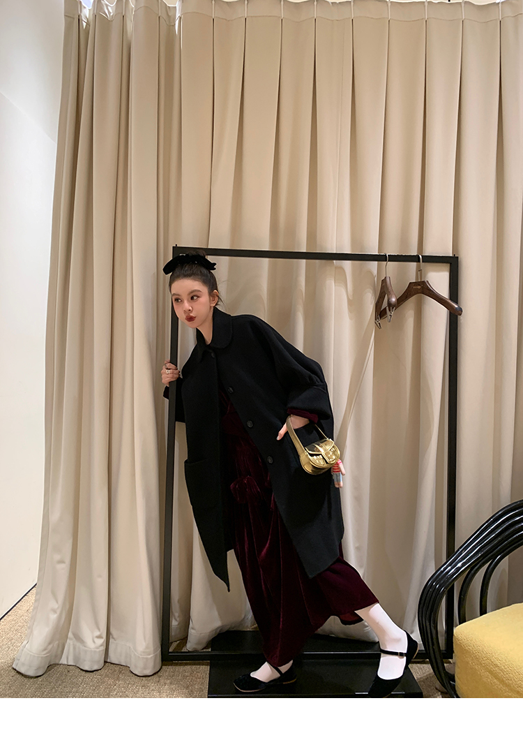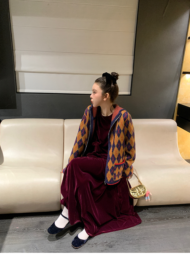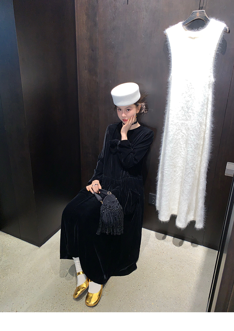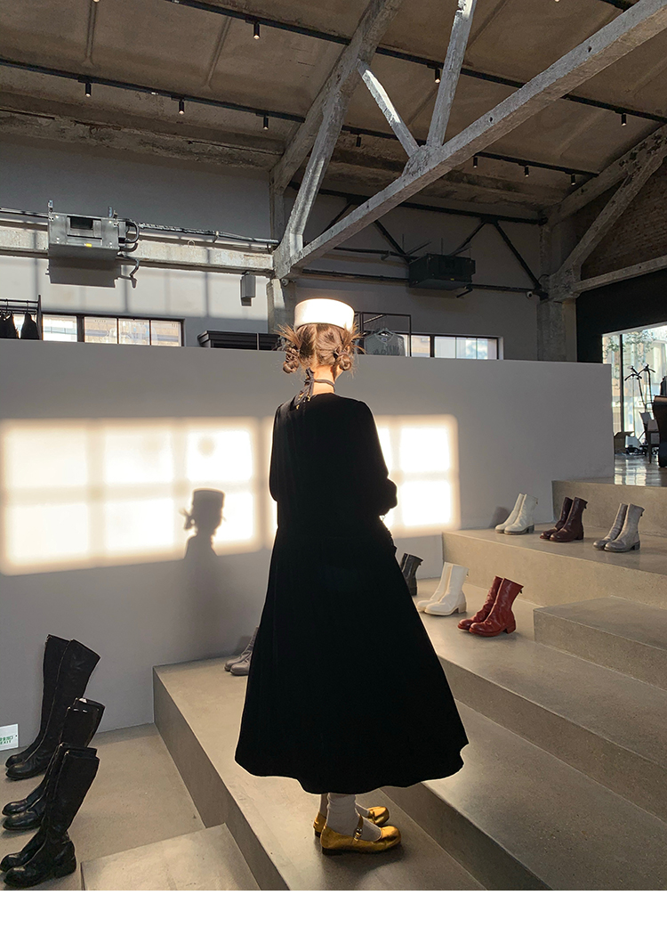 LRIB Handcrafted Bow Long-Sleeve Velvet Dress