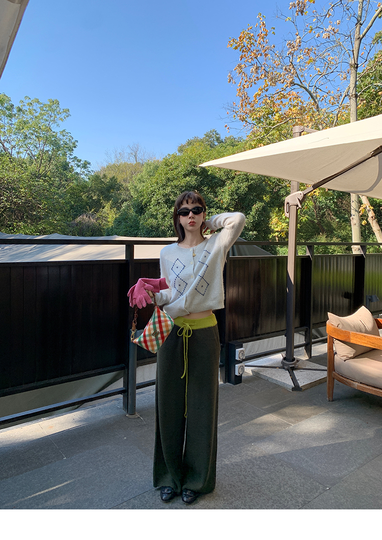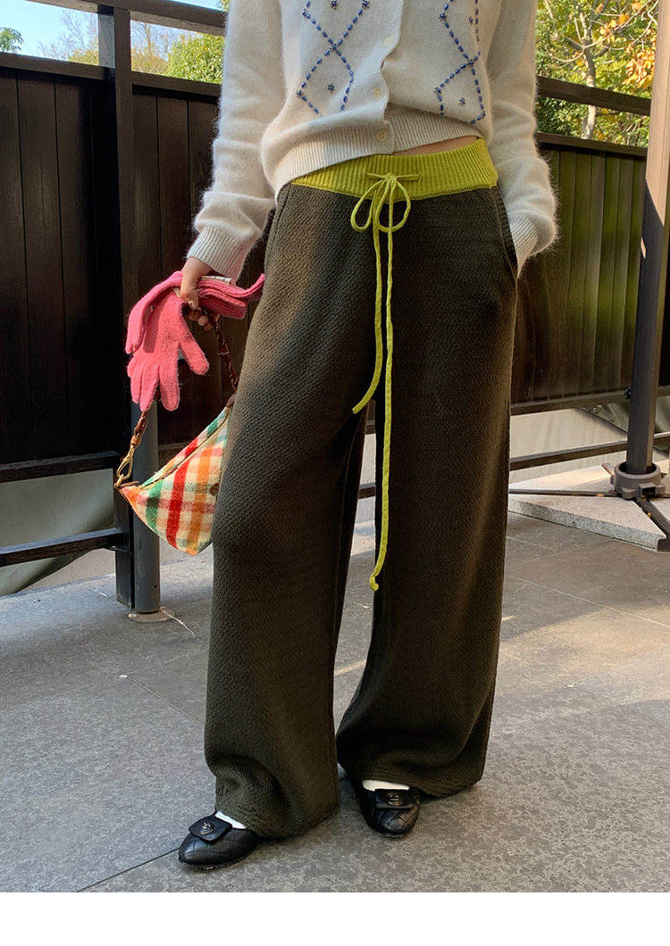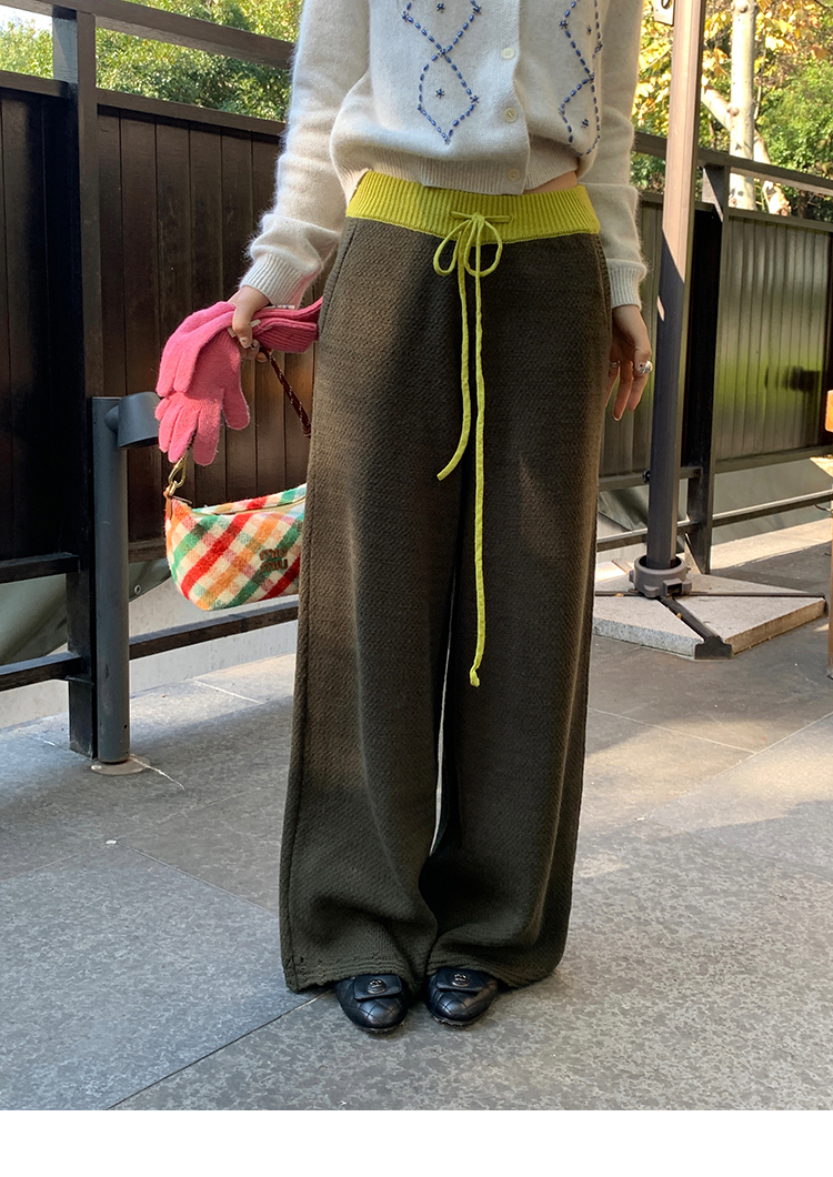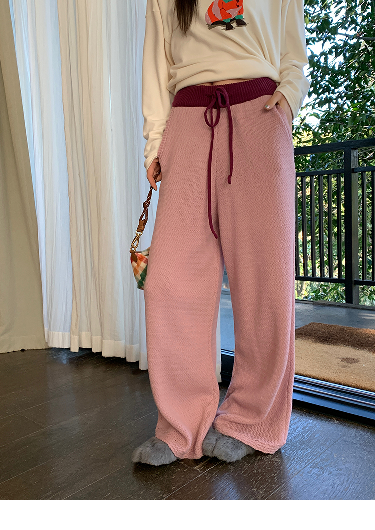 LRIB Colorful Relaxed Color Block Drawstring Waist Wool Knit Pants