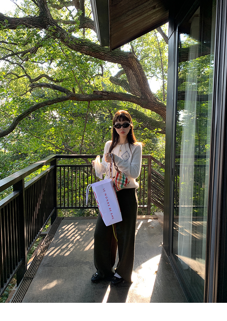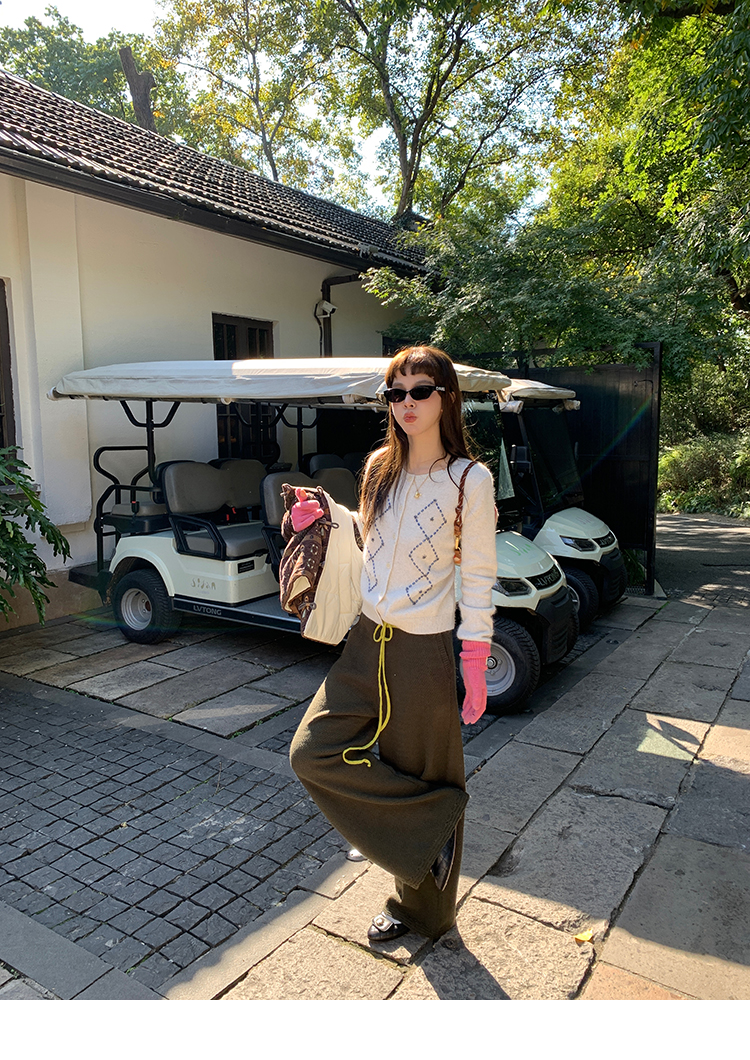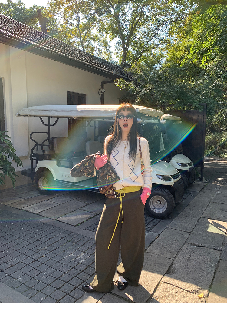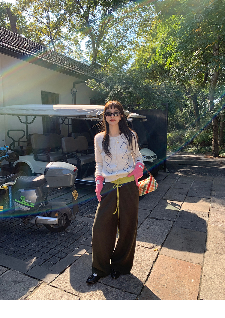 LRIB Colorful Relaxed Color Block Drawstring Waist Wool Knit Pants