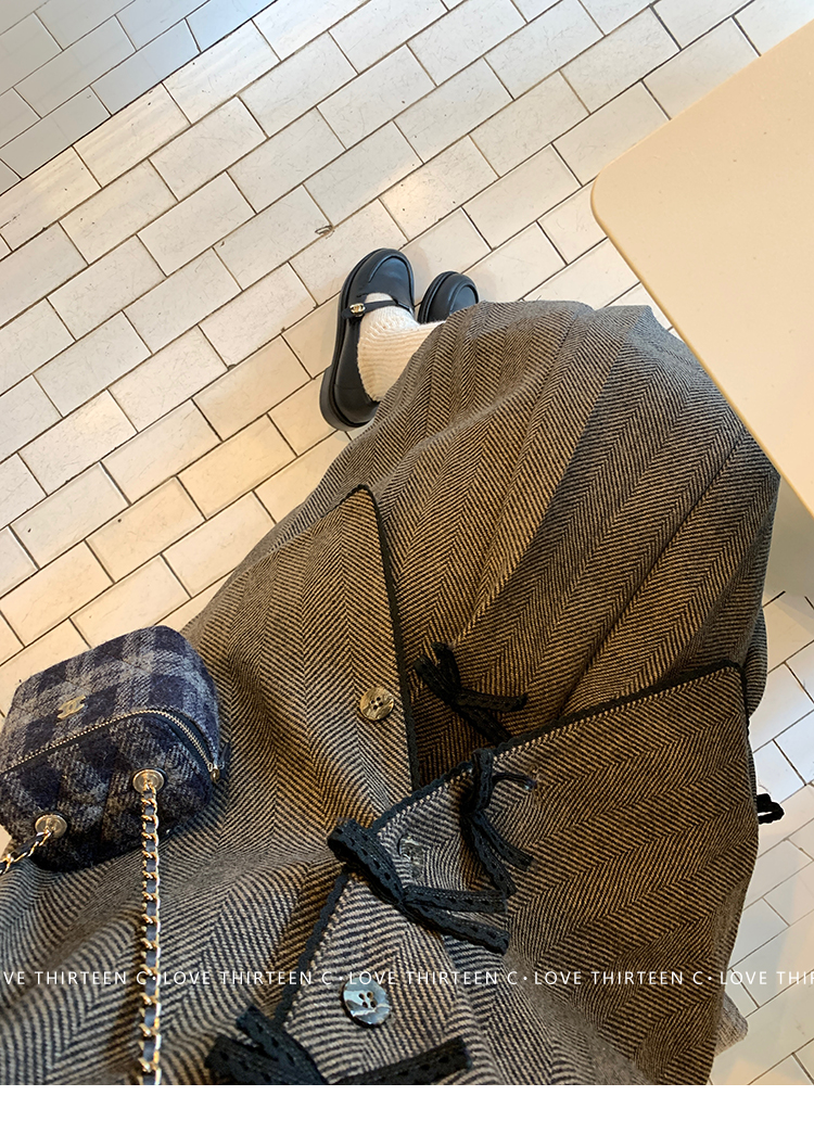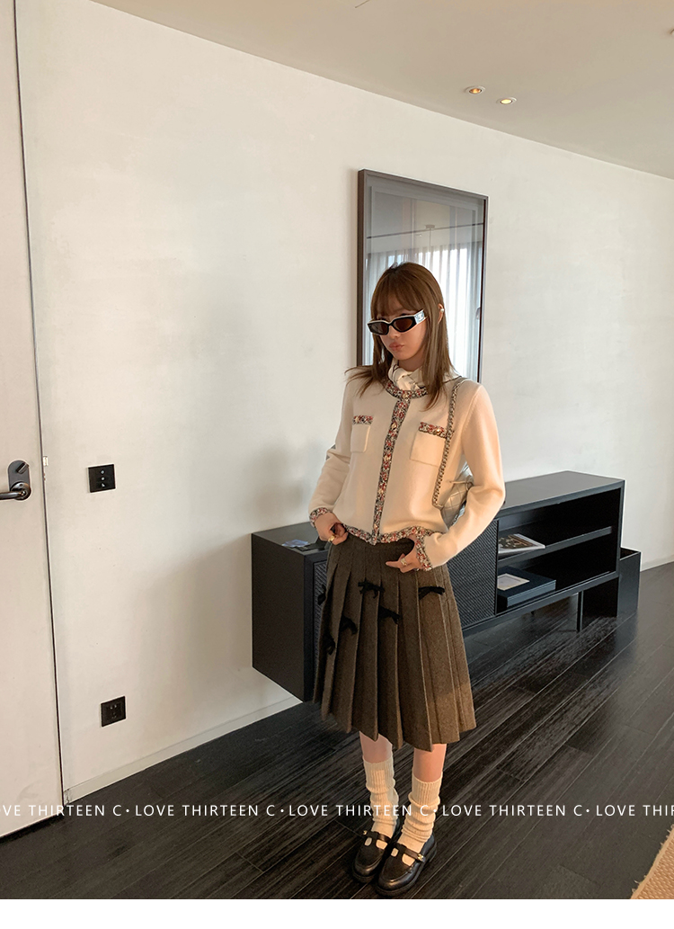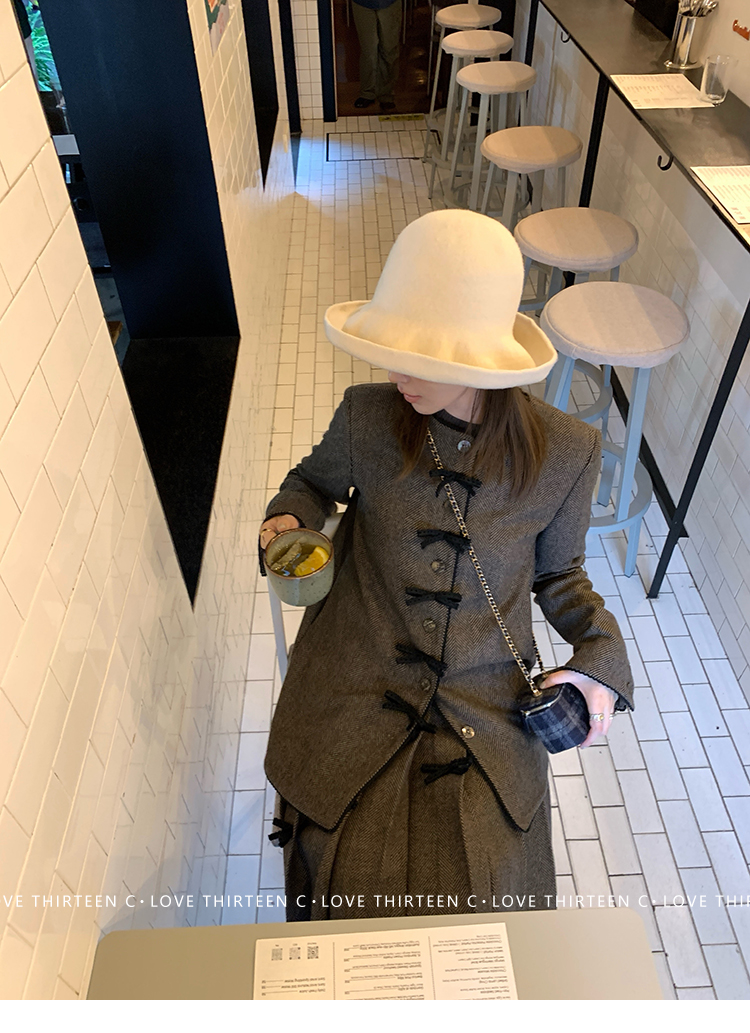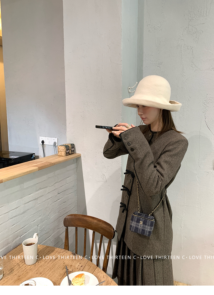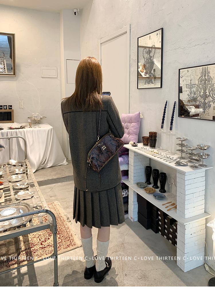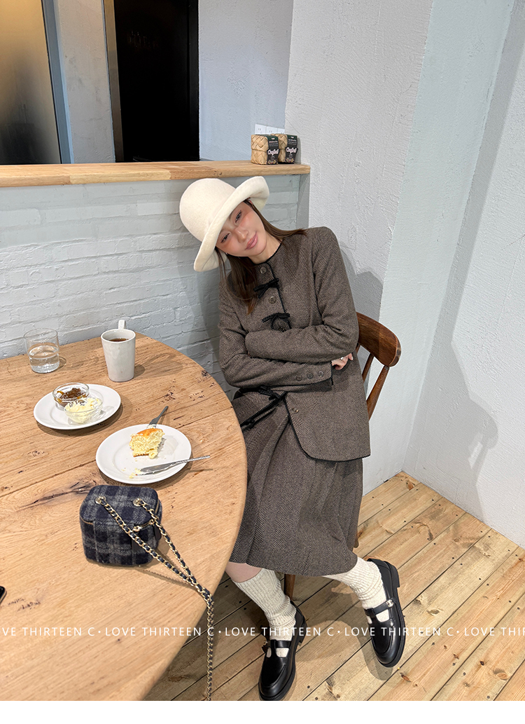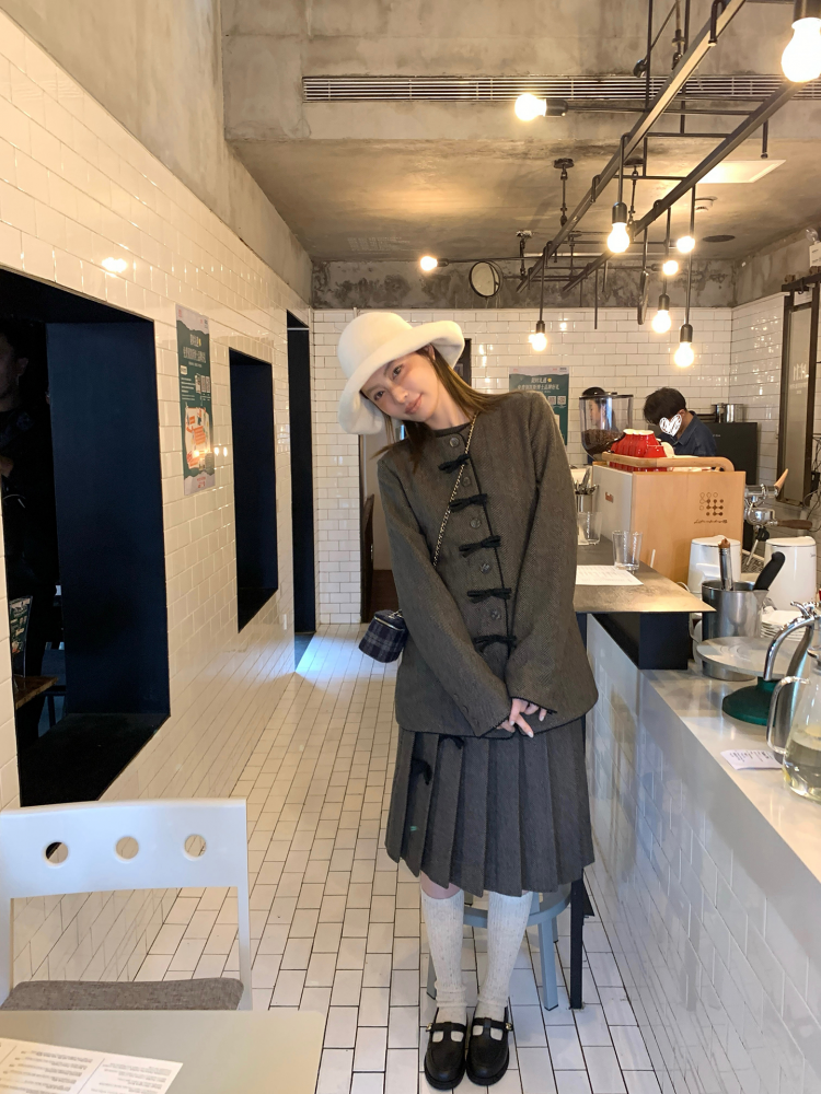 TC Handmade bow tie vintage wool coat and pleated half skirt