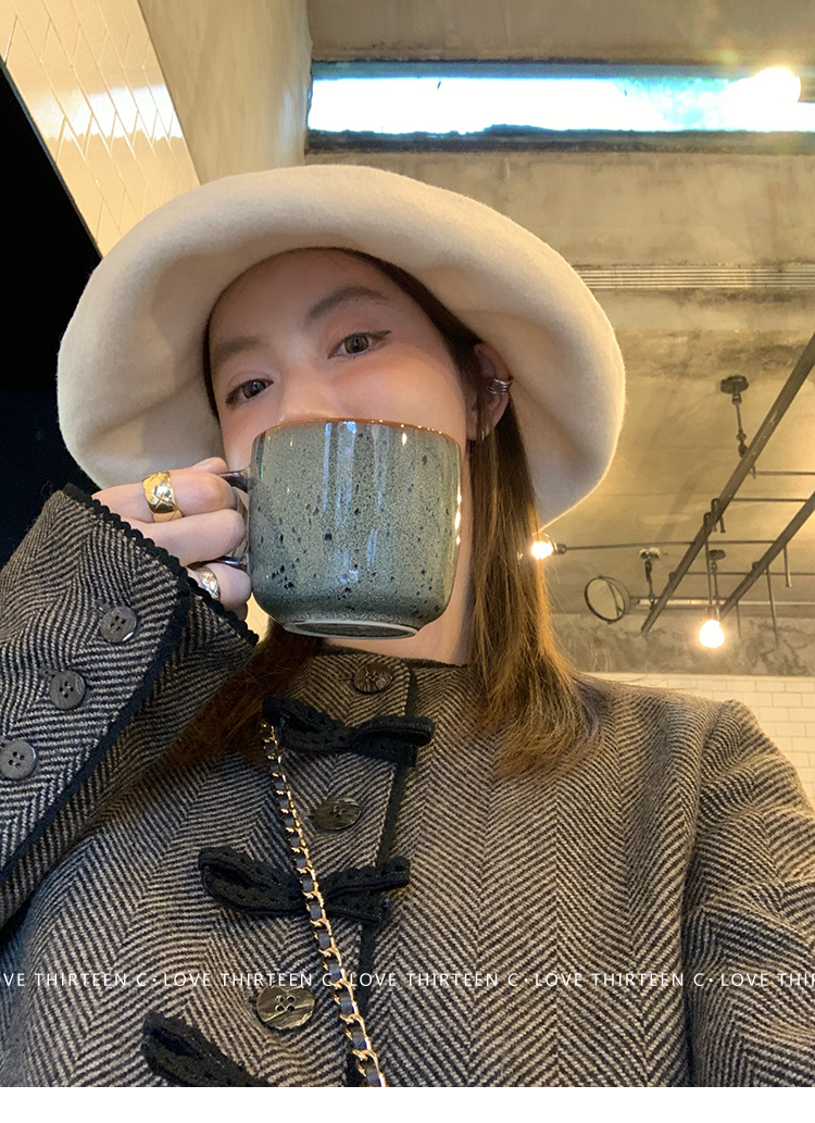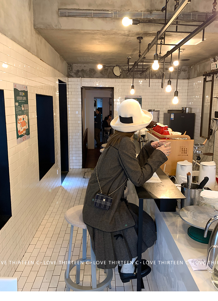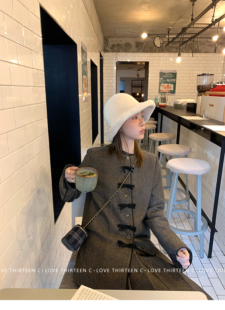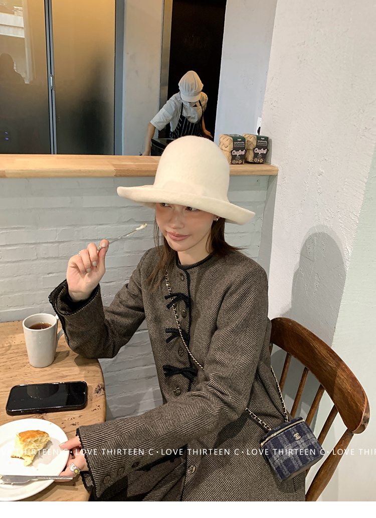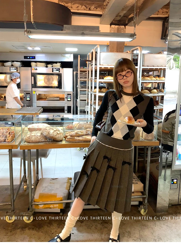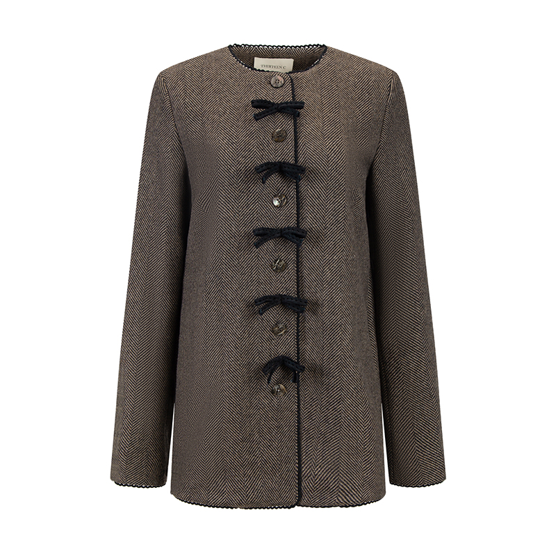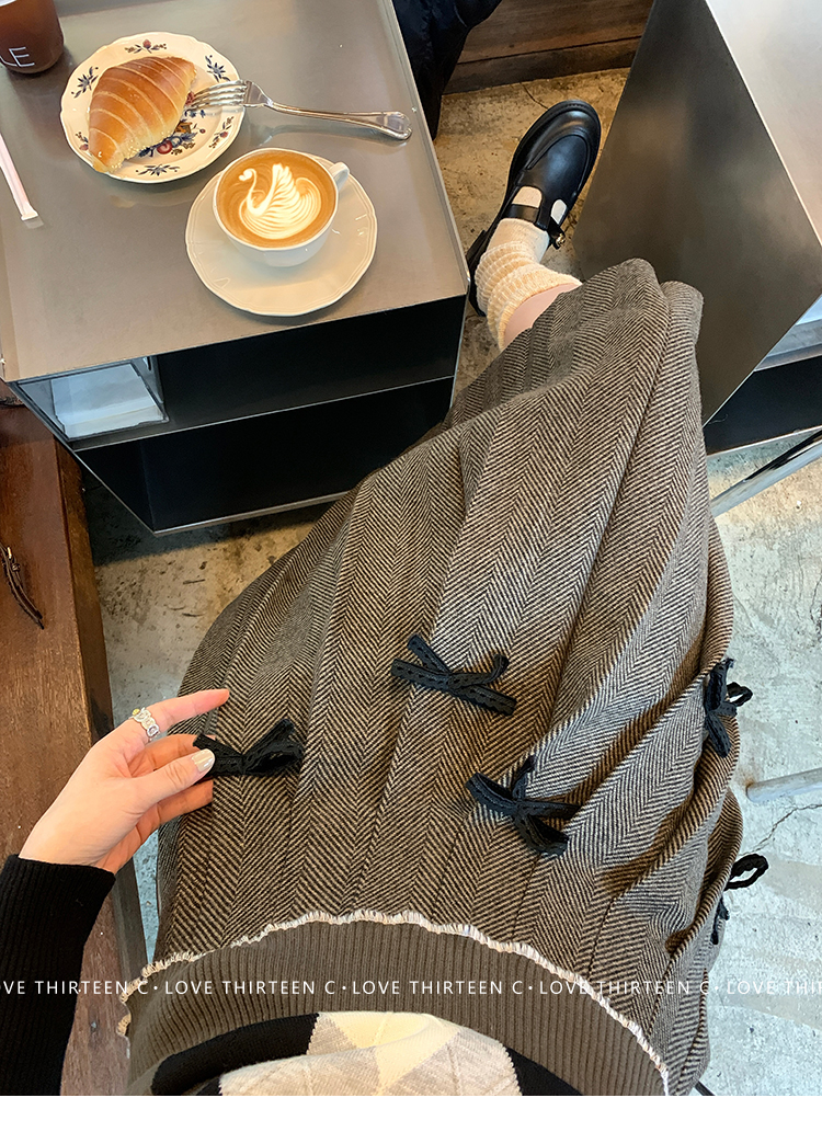 TC Handmade bow tie vintage wool coat and pleated half skirt