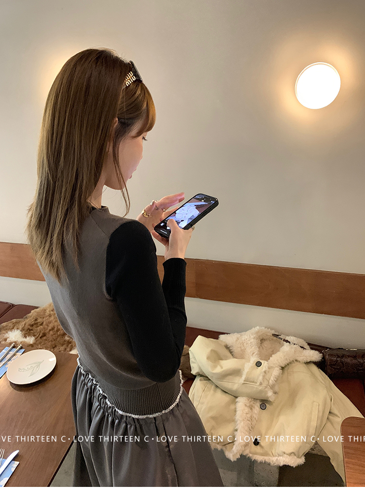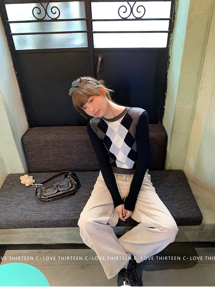 TC short wool sweater round neck knitted top