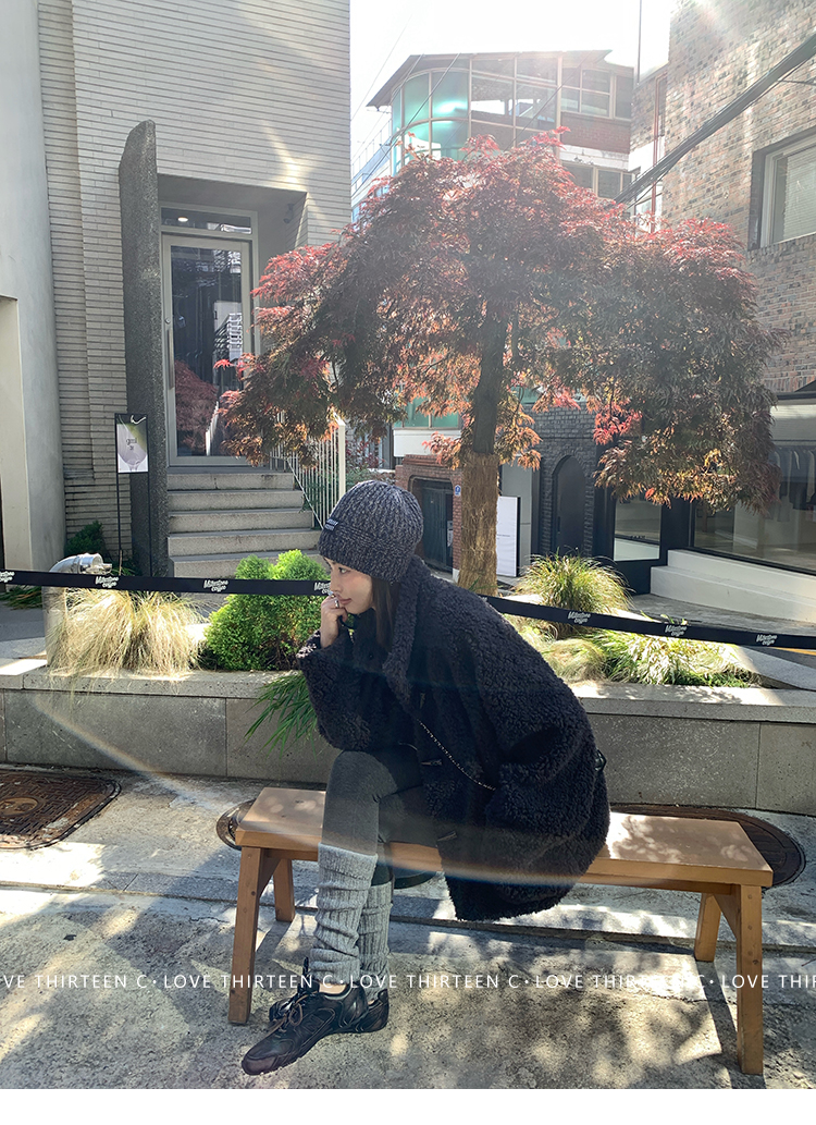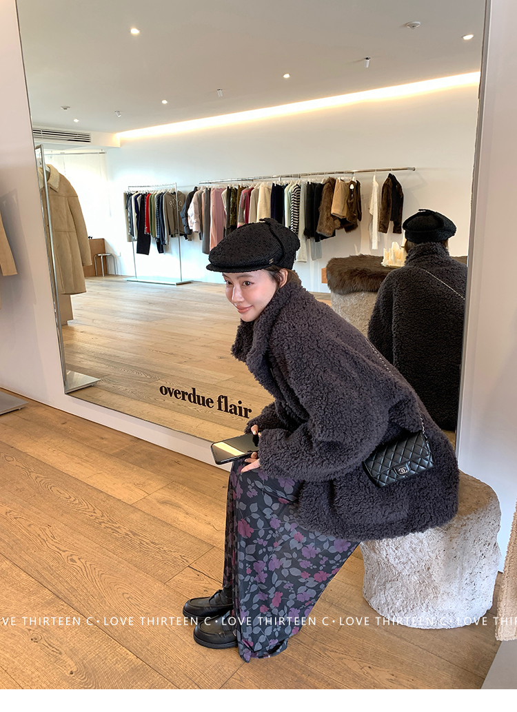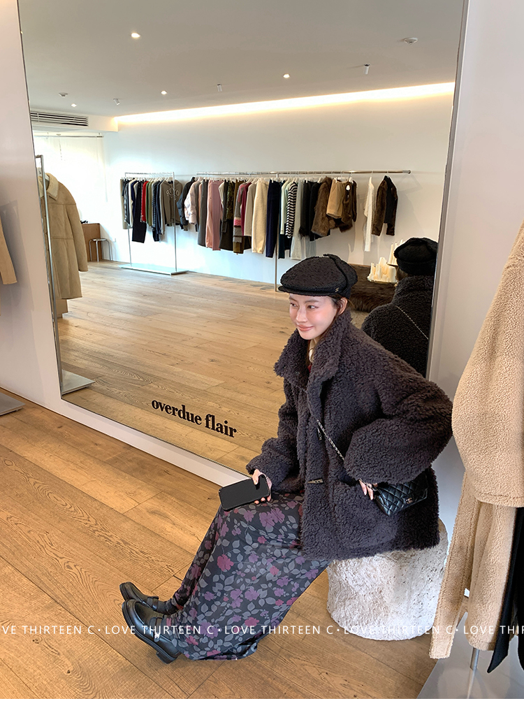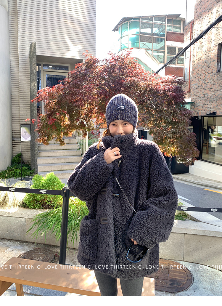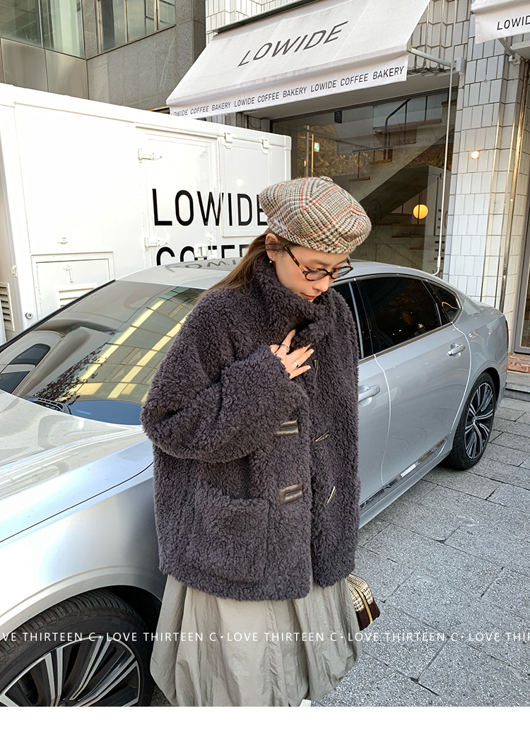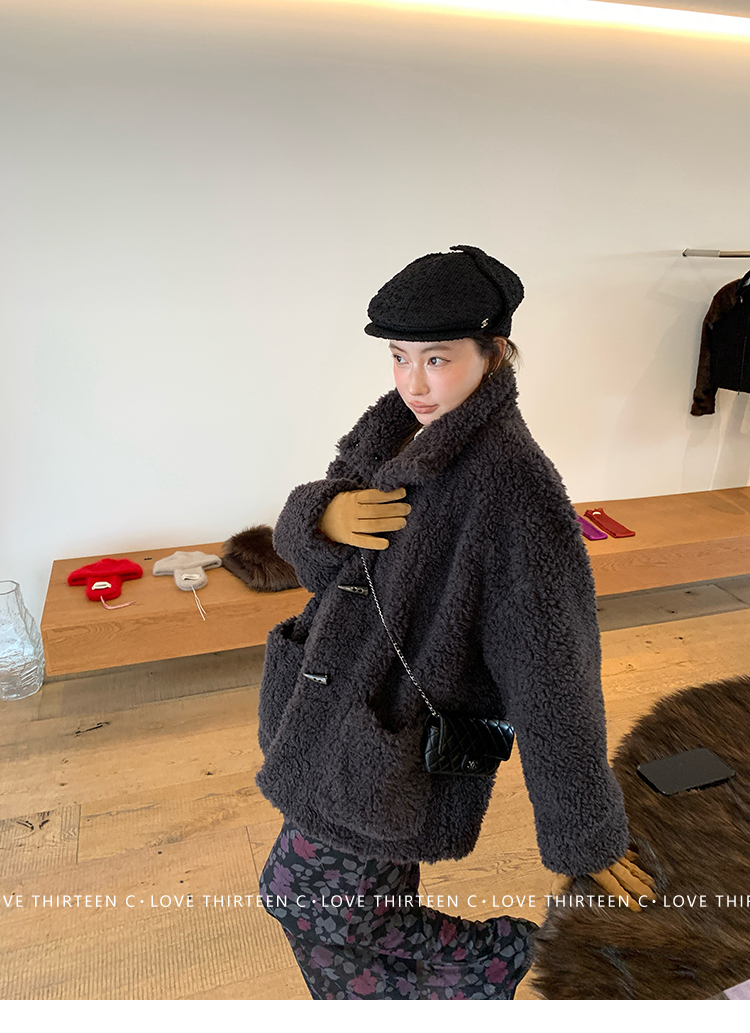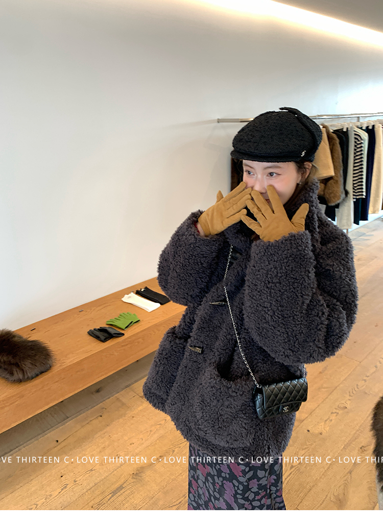 TC Hokkaido Gray-Violet Horned Lamb Eco-Friendly Fur Coat