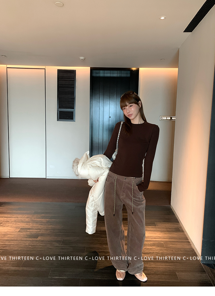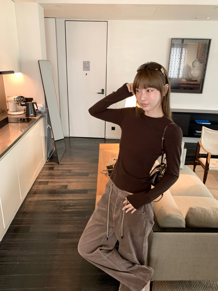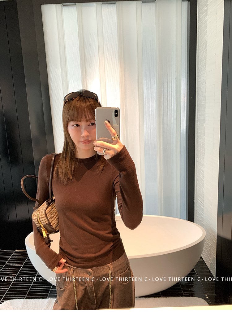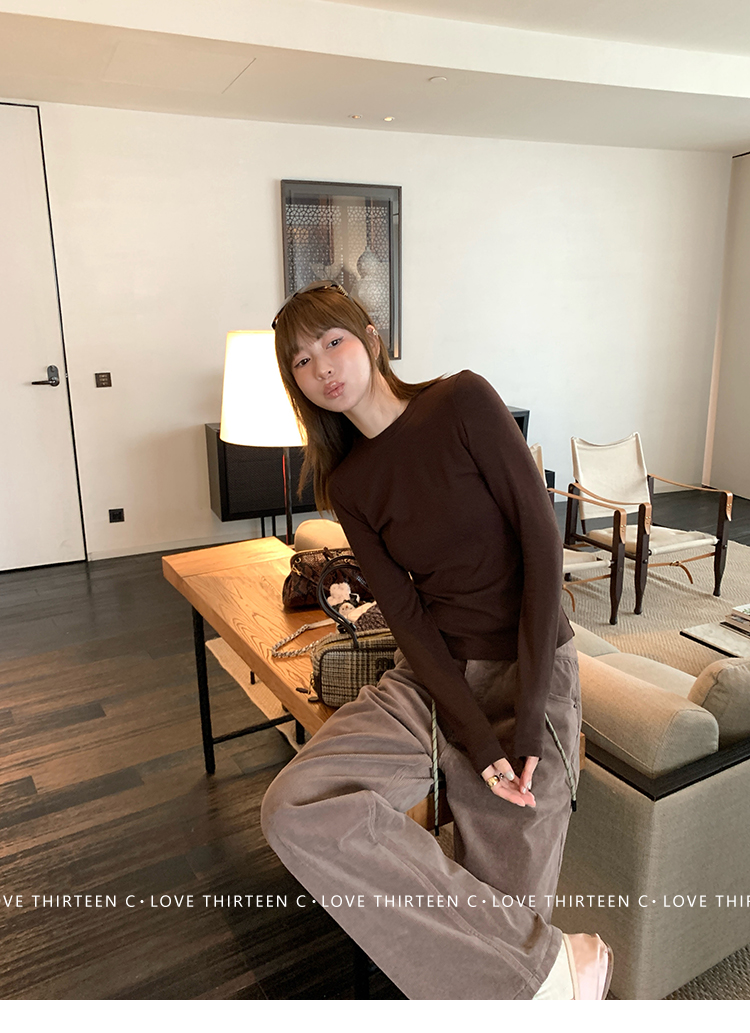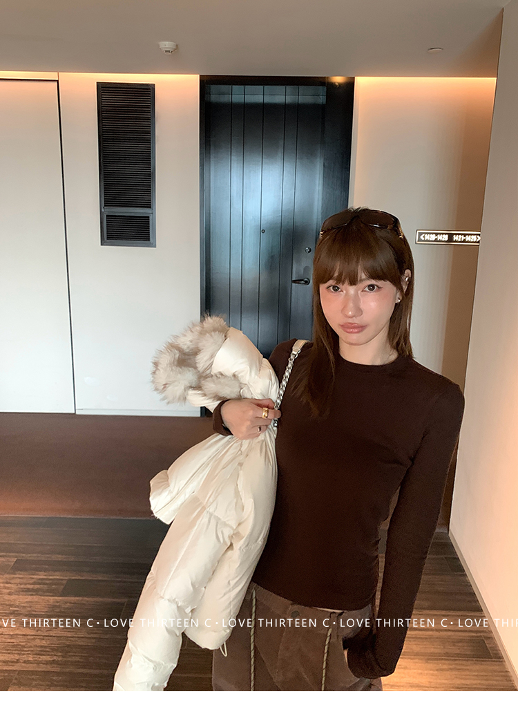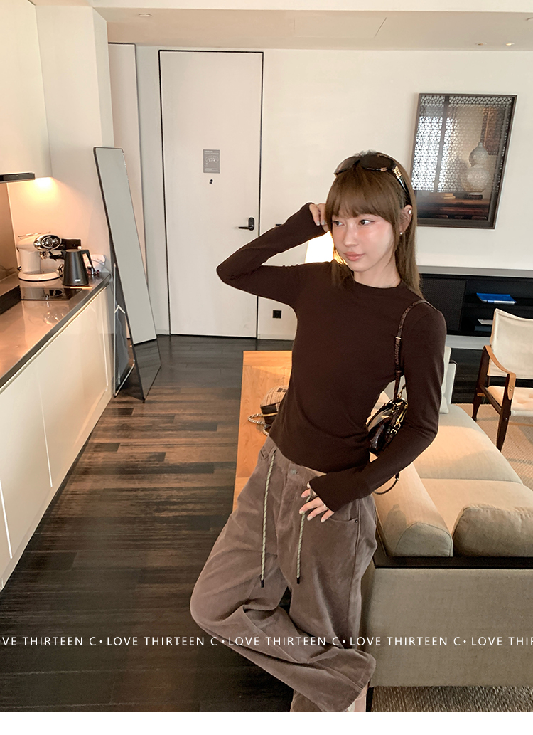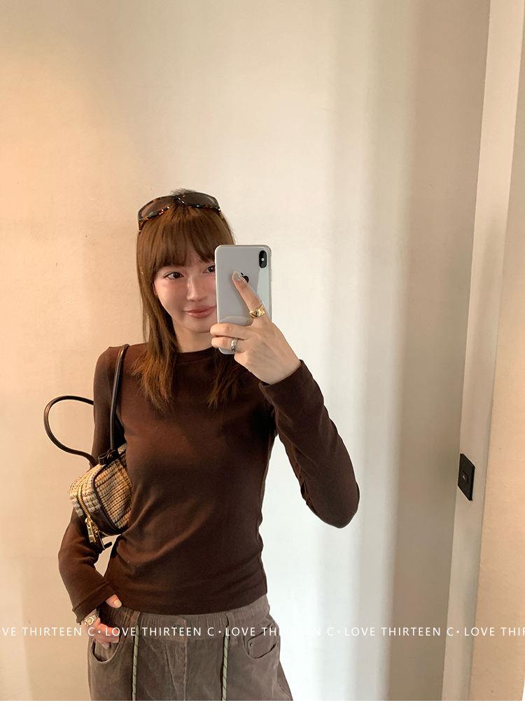 TC Warm Velvet Long-Sleeve Base Solid Color Slimming Top