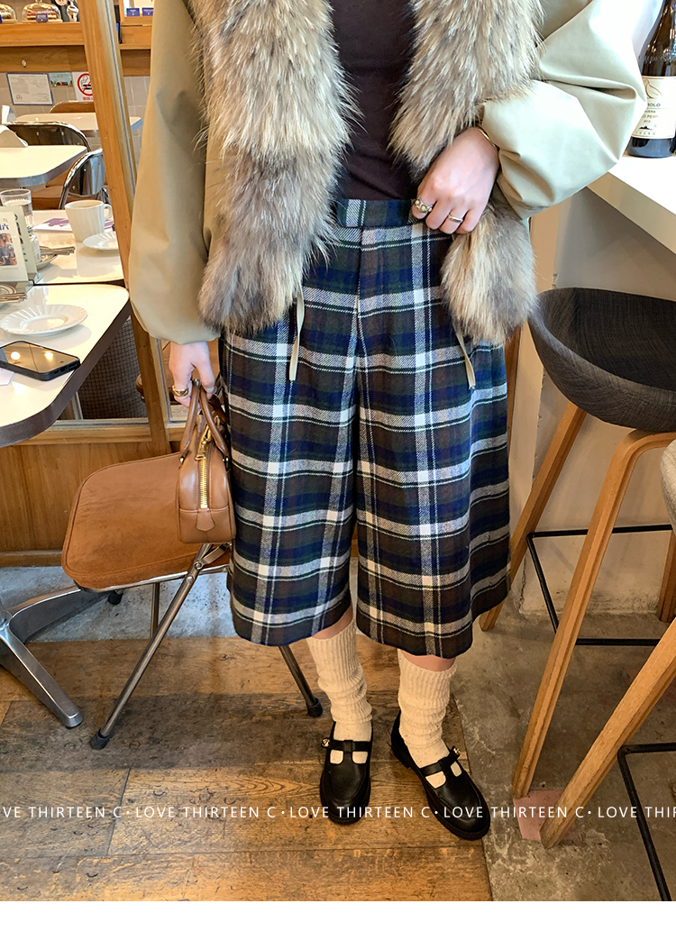 TC Vintage British plaid wool wide-leg pants