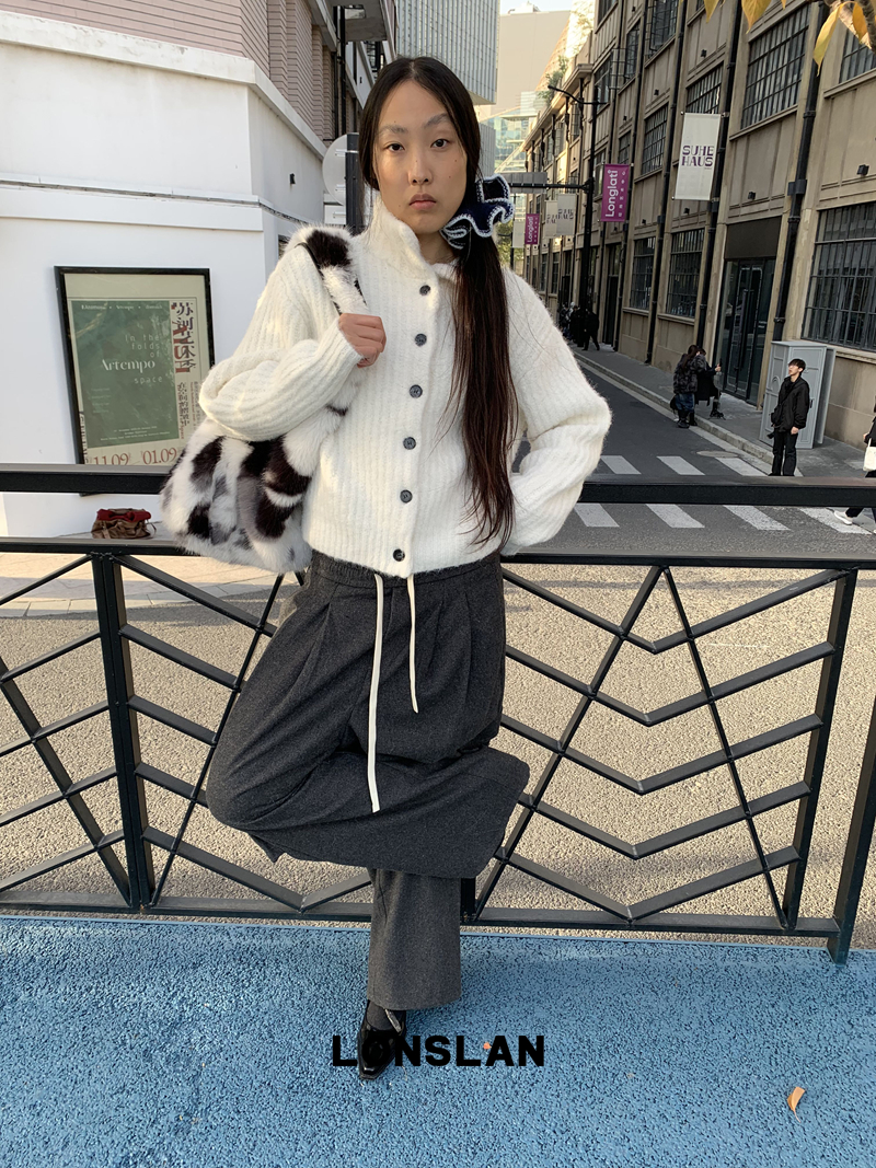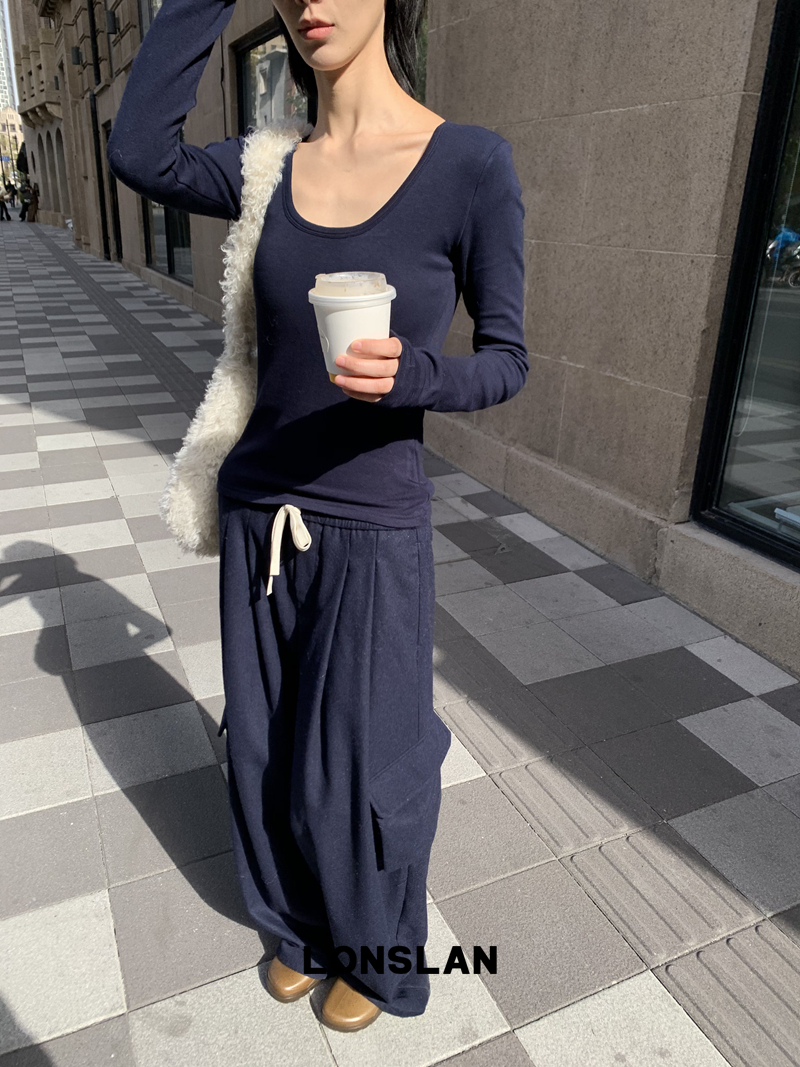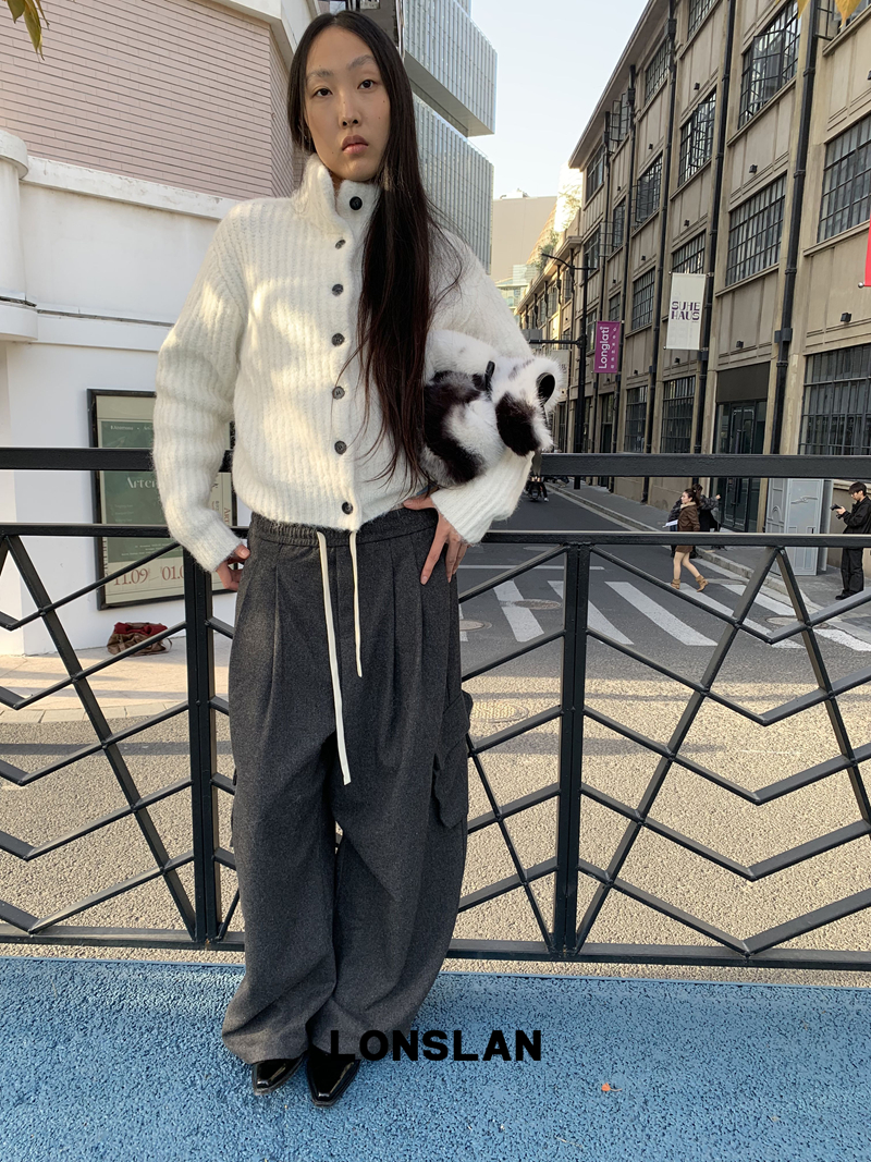 LONSLAN Braided Wool Pocket Workwear Casual Pants