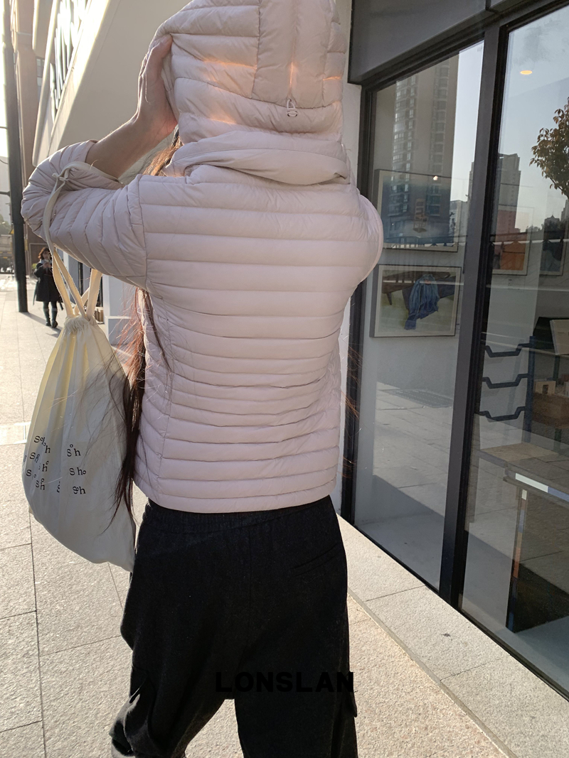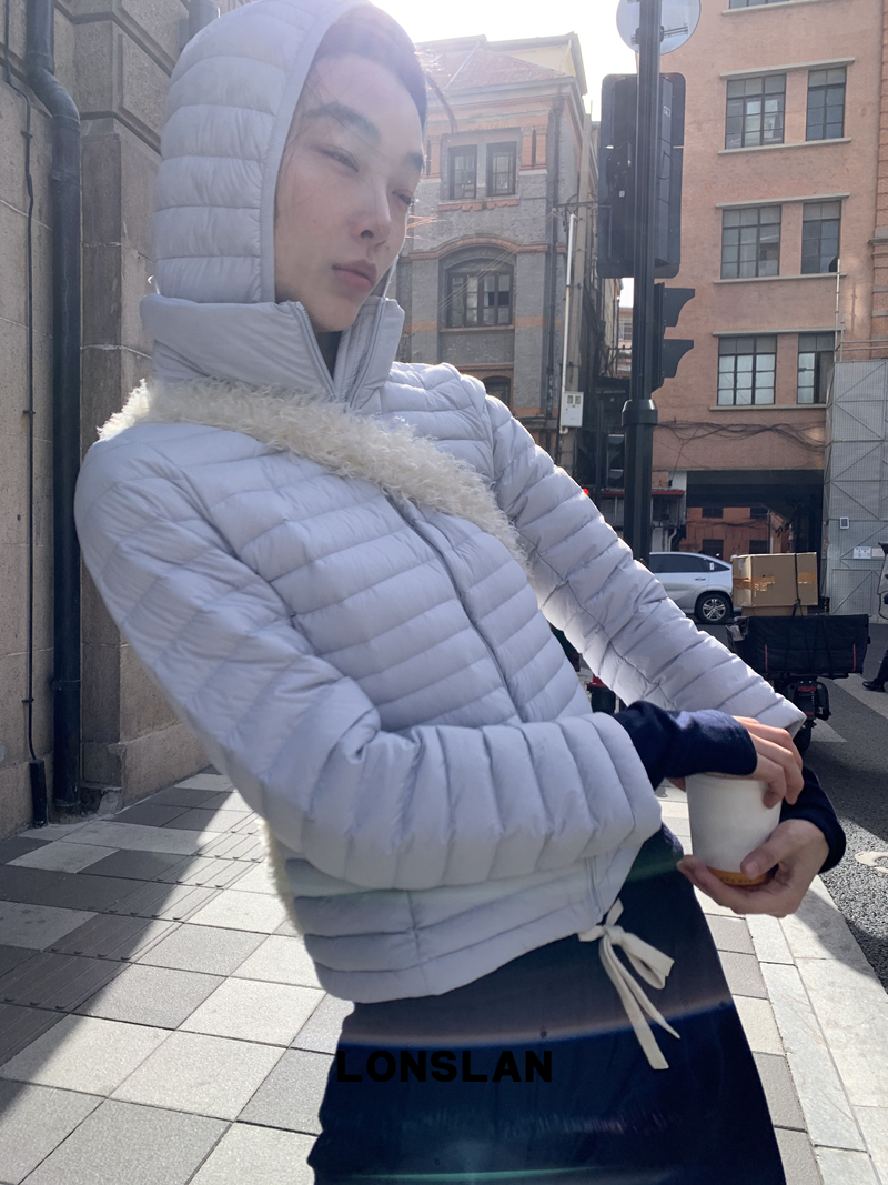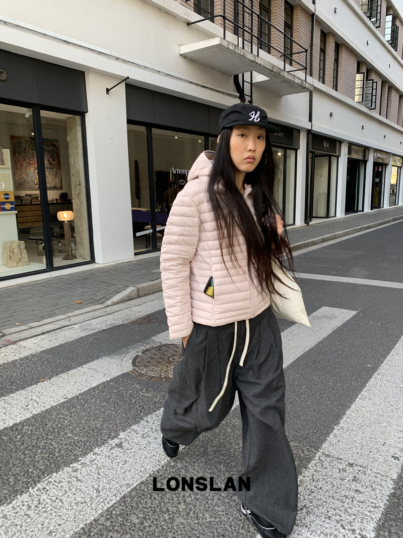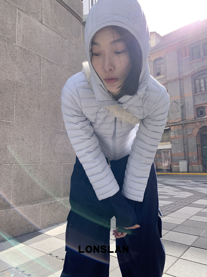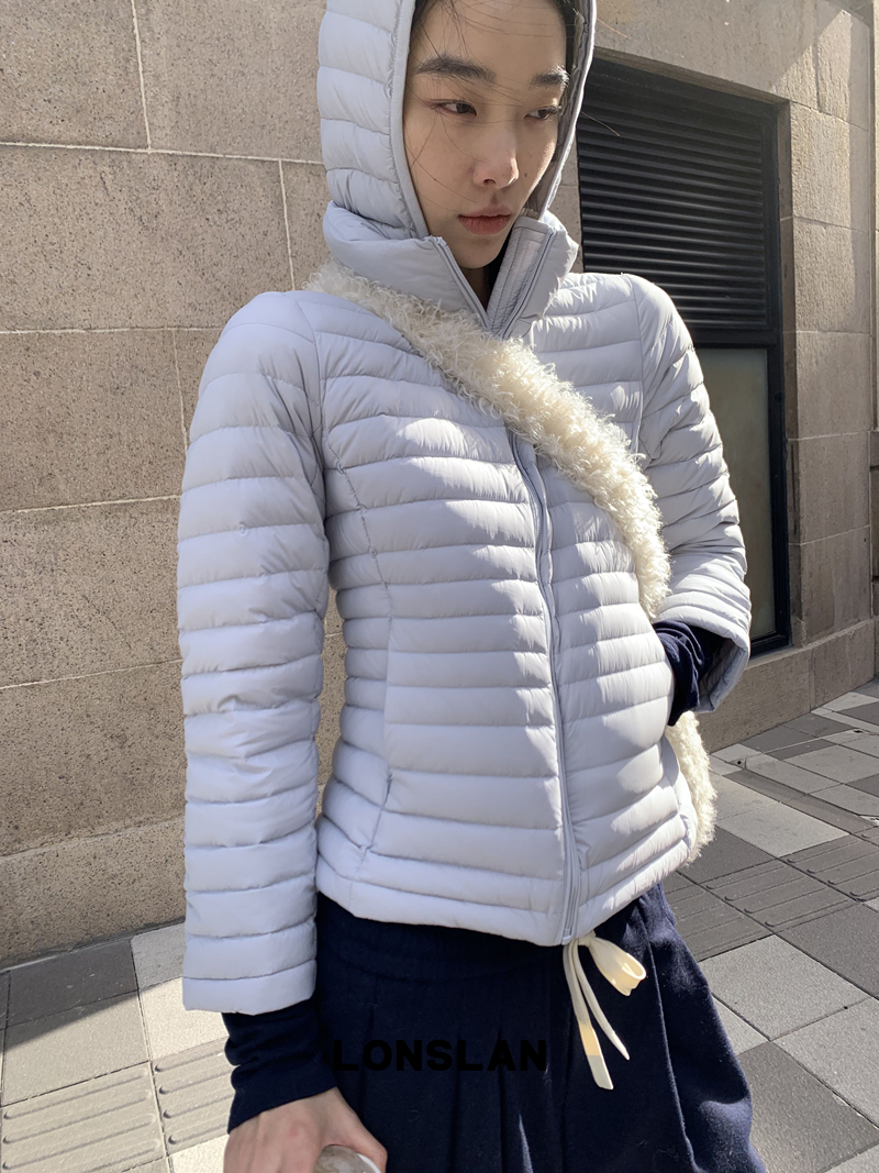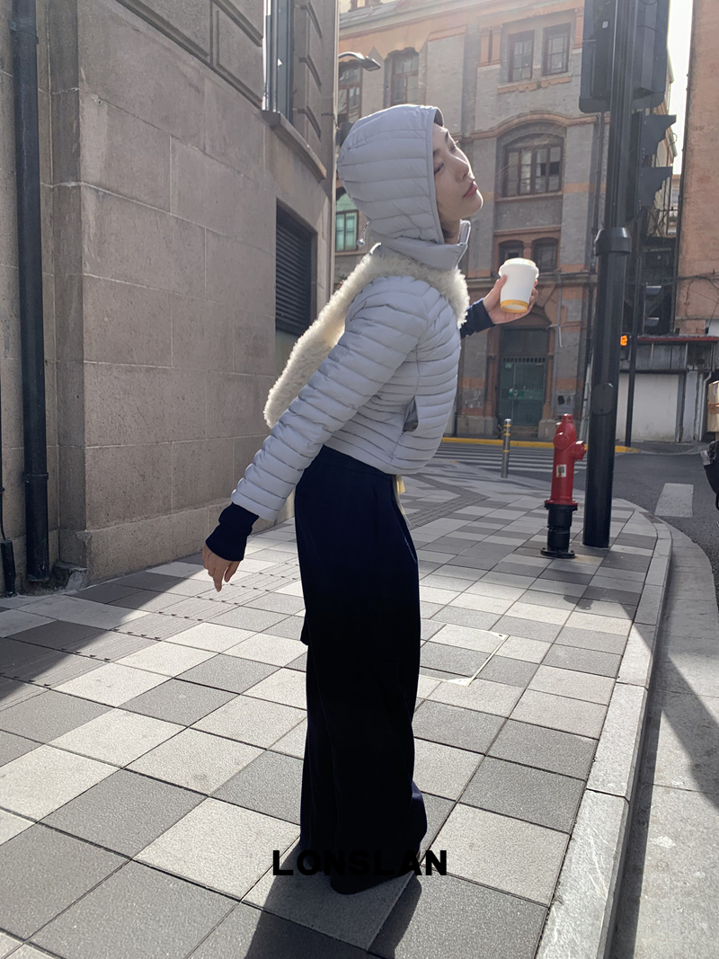 LONSLAN Removable Waist-Lower Slimming Rib Down Jacket