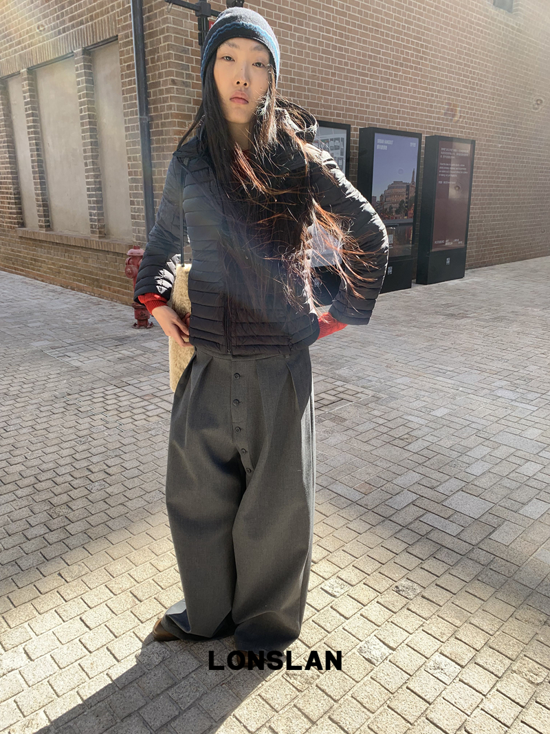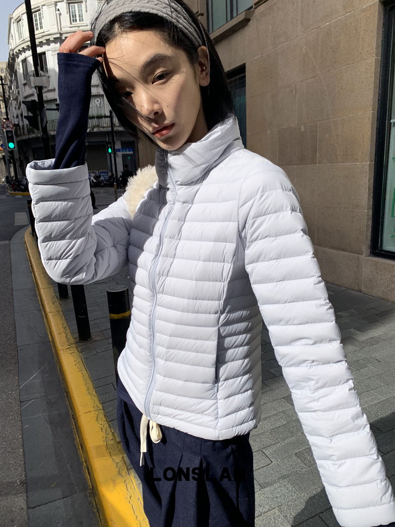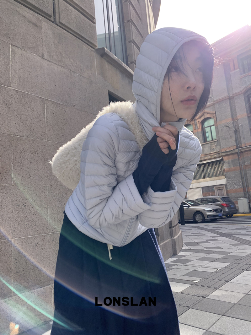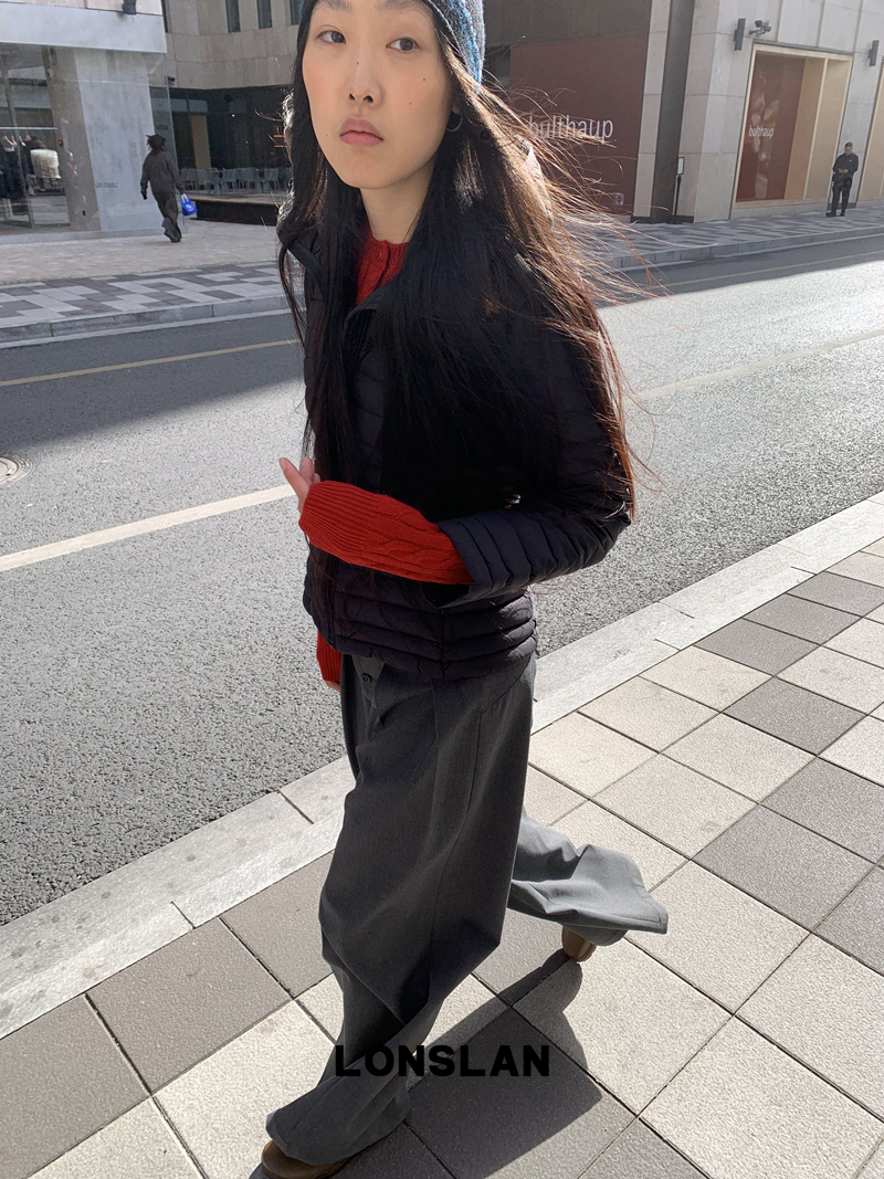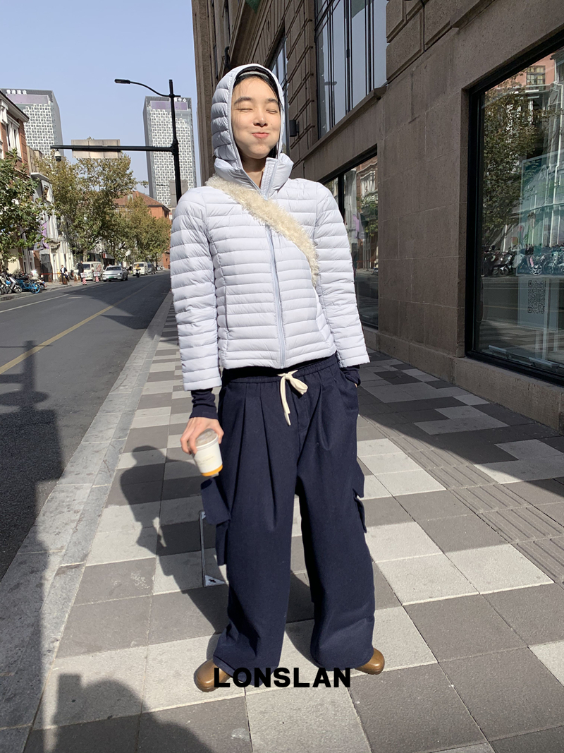 LONSLAN Removable Waist-Lower Slimming Rib Down Jacket