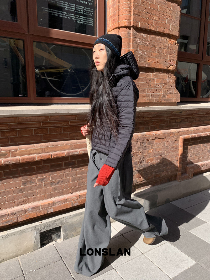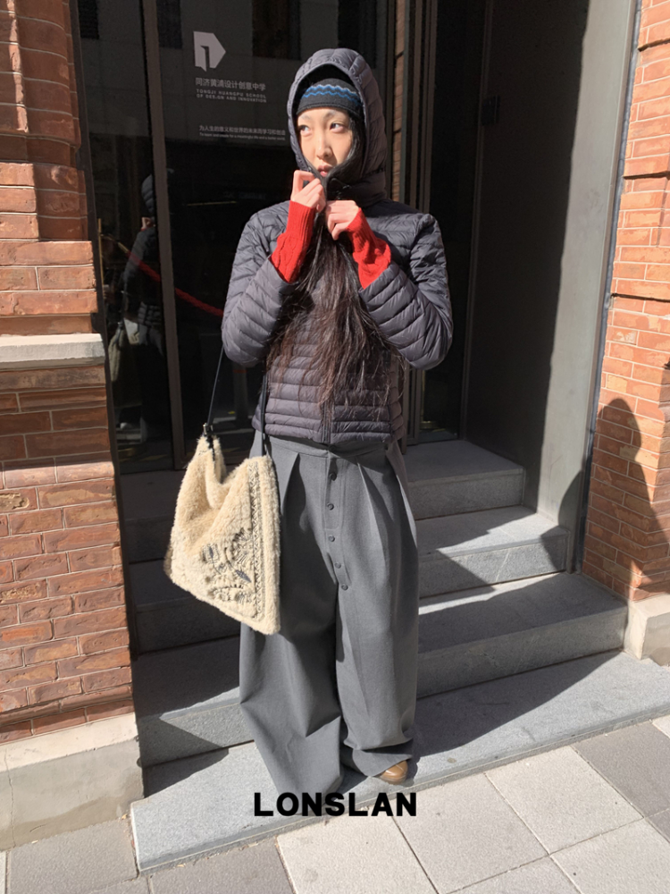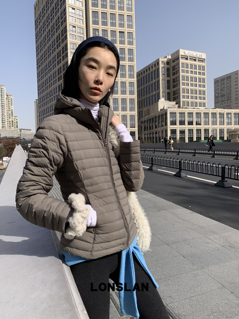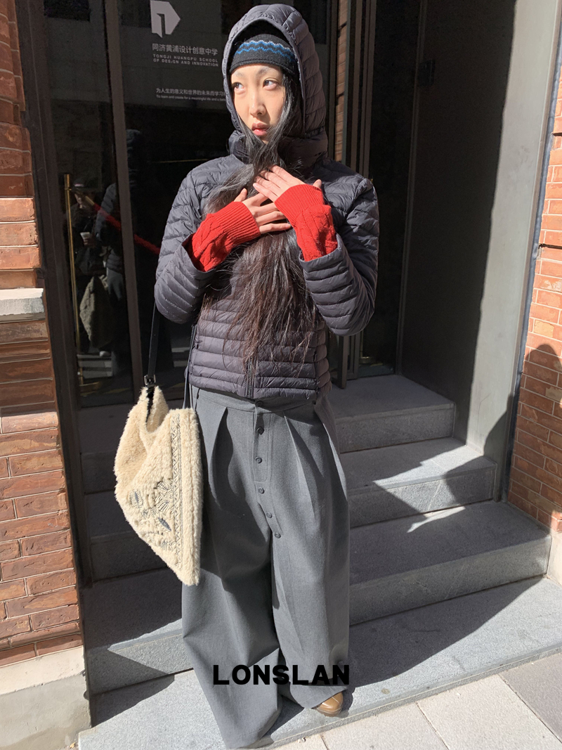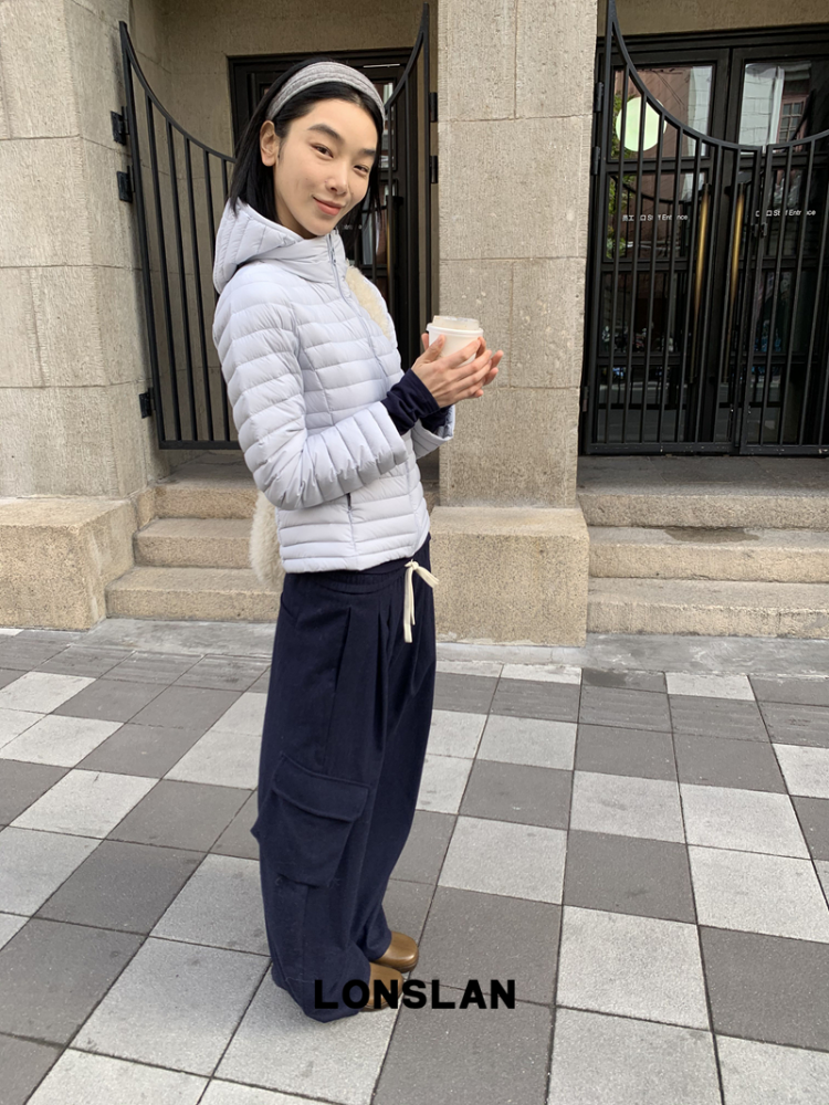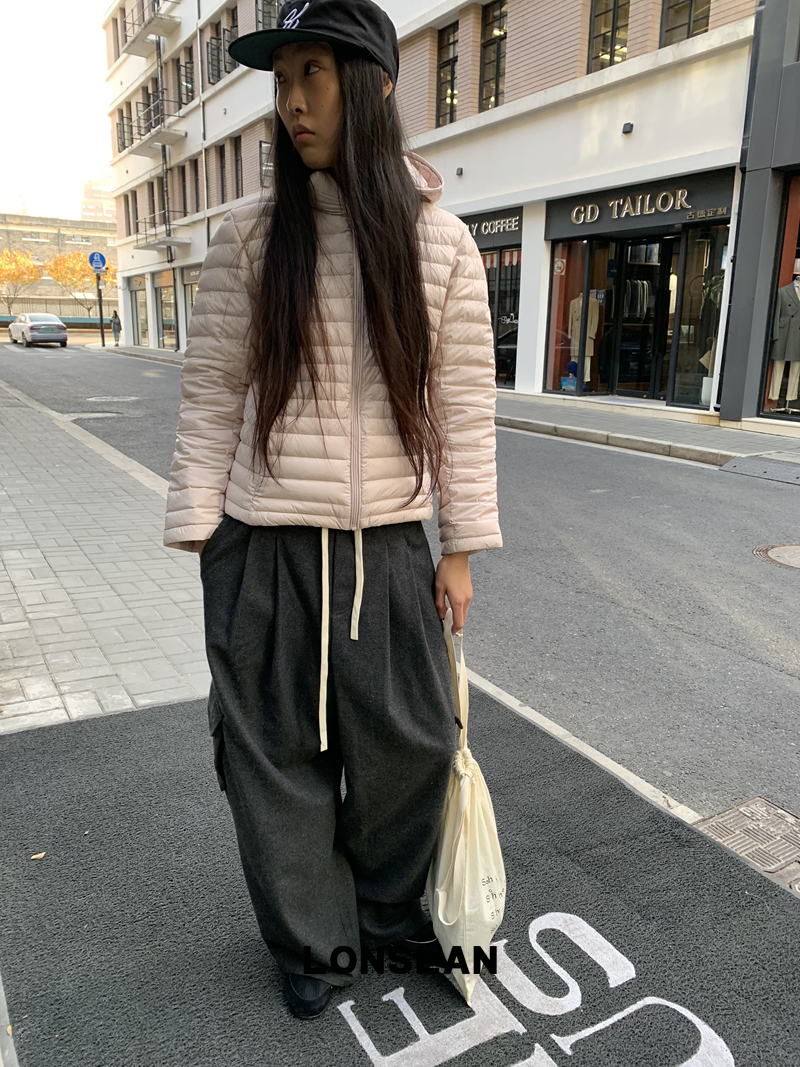 LONSLAN Removable Waist-Lower Slimming Rib Down Jacket