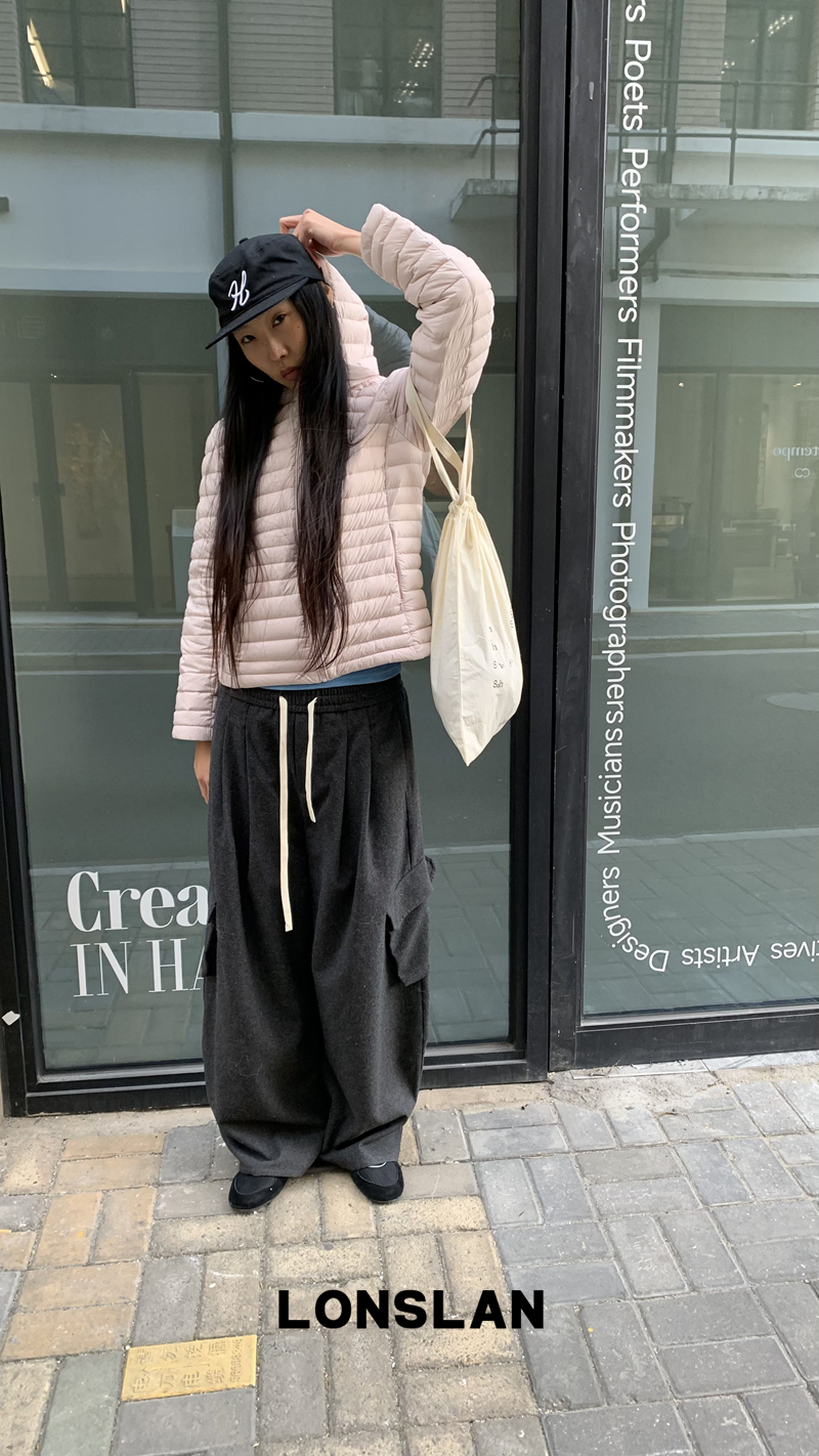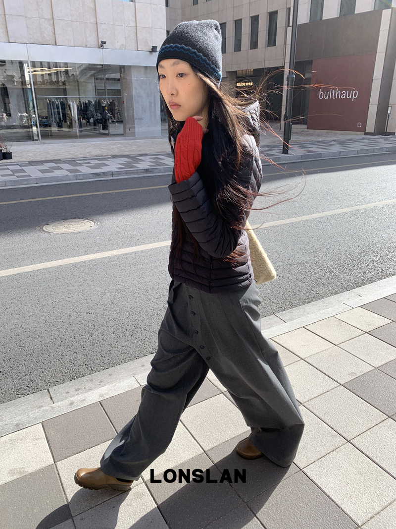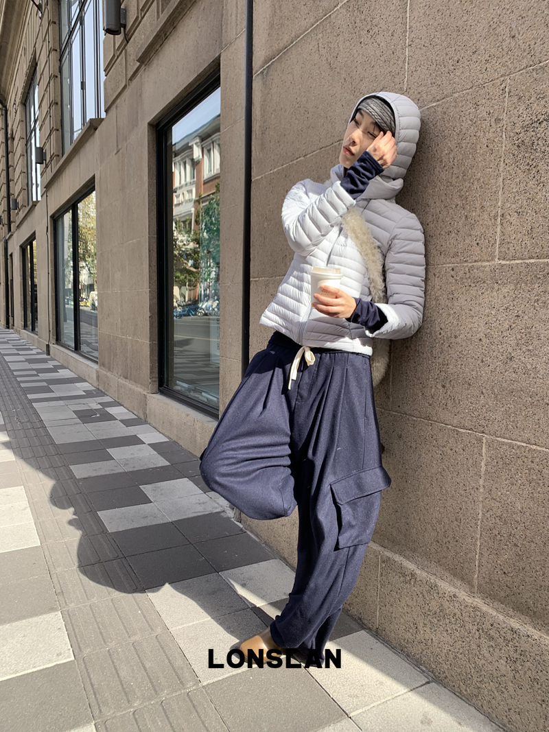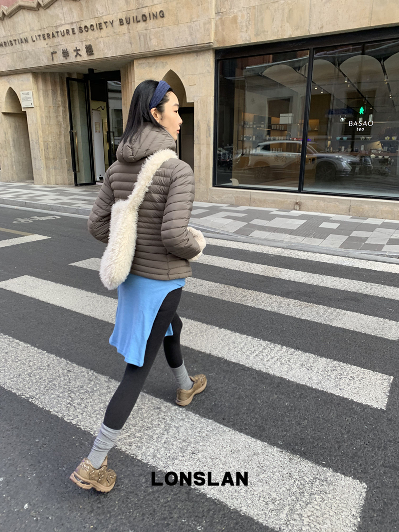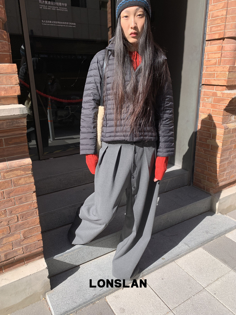 LONSLAN Removable Waist-Lower Slimming Rib Down Jacket